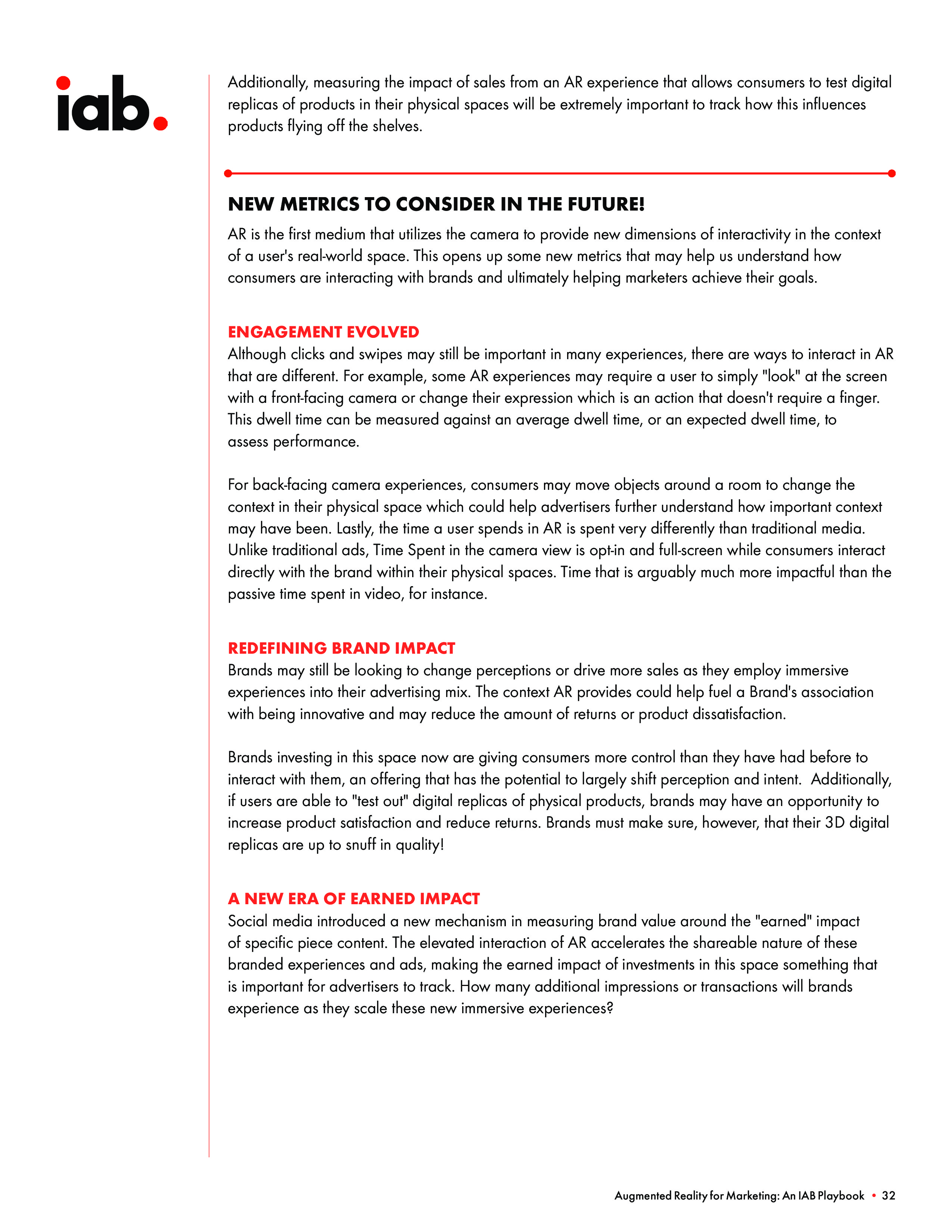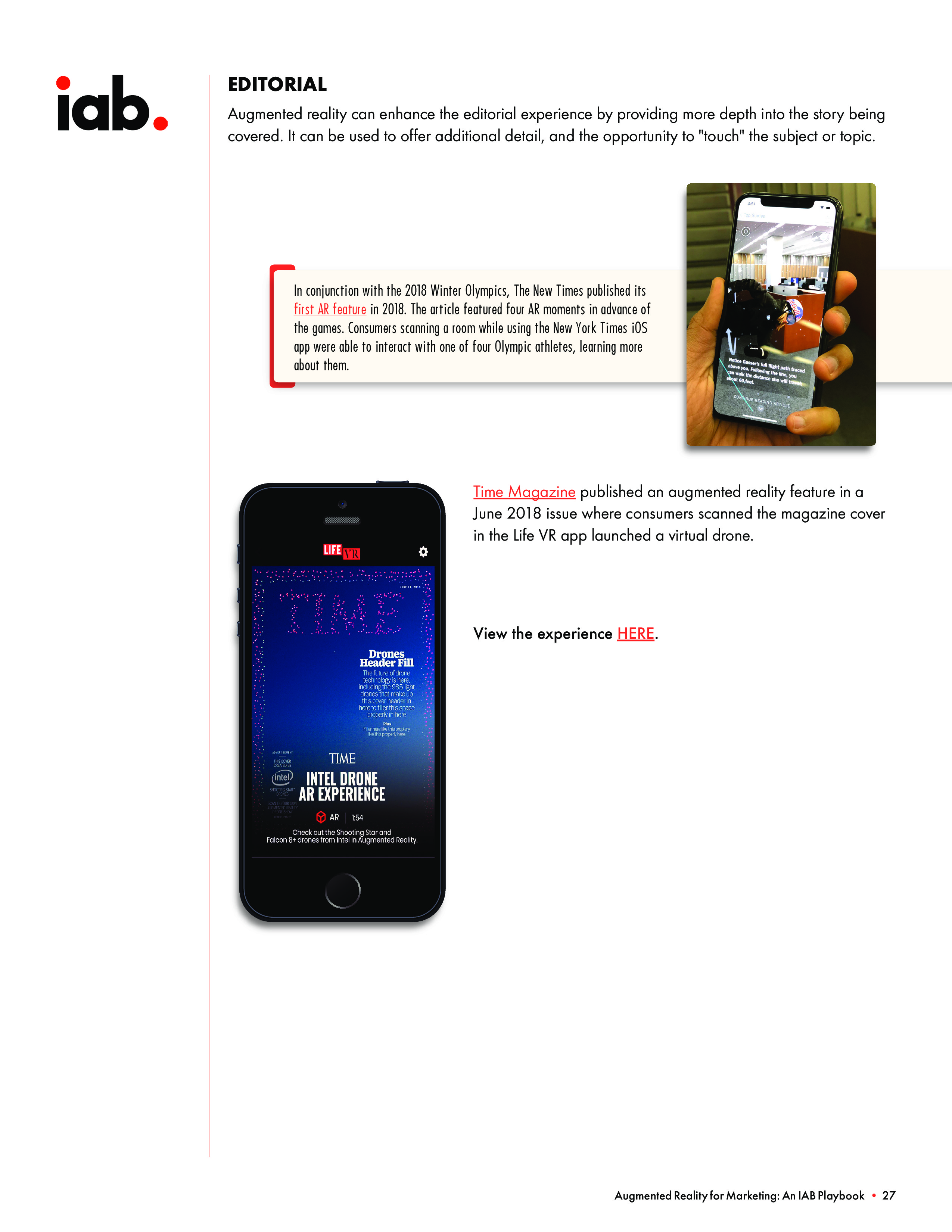 传统上,AR一直作为社交和游戏的支持,但是未来AR将为沉浸式编辑内容和广告体验带来新机遇。IAB的报告介绍了当前的环境,并鼓励营销人员参与创新,这将为营销行业数字化的下一步发展奠定基础。