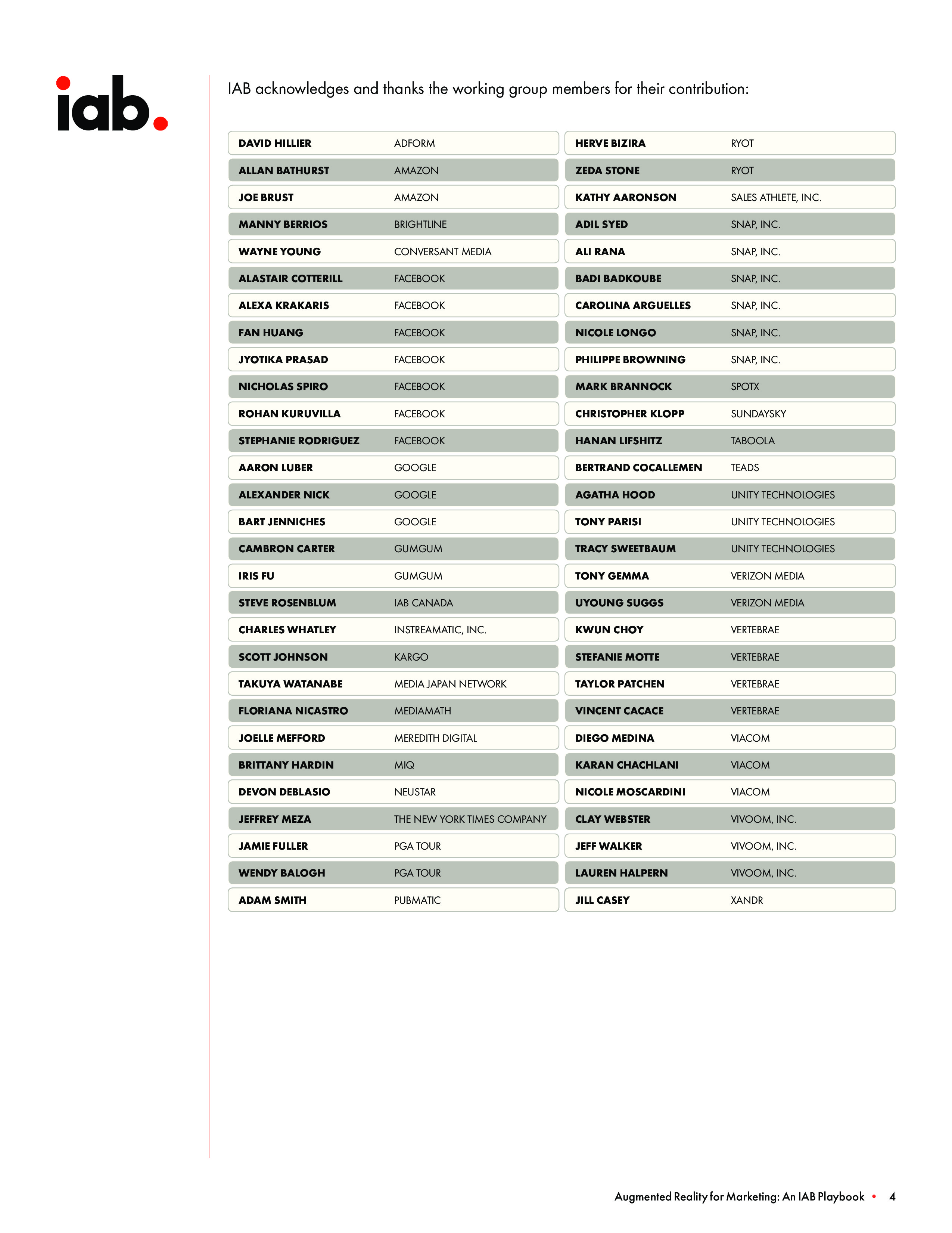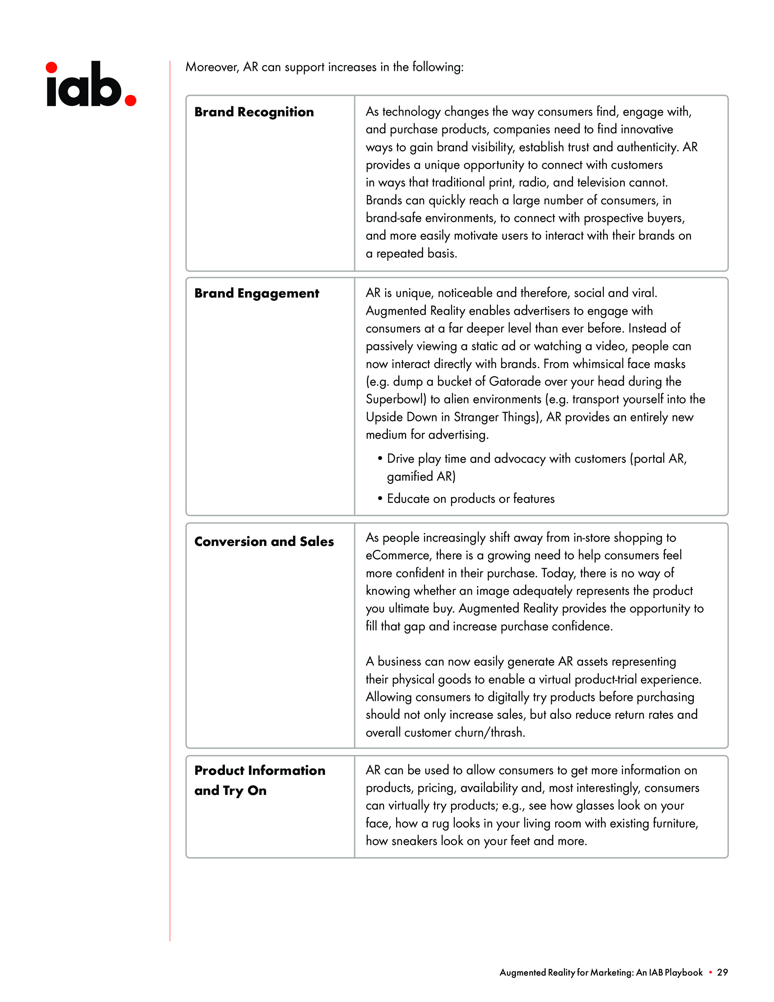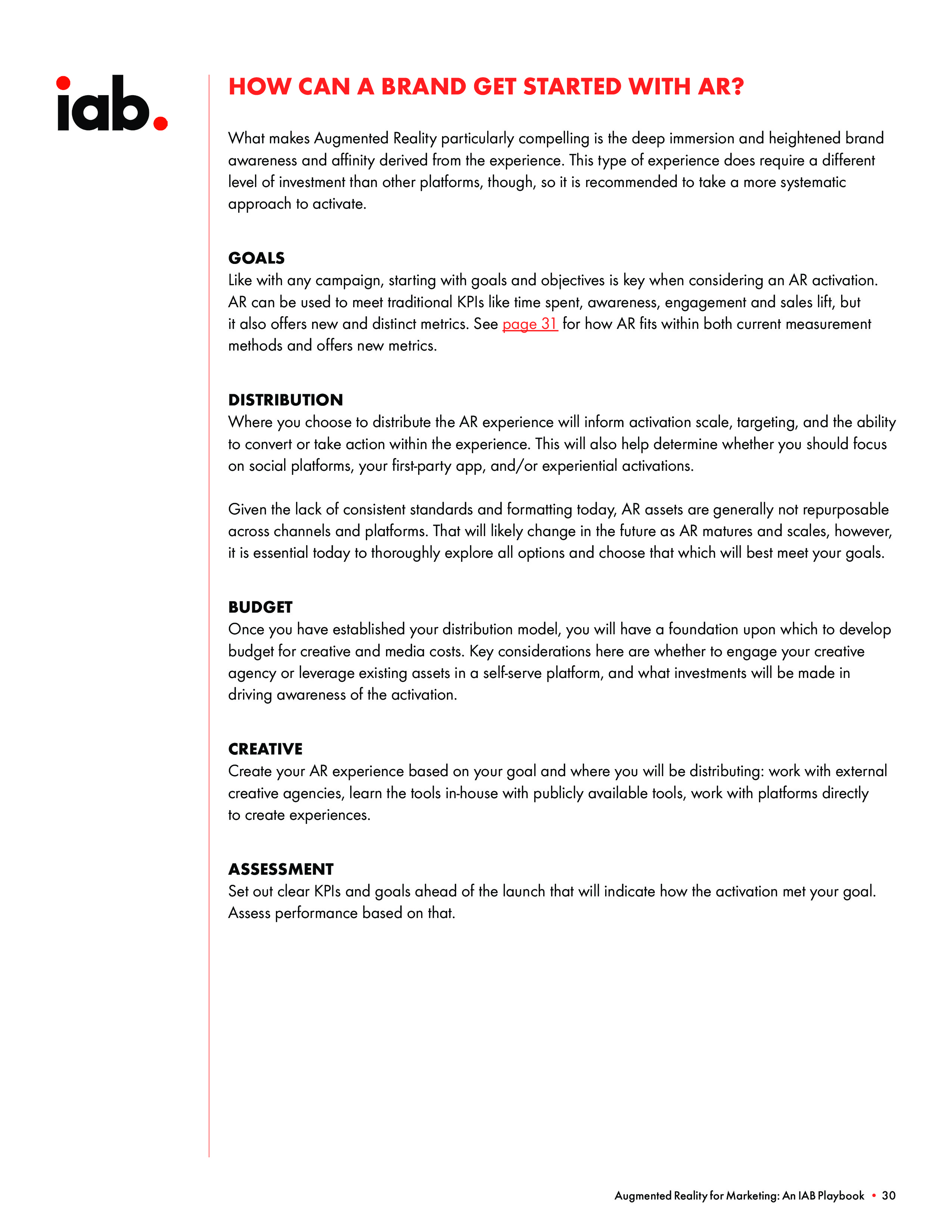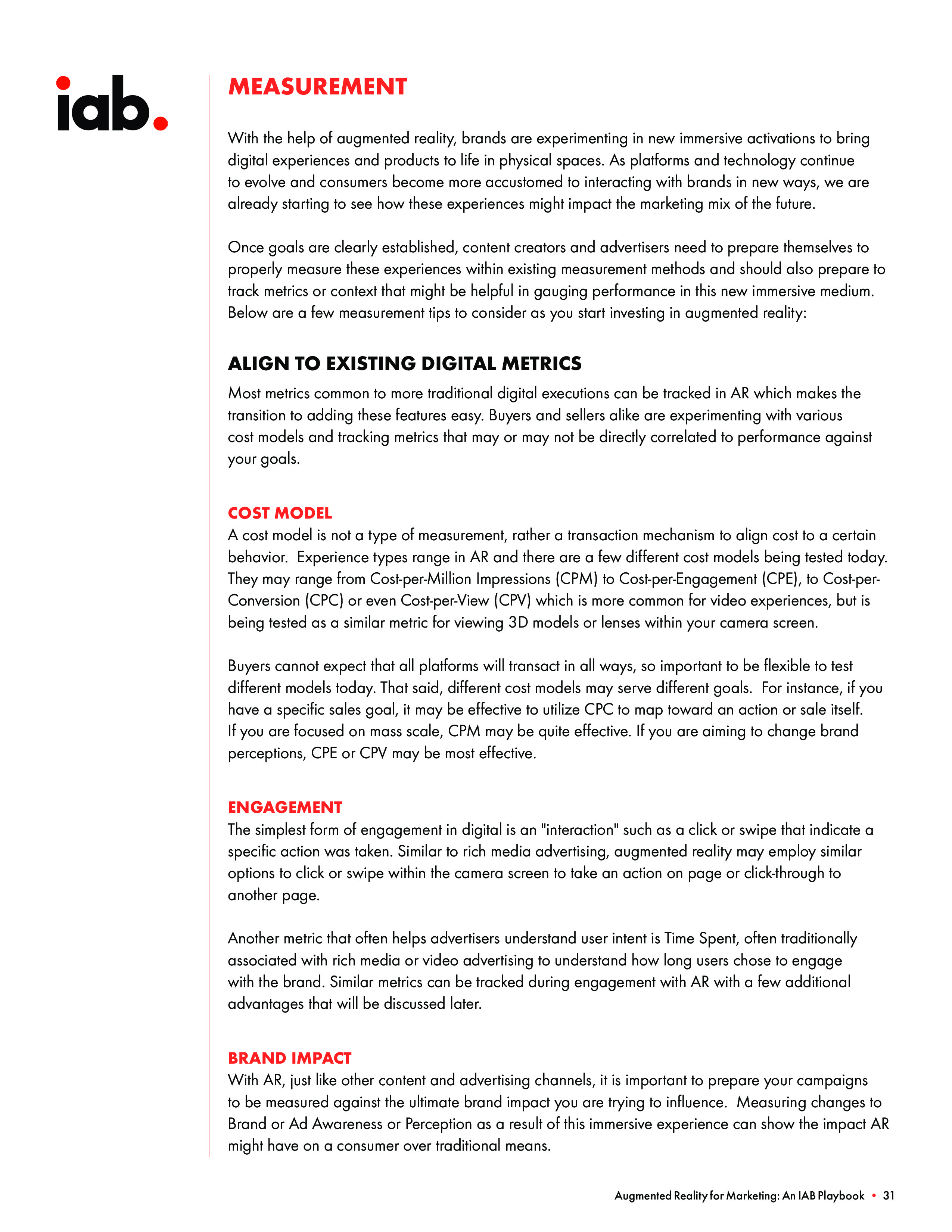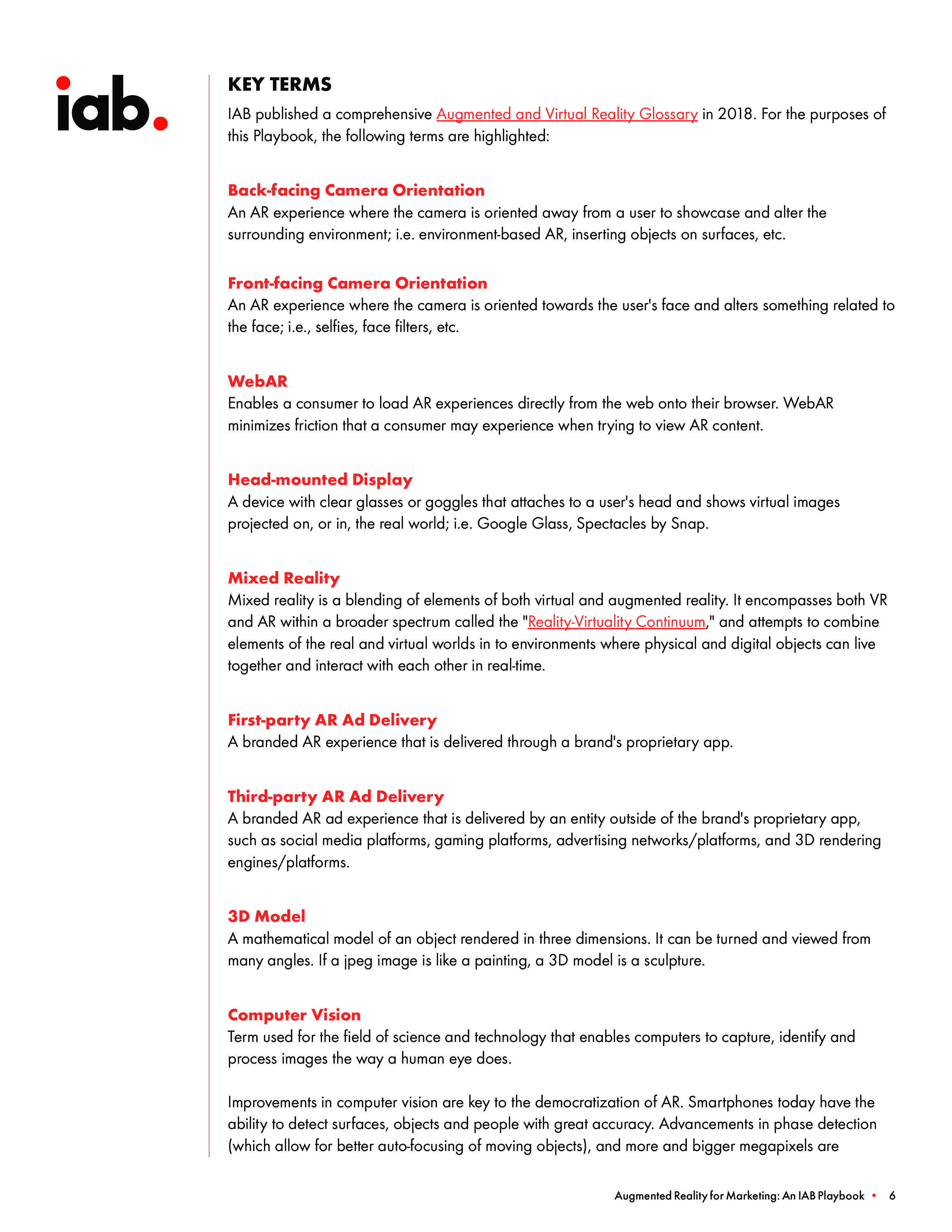 IAB的报告还介绍了供营销人员参考的关键AR术语词汇表,以及测量和分析AR生成数据的建议。