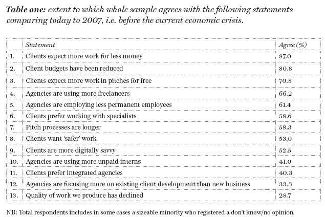 这个调查由Fairley & Associates, Gabriele Skelton and On Pointe Marketing联合进行,已经进行了4年。反映了数字和设计行业受到了经济下滑的影响。