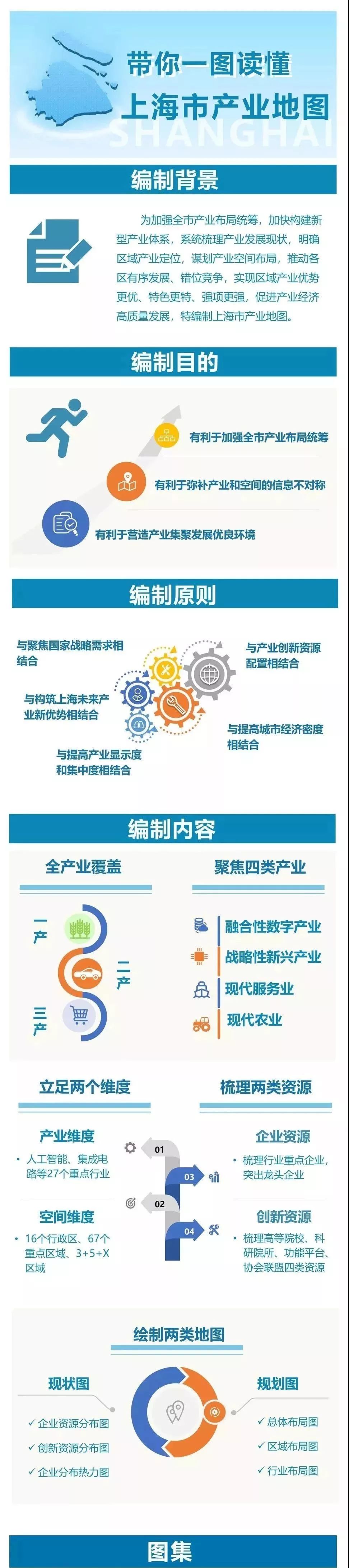 上海市产业地图 来源:招商引资参考 更多阅读:美国大数据产业地图和数据科学家必备工具-数据处理上海市人社局:上海市青年就业状况报告(2019)第一网贷:2015年10月份上海市P2P网贷成交额236.96亿元,全国排名第三2019年上海市全民健身发展报告国家统计局上海调查总队:2013年上海市农村居民家庭生活消费支出人均13425元2019上半年上海市集成电路产业销售收入合计为586.65亿元 同比增长12.9%上海市通信管理局:2023年将新建5G基站1万个 5G网络流量占比超60%2014年Q1-Q3上海市电子商务实现交易额9066亿元 同比增长28.1%CNNIC:2012年上海市互联网络发展状况报告上海市新闻出版局:2013年上海市青少年阅读状况调查分析报告CCFA:2019年中国超市百强Demand Gen :制造商将数字转换扩展到销售和营销报告数字之旅的时代启幕——空间计算前程无忧:2021年Q1集成电路/半导体市场供需报告乐普医疗新冠病毒抗体胶体金法检测试剂盒、红外测温仪等产品已供往数十国家