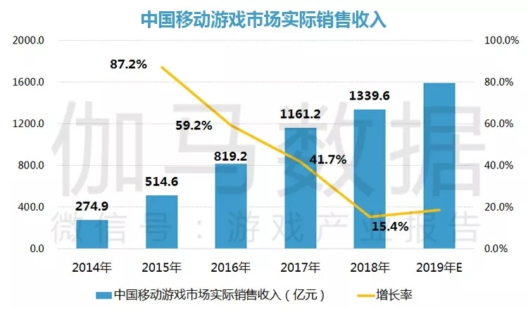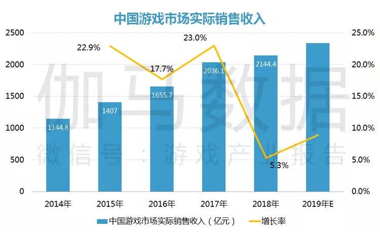 腾讯&伽马数据发布的《2019游戏产业趋势报告》称: 2019年,中国游戏市场实际销售收入预计超2300亿元。2019年中国移动游戏市场实际销售收入预计超1500亿。