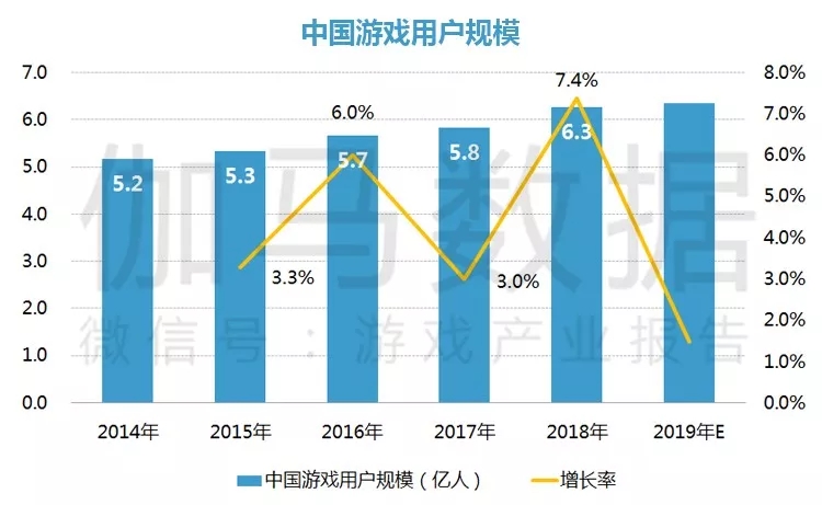 伽马数据预计,2019年中国游戏市场用户规模将达到6.4亿人,处于平缓增长阶段。