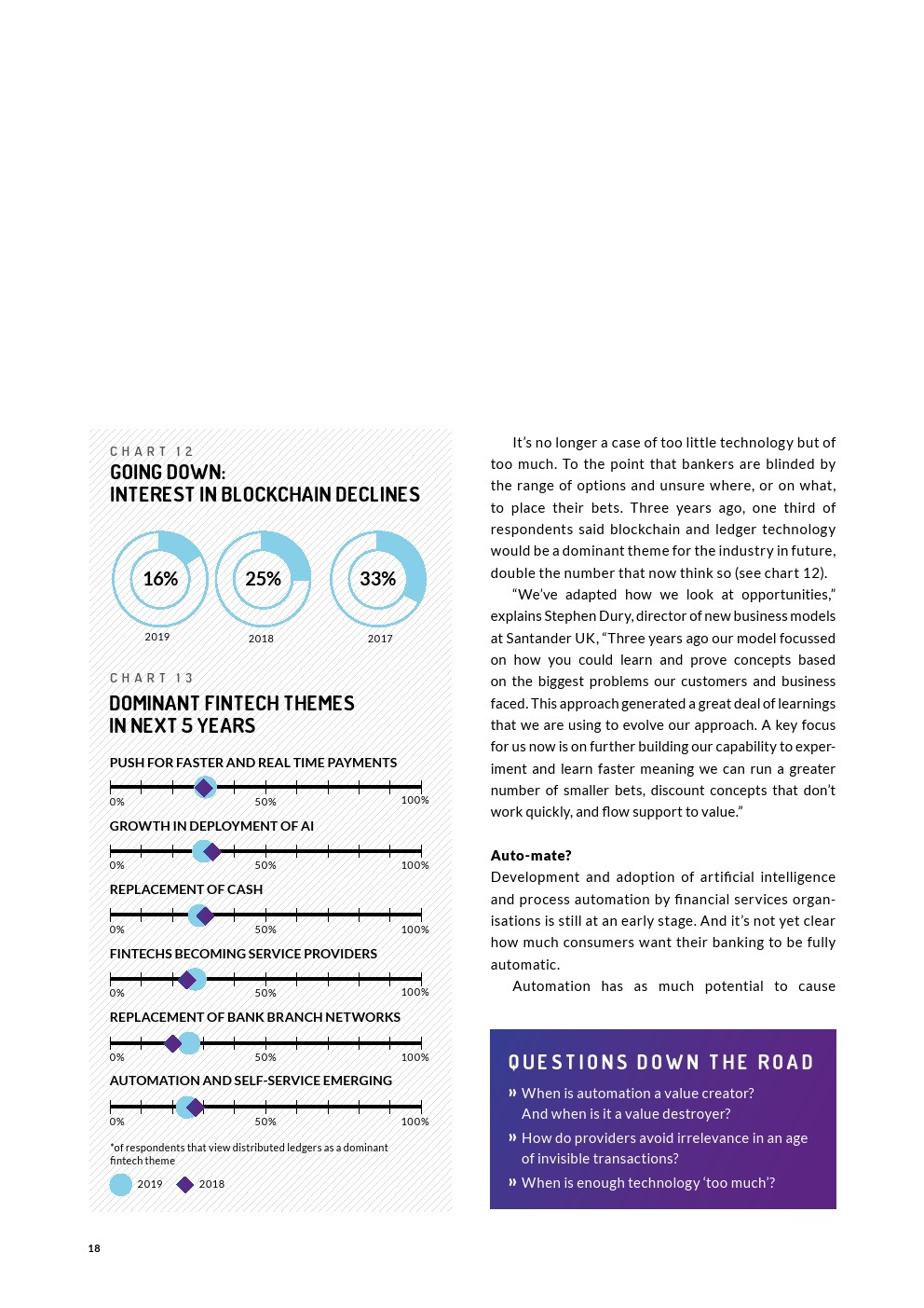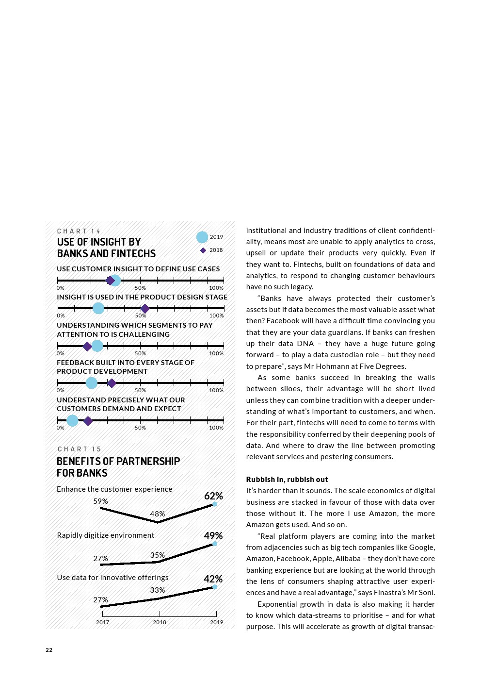 从非洲的移动货币提供商到欧洲的先进支付服务,金融科技作为一个行业和思维模式已经证明它的存在。此外,它还证明了其以客户为中心、数据丰富的运营模式比数字时代的银行更具优势。这是一个不断关注平稳客户体验胜过传统行业渠道或分销指标的模式。而最佳前景是在最广泛的意义上促进商业贸易,而不是出售利润优先的产品。