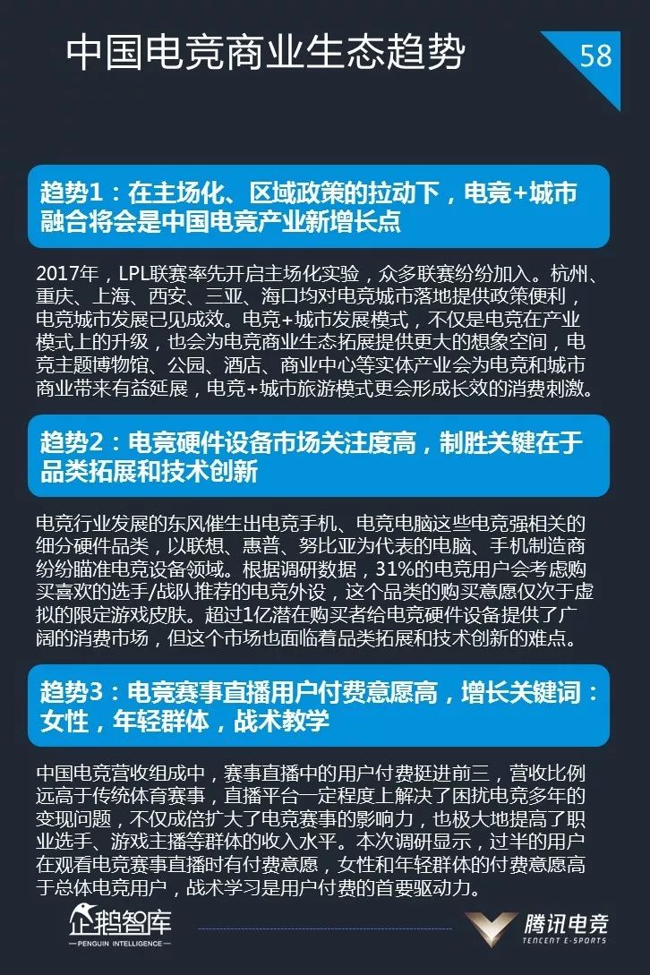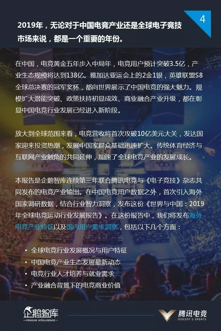 这是腾讯企鹅智库连续第三年发布电竞产业报告。