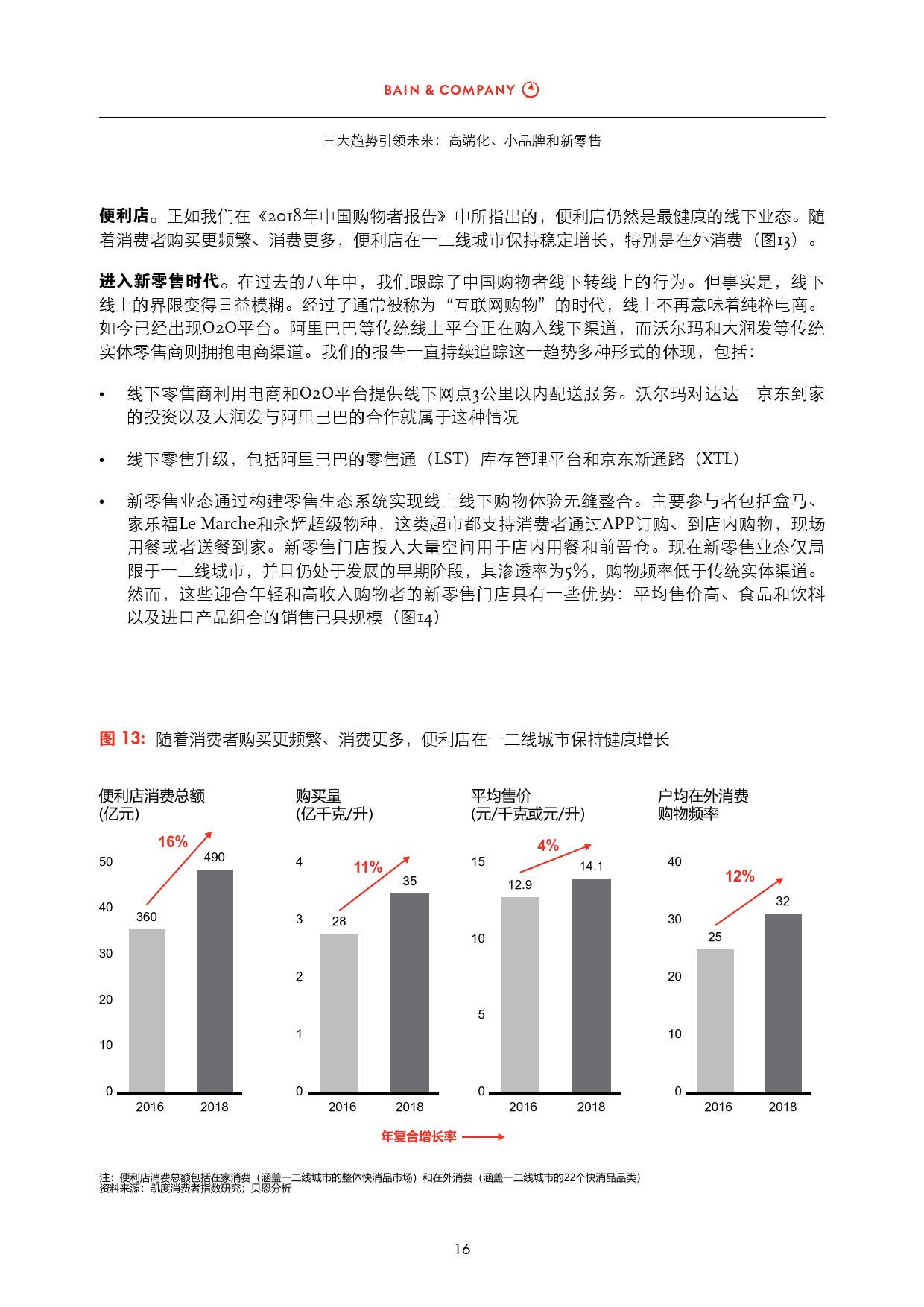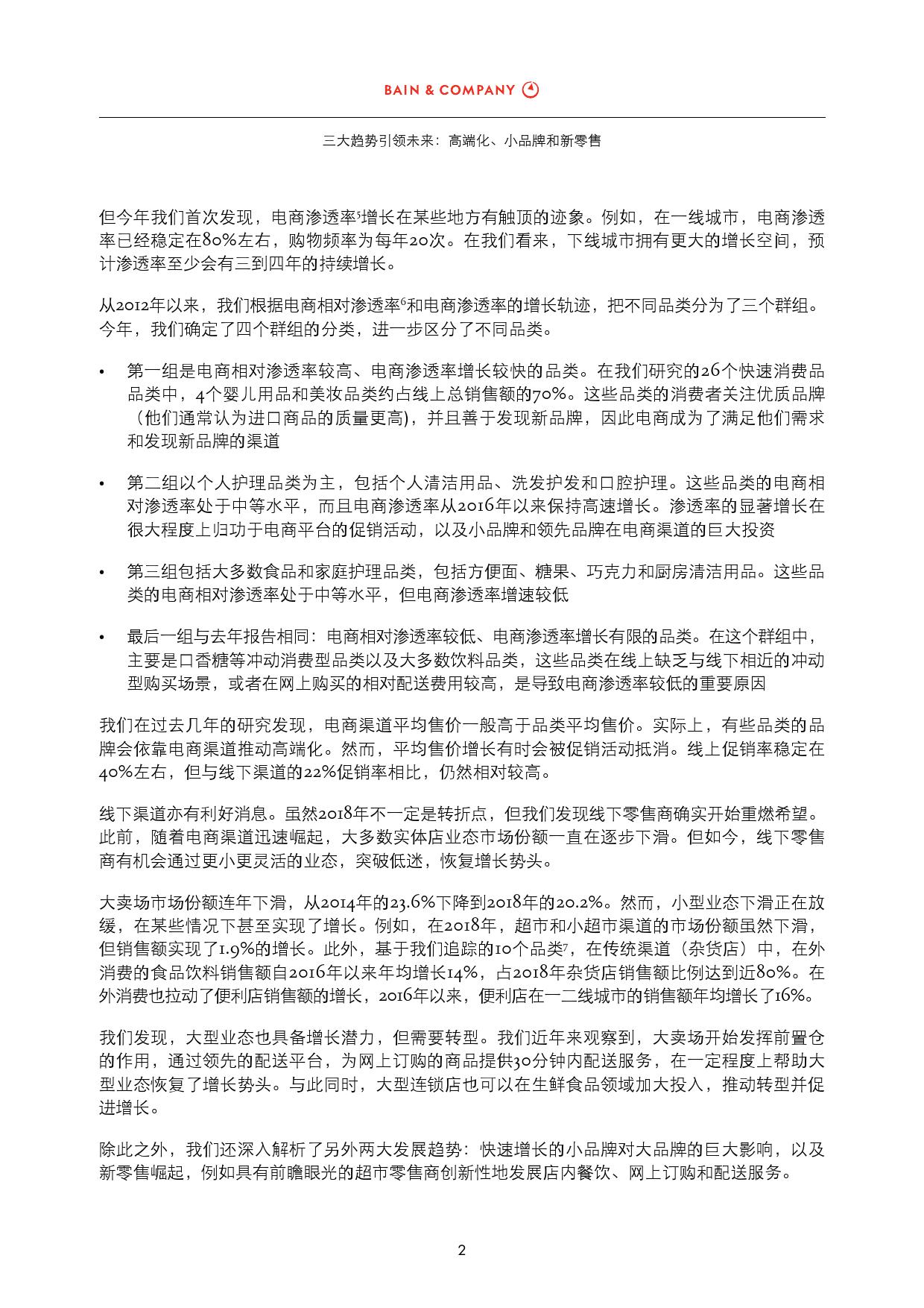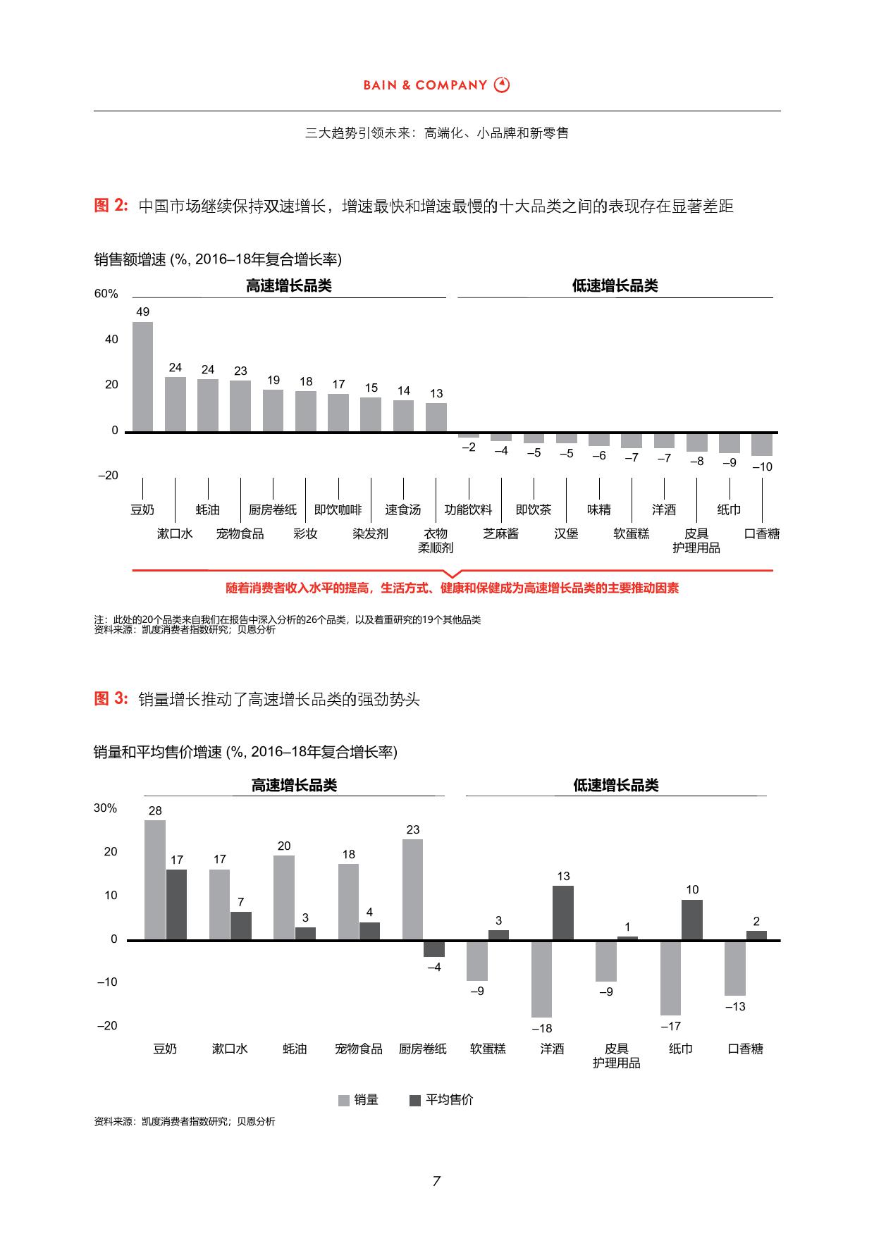 除上述趋势,我们还深入剖析了以下两大发展趋势:1)快速增长的小品牌对大品牌的巨大影响;2)中国独有新零售业态的崛起,比如新零售模式下的超市,开创性地同时发展店内用餐、网上订购和配送服务。