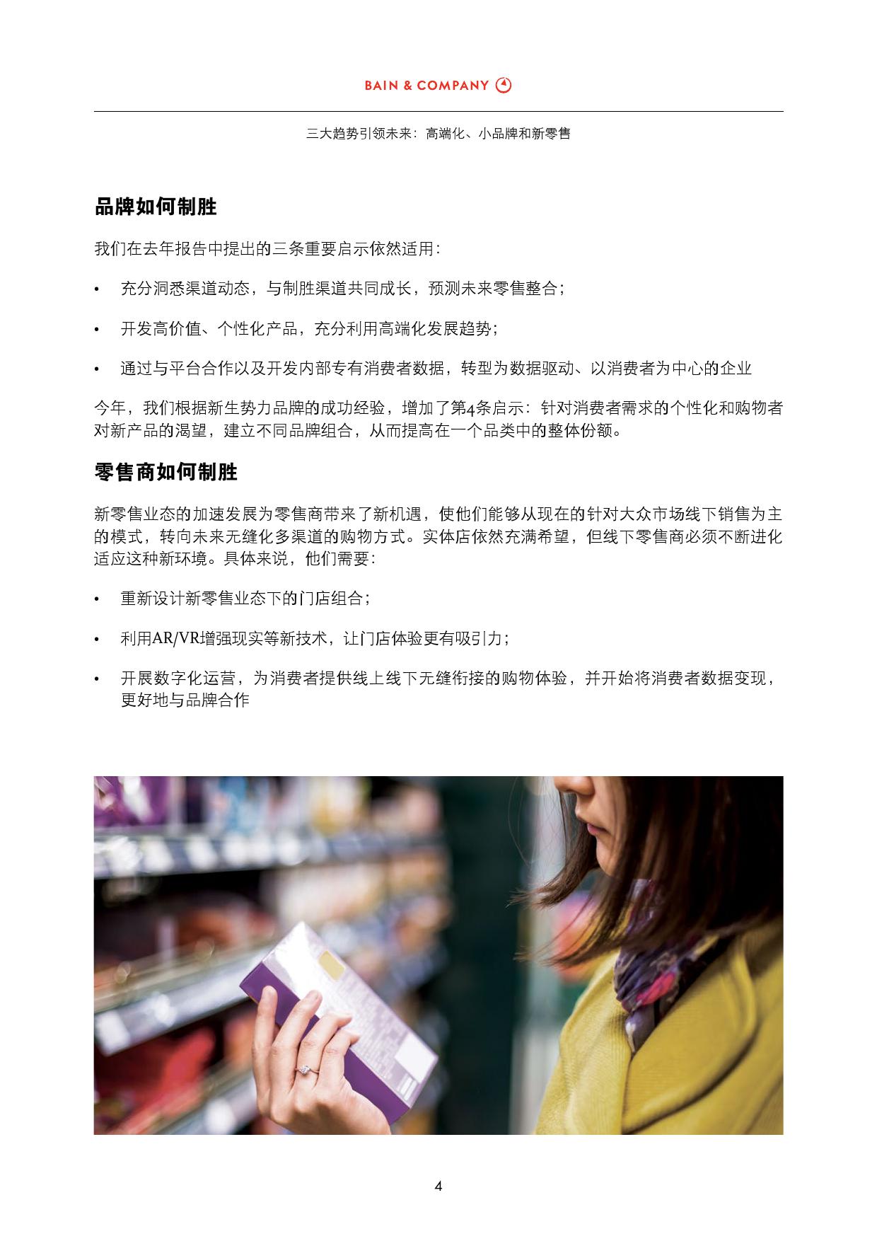 我们在去年报告中提出的供企业和品牌商在变革中致胜市场的三种方法依然适用。今年,我们根据新生势力品牌的成功经验,增加了第四个方法: