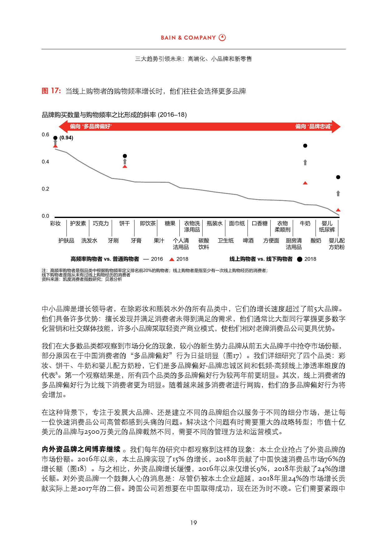 在 2018年中国购物者报告系列二《中国新生势力品牌撼动双速增长的市场》中,我们阐述了中国新生势力品牌对快速消费品增长做出了极大的贡献。随着这一趋势的持续发展,我们将在本次报告中解答大多数公司面临的一个根本问题:大品牌能否继续扩大规模,取得持续成功?