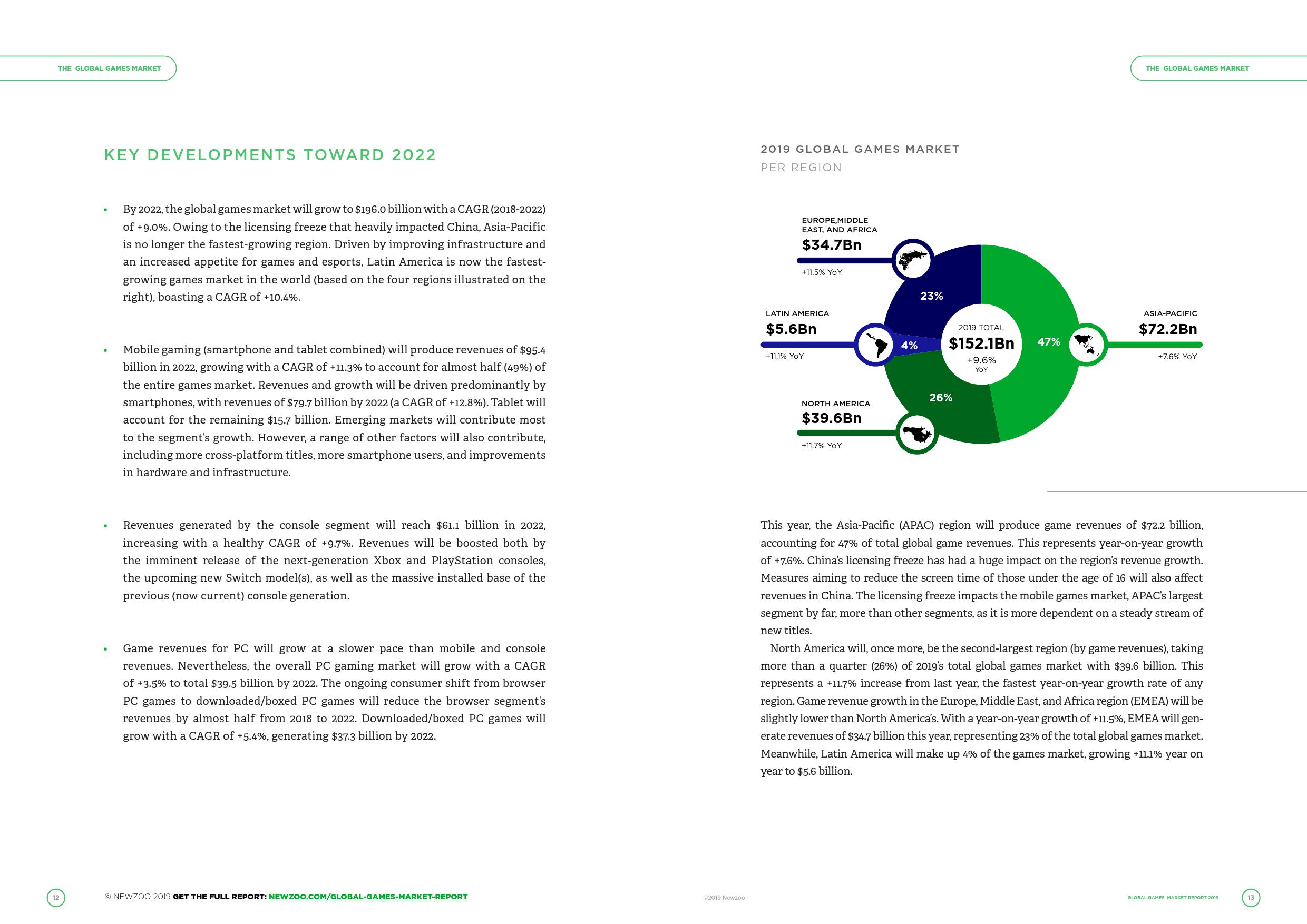 主机游戏市场产生的收入将会以一个正向的年复合增长率(9.7%)提高,并在2022年达到611亿美元。即将发布的下一代Xbox和PlayStation,加上最新款的Switch以及庞大的主机玩家基础,将会成为推动收入增长的主要因素 。