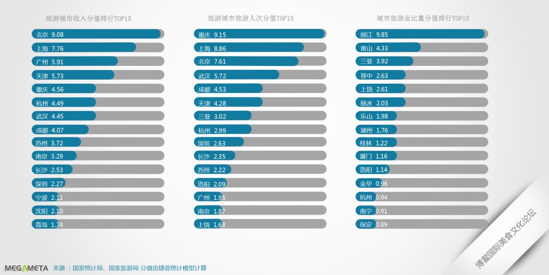 2、重庆、上海、北京等城市游客流量巨大,交通便利,适合发展旅游餐饮;丽江、黄山、三亚等城市旅游业比重大,发展旅游餐饮往往受到政策支持。