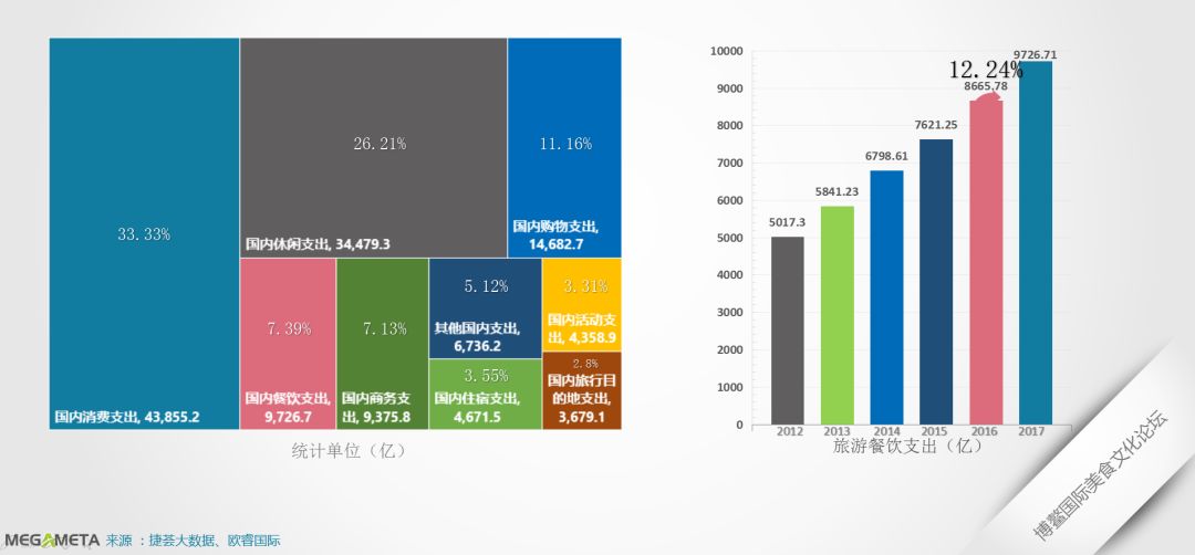 在4万亿的餐饮总收入中,旅游餐饮占比24% ,达0.97万亿,环比增长12.24%。