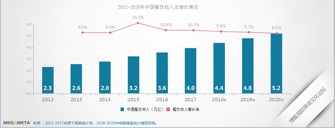 国家统计局数据显示,2017年全国餐饮收入达4.0万亿元,同比增长10.7%。