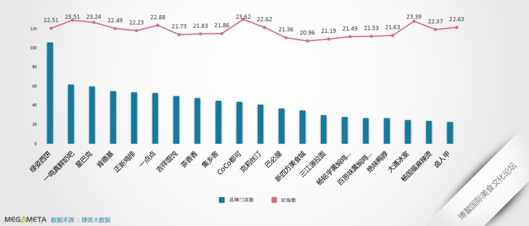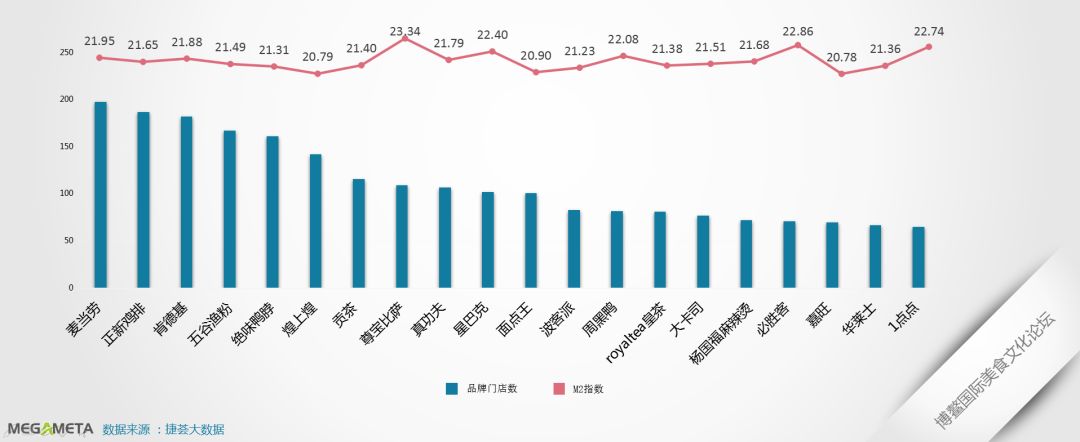 M2反映消费者现实和潜在购买力。因此,M2指数可以帮助我们了解品牌的竞争力,指数越高说明其在环境、口味等综合方面做得越好。