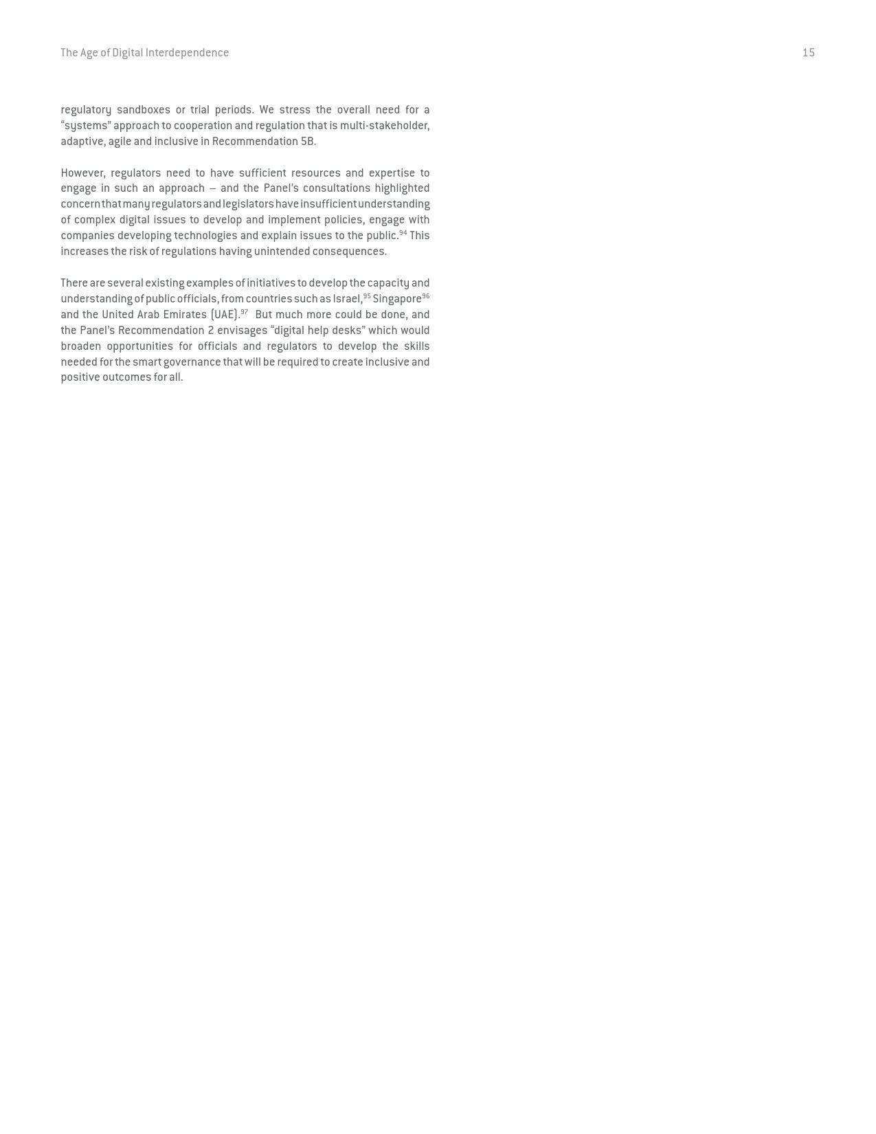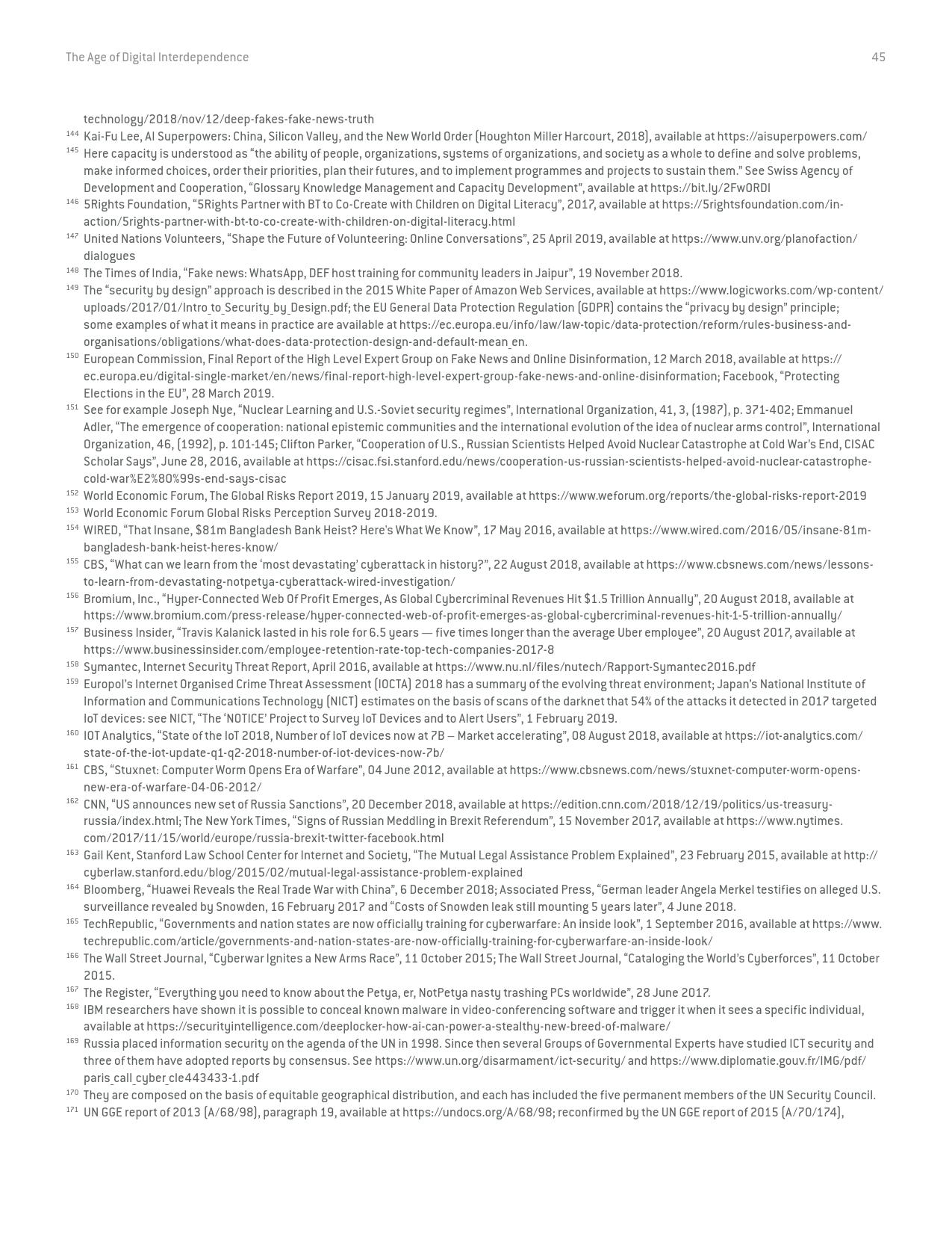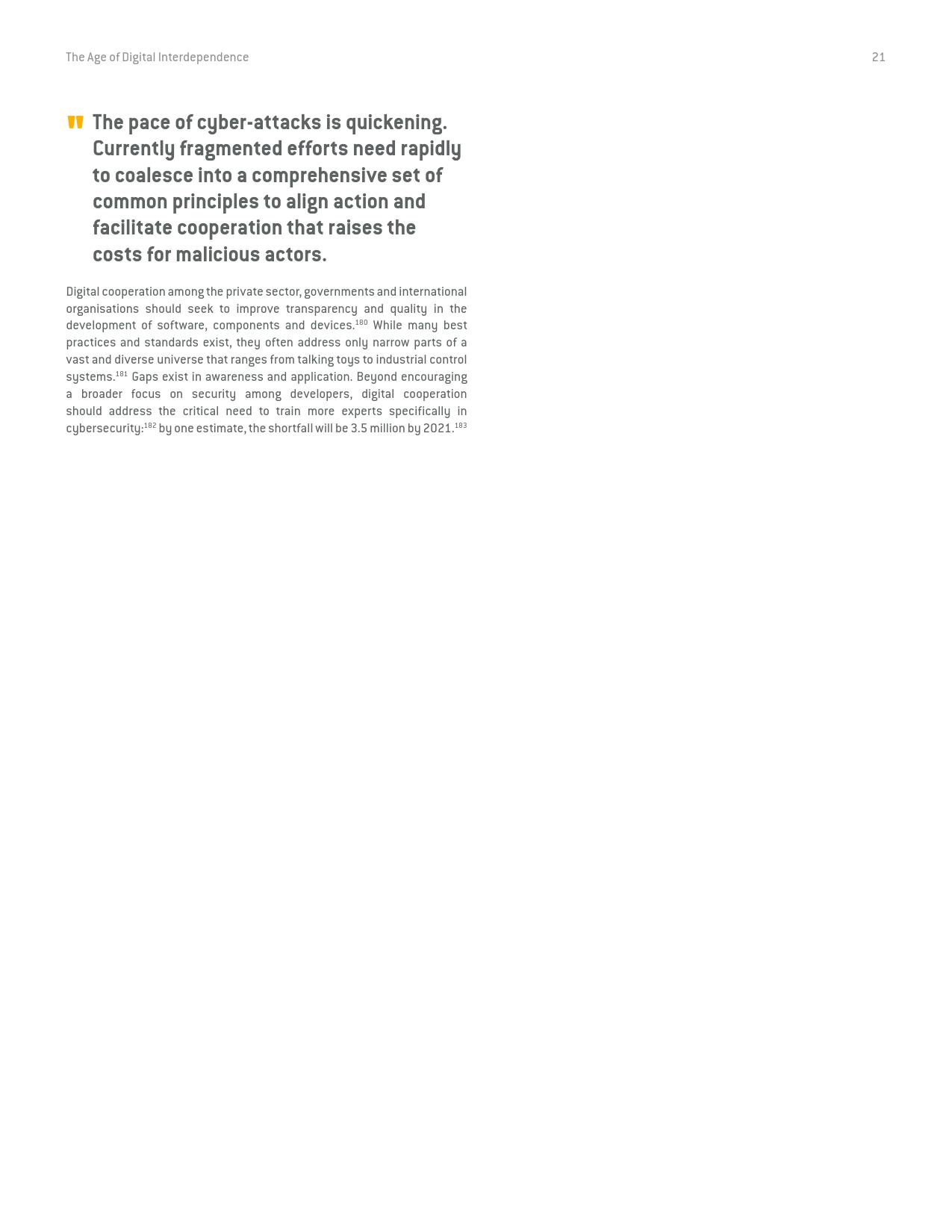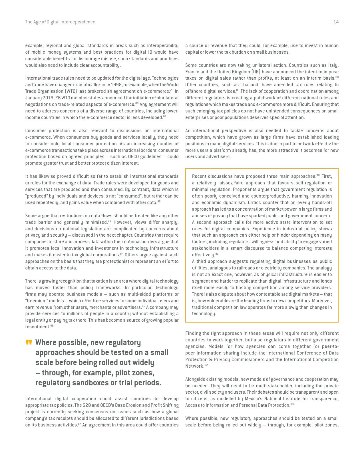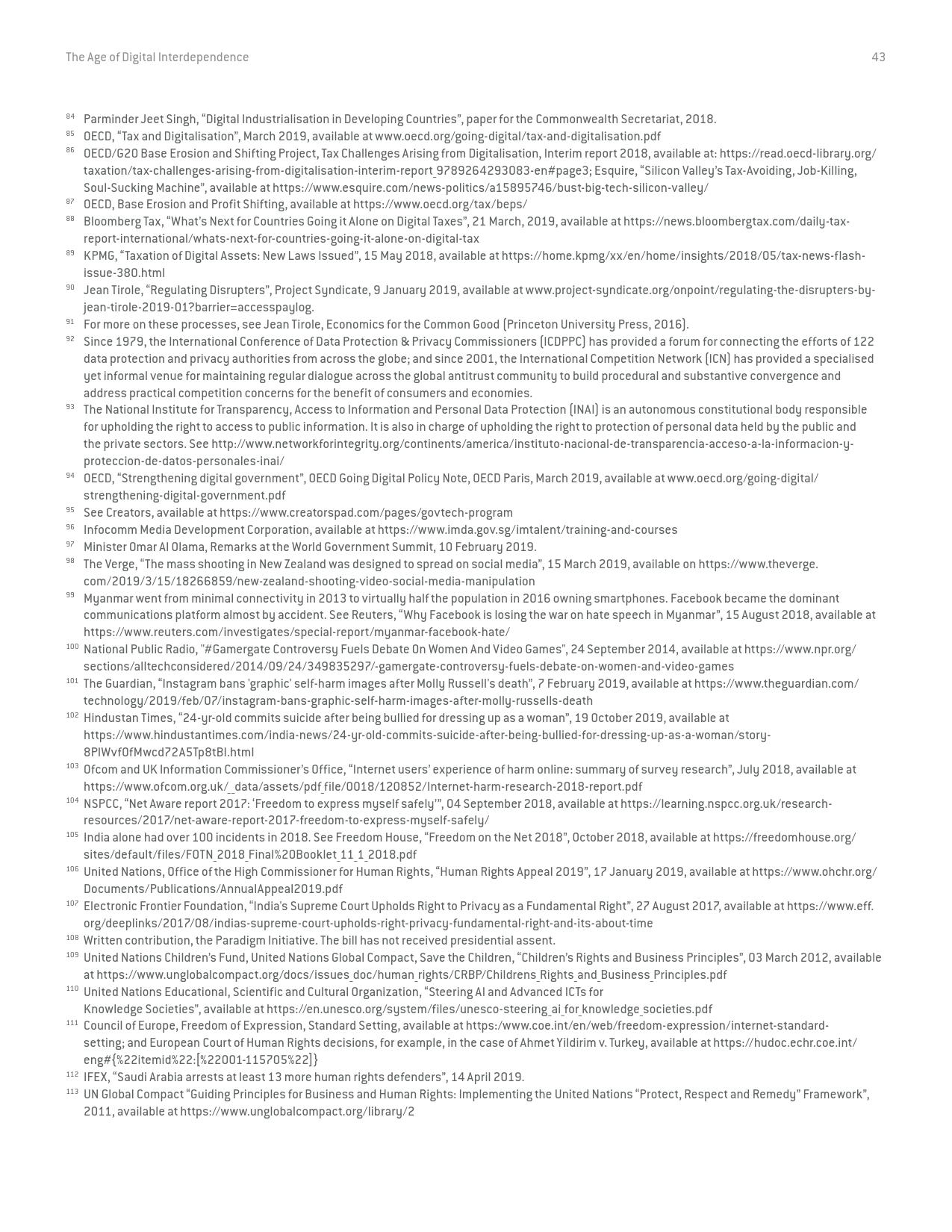 《数字相互依存的时代——联合国数字合作高级别小组报告》的报告分三个主要部分:1)数字技术如何支持实现可持续发展目标以及如何确保更具包容性的数字经济的前景;2)审查与数字领域、人的代理关系和安全有关的问题;3)数字合作模式。