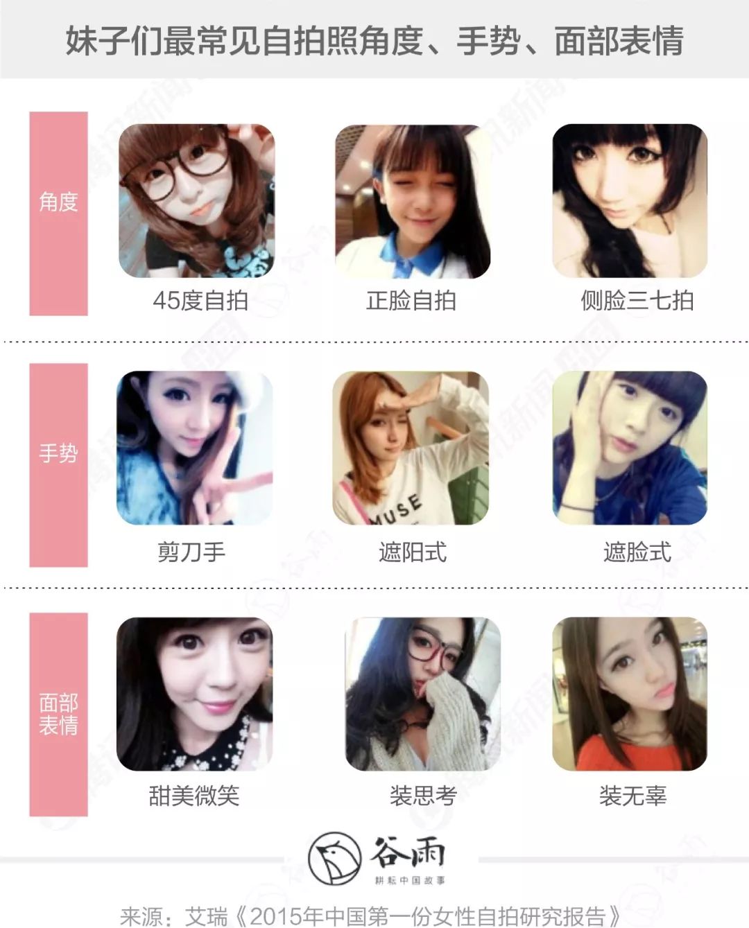 另一个令笔者大为不解的则是,为什么妹子们像三生三世前就约好了一样,自拍都会45°角、比剪刀手、装无辜表情?难道是因在长期自拍的历史进程中,妹子们总结出了一套行之有效、放之四海而皆准的自拍心得和技巧么?