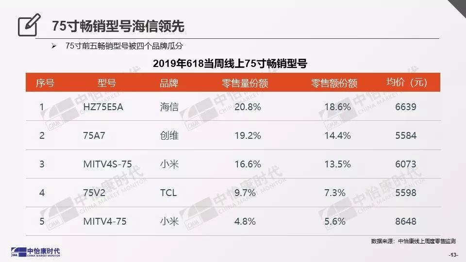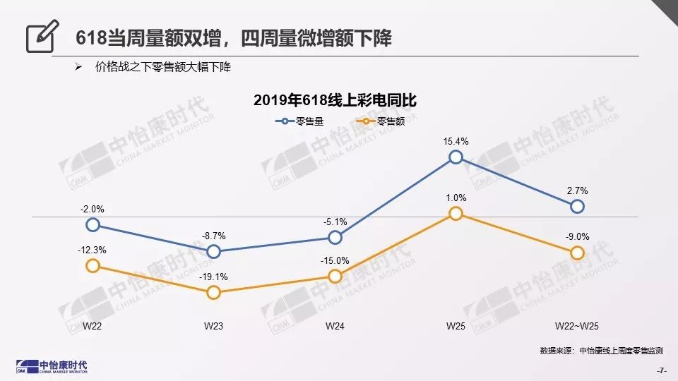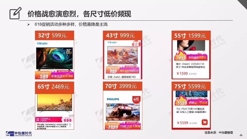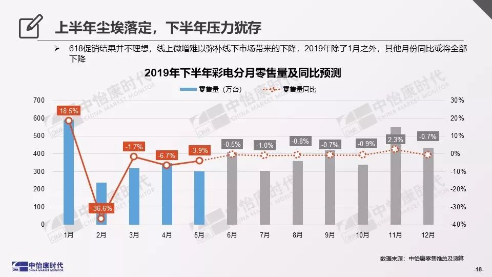 中怡康:2019年618彩电市场总结报告 更多阅读:中怡康:2018生活电器前三季度简报中怡康:2019厨卫市场线下十一快报(38-40周)中怡康:2015年Q1百货渠道化妆品零售额达95.5亿元 同比增长5.1%中怡康:2015年厨卫市场年中盘点中怡康:2015年-2016年Q1中国电水壶市场蓝皮书中怡康:2018年1-8月冰柜市场累计零售量为537万台中怡康:2015年11月中国家电市场分析中怡康:2019年Q1彩电人气排行榜中怡康:2019年6月中国家电市场运行情况中怡康:2019年8月中国家电市场运行情况中怡康:2014年1-11月雅诗兰黛集团零售额为42.3亿 同比4.0%中怡康:2014年中国冰箱市场分析中怡康:2014年Q1中国家电企业景气指数为108.7 较上季度小幅上升4.5中怡康:2013年上半年中国数码相机总零售量435万台 同比下滑35.08%中怡康:2014上半年家电市场规模达到7253亿元 同比增长4.8%