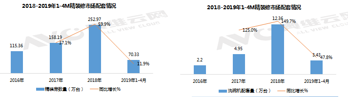 2019年1-4月精装修洗碗机市场配套量3.43万台,同比增长近五成