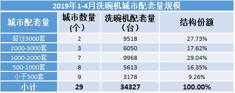 长沙、苏州领衔精装修洗碗机市场,配套量超过2000套的城市为5个