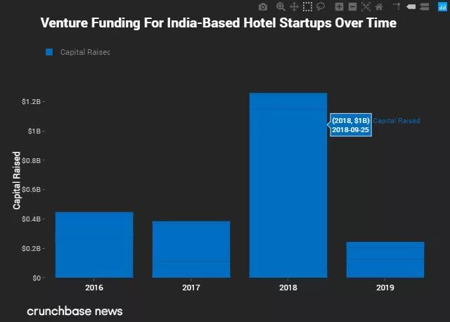Crunchbase 报道称,OYO完成了大笔的融资,也扭曲了印度的风险投资市场,该公司去年融资额占印度酒旅初创企业总融资的92%。