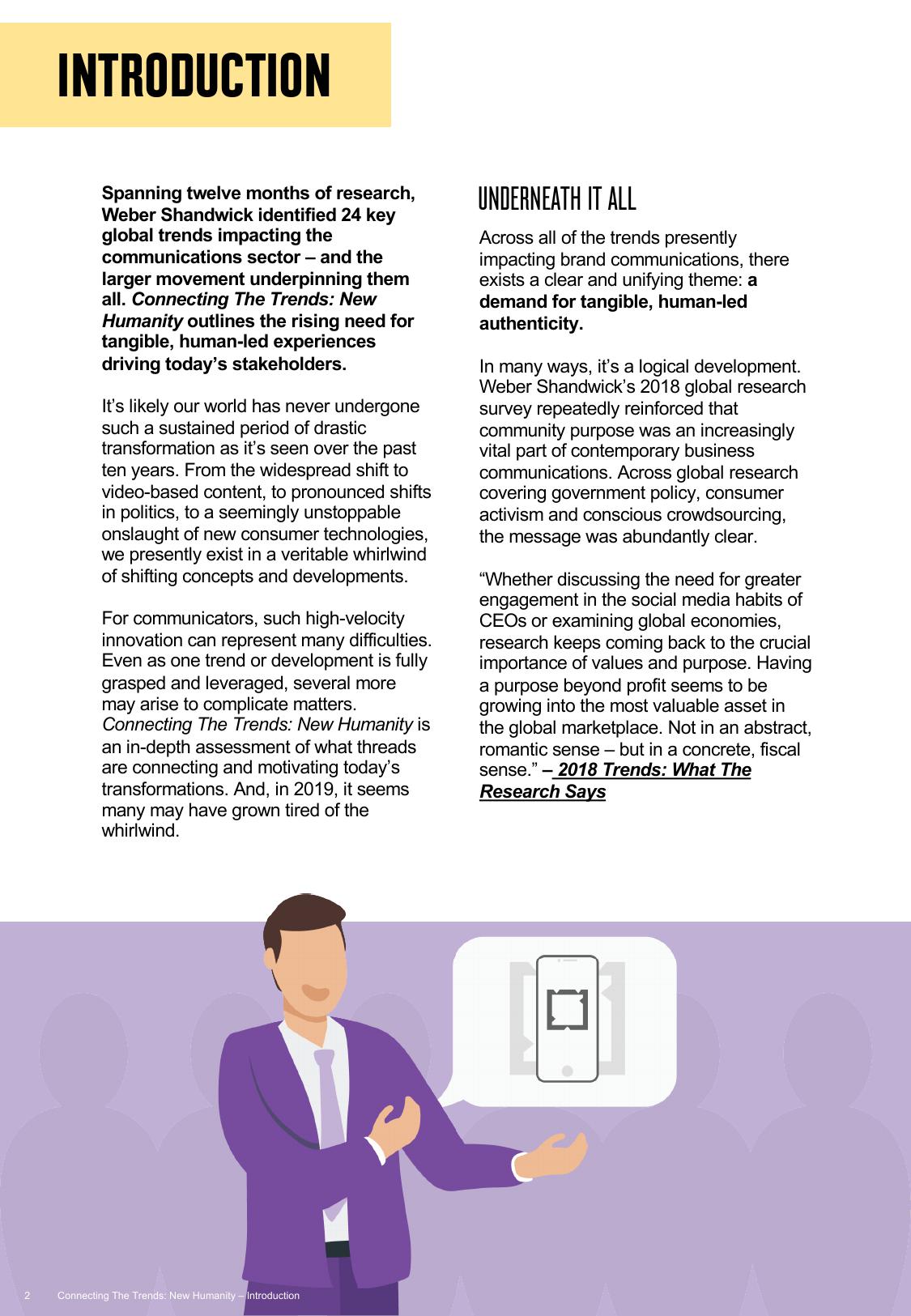 虽然通常都认为这种转型主要适用于消费者,但多数情况表明,这一新现象目前已在全球传播行业的方方面面得以体现。例如,业内人士正在寻求与雇主品牌建立更切实、更人性化的关系,企业间的服务也越具个性化。