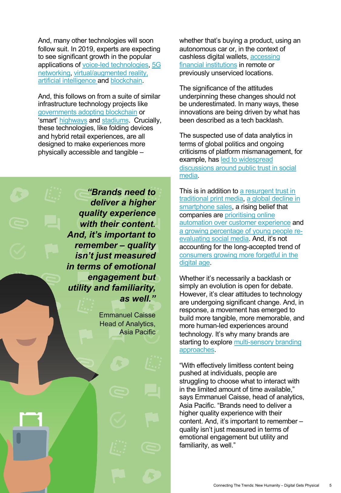 目前影响品牌传播的大体趋势都贯穿着一个明确而统一的主题:对切实的人性化体验需求。