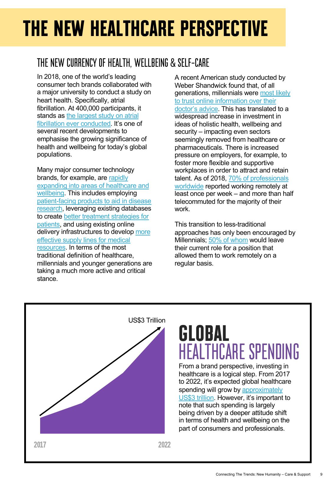 在2017年到2022年期间,全球医疗保健支出预计将增长约3万亿美元,消费者和专业人士对保健的态度发生了更深层次的转变。年轻一代在寻求医疗建议方面比长辈更加积极且具批判思维。万博宣伟近期在美国进行的一项研究表明,相比医生的建议,千禧一代更愿意相信网络信息,这有别于其他年龄层的人群。