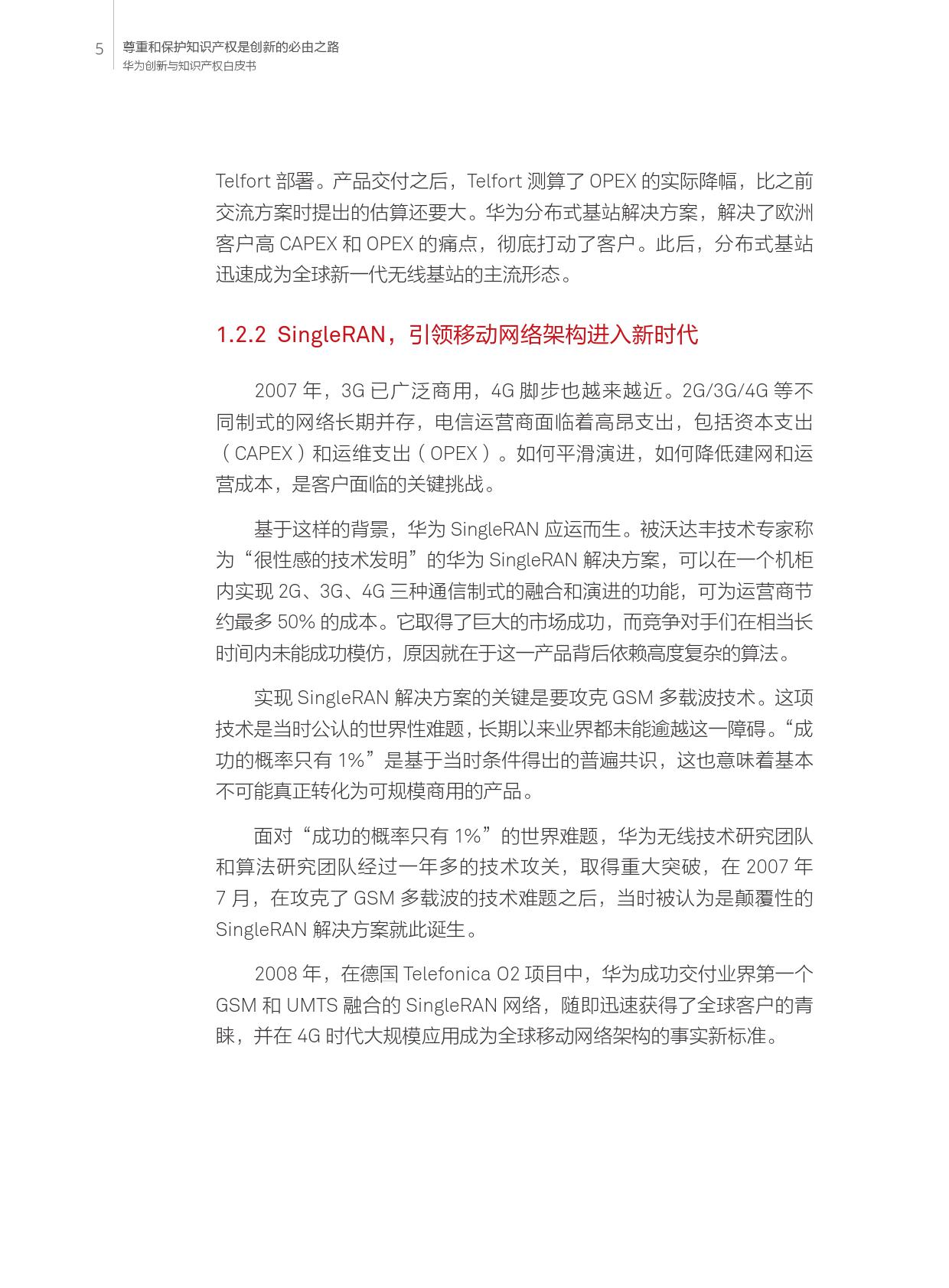 《白皮书》中,华为结合公司近几十年通讯技术的进步,概述华为 伴随2G/3G/4G以及未来即将使用的5G网络基站技术发展。一下内容节选自《白皮书》