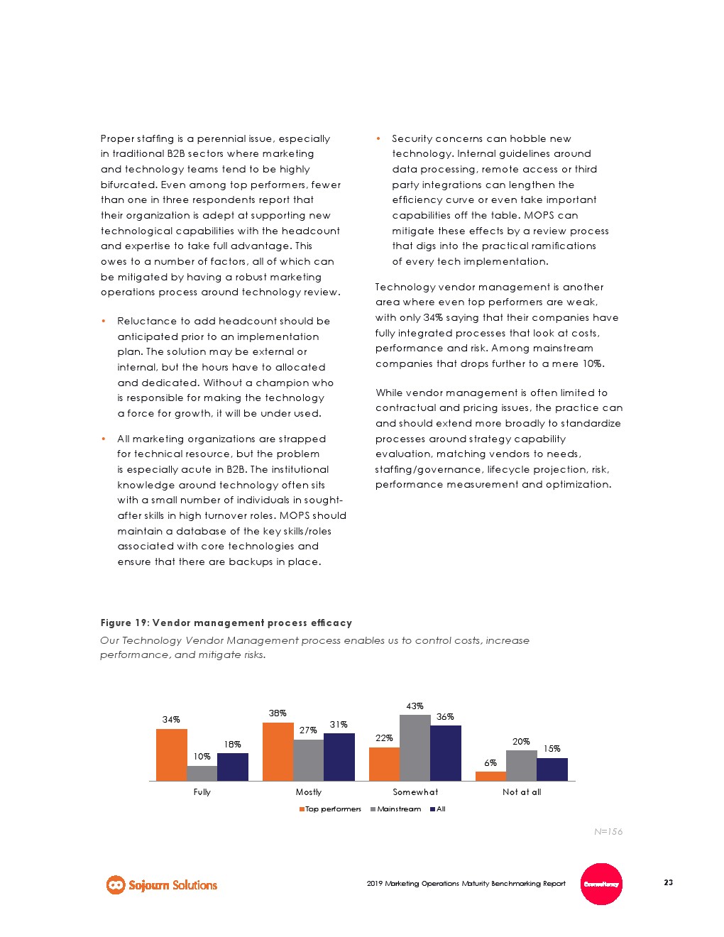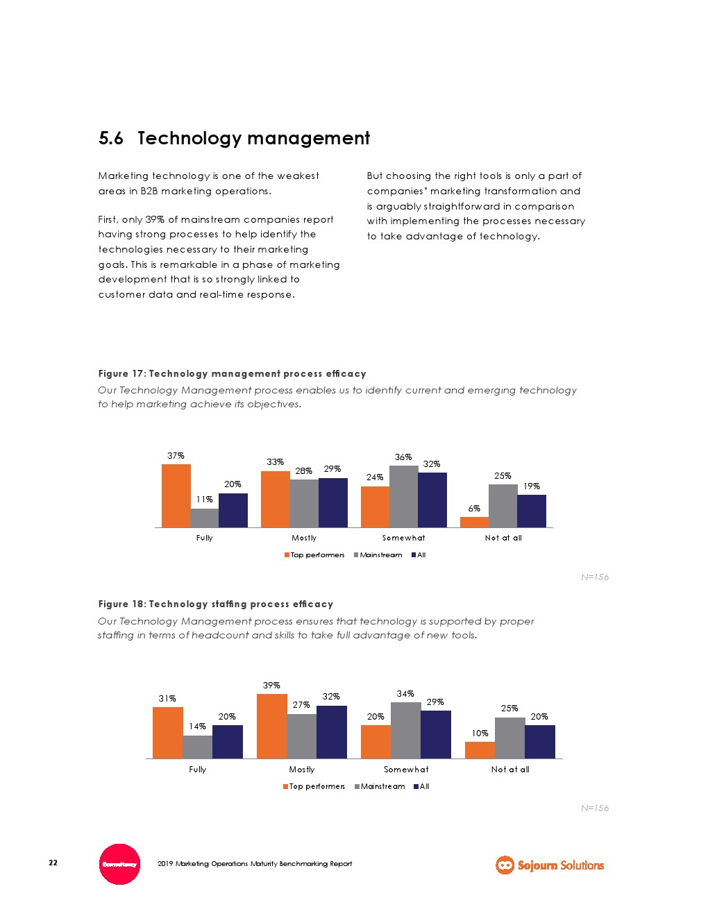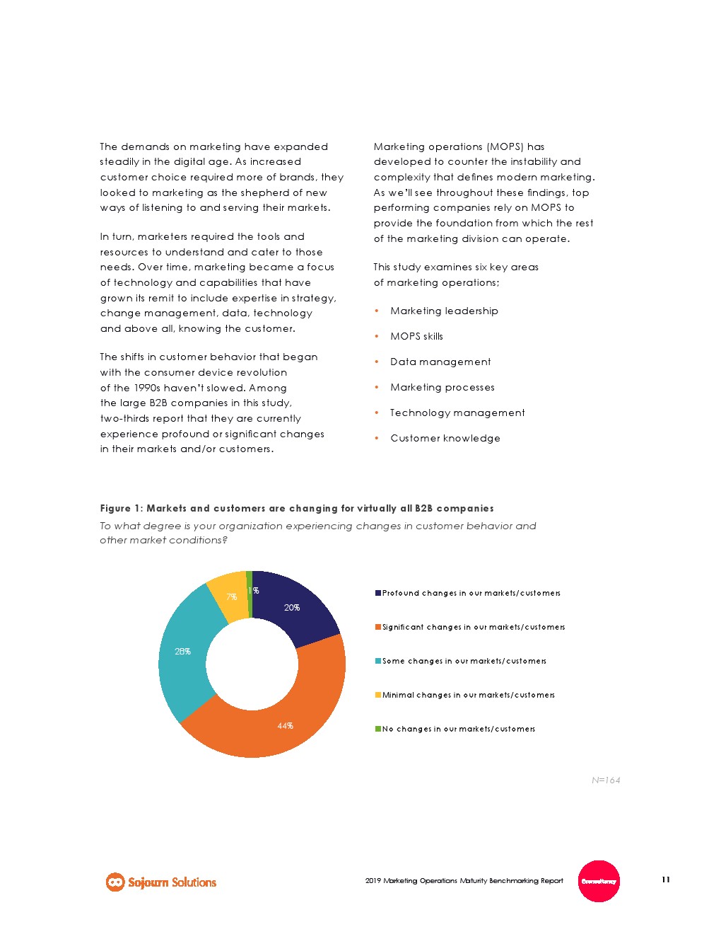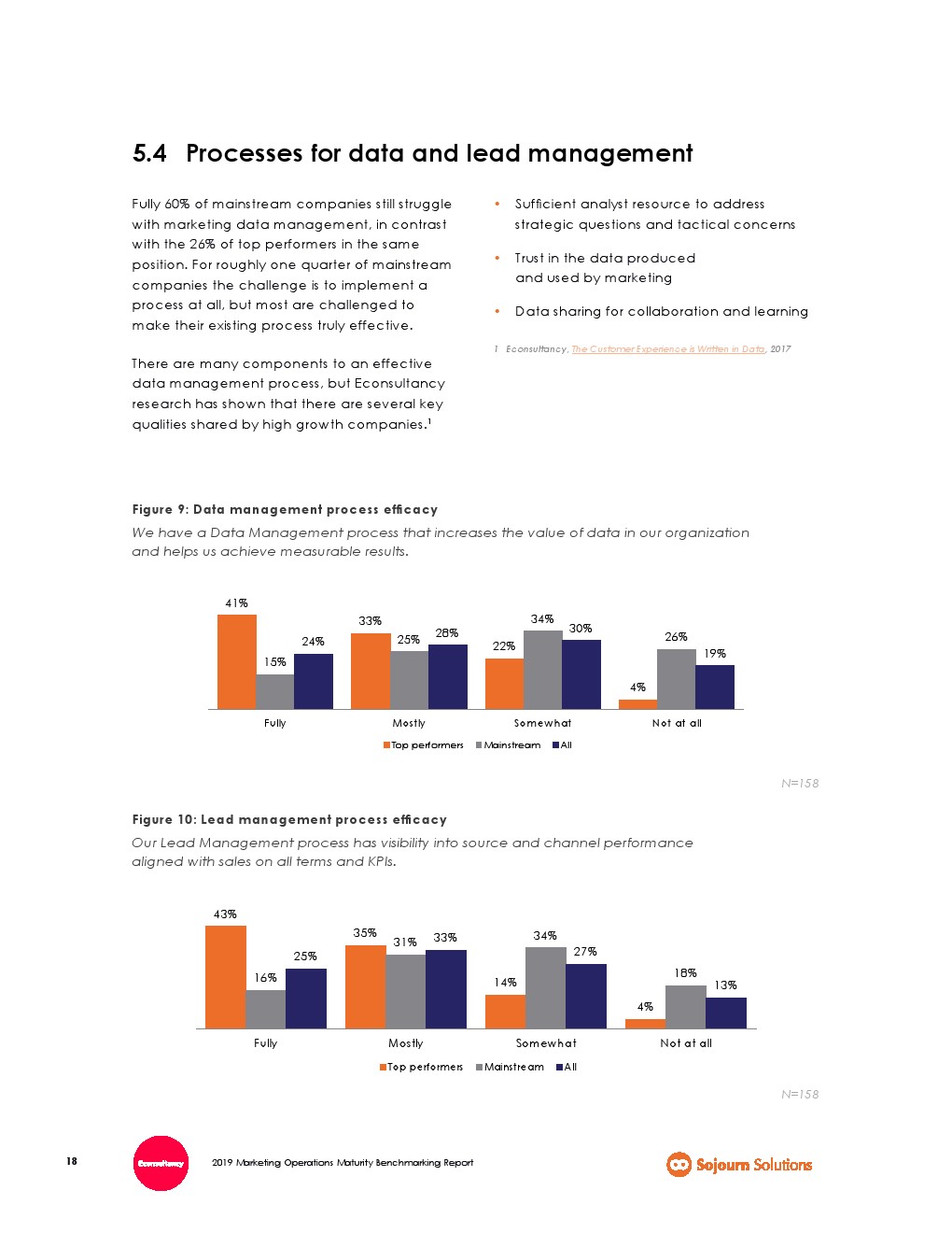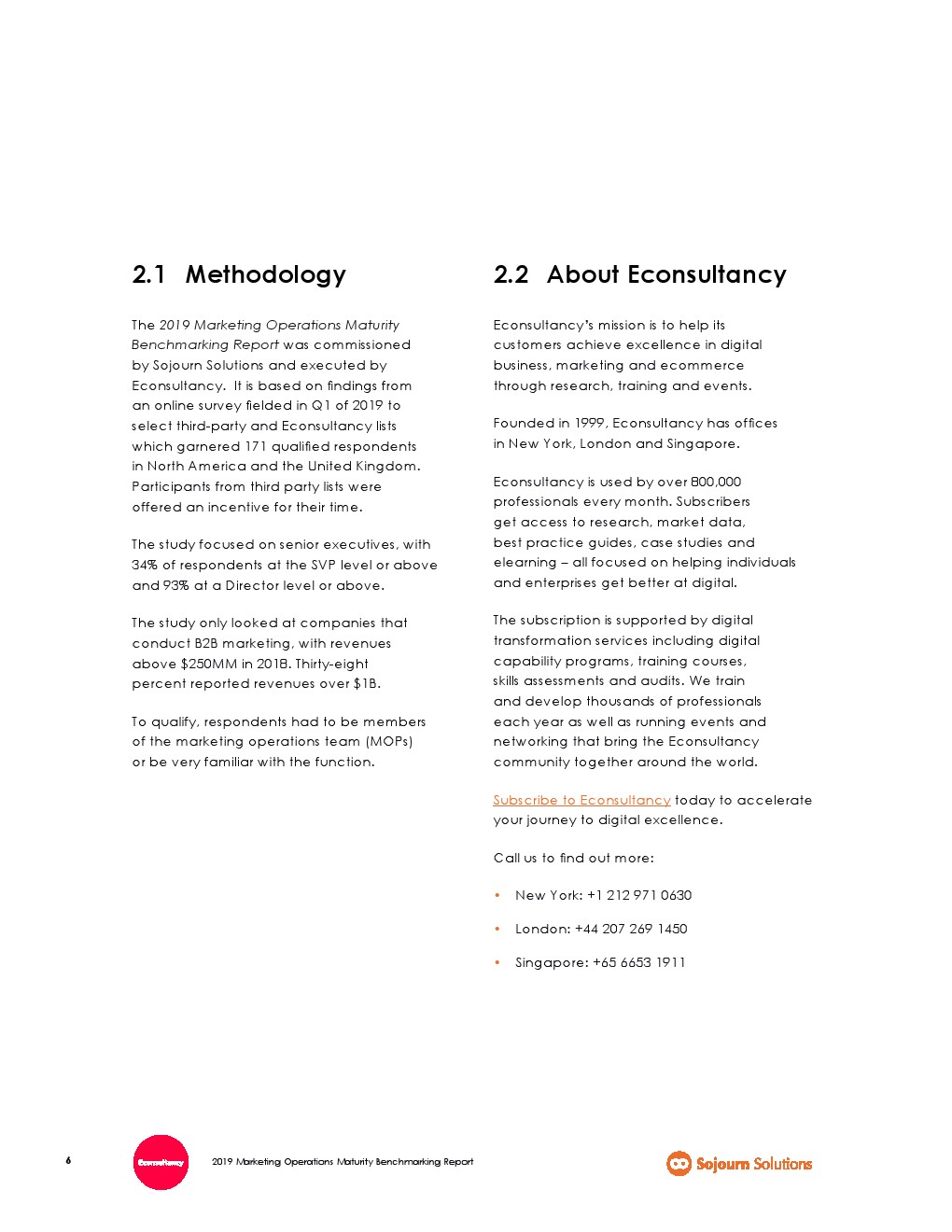 Econsultancy与Sojourn Solutions联合发布了2019年营销运营(MOPS)成熟度基准报告。该报告是基于对171名熟悉营销运营的高级管理人员的调查,这些受访者都来自2018年收入超过2.5亿美元的企业。