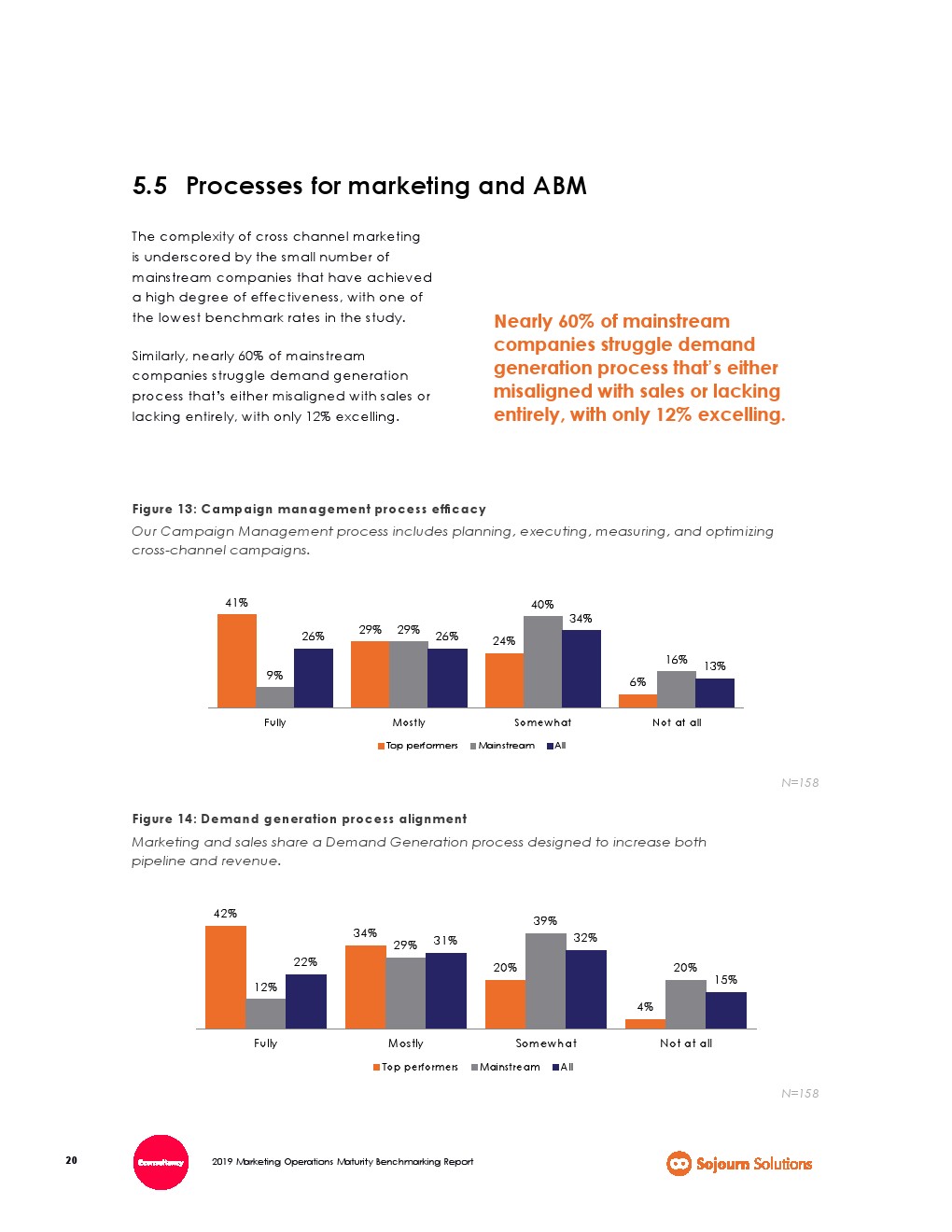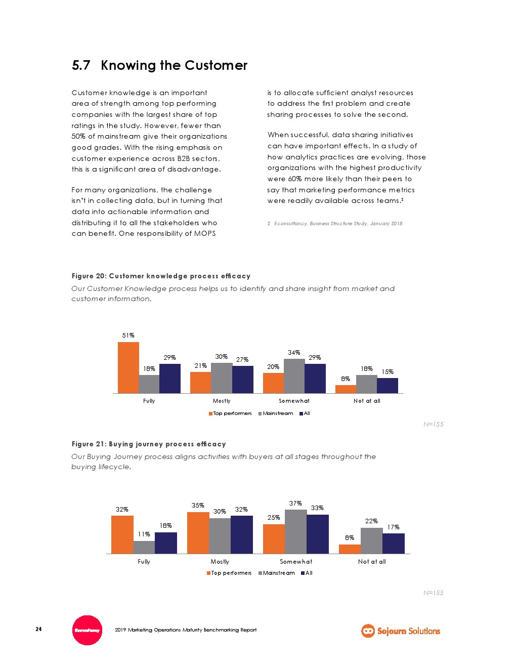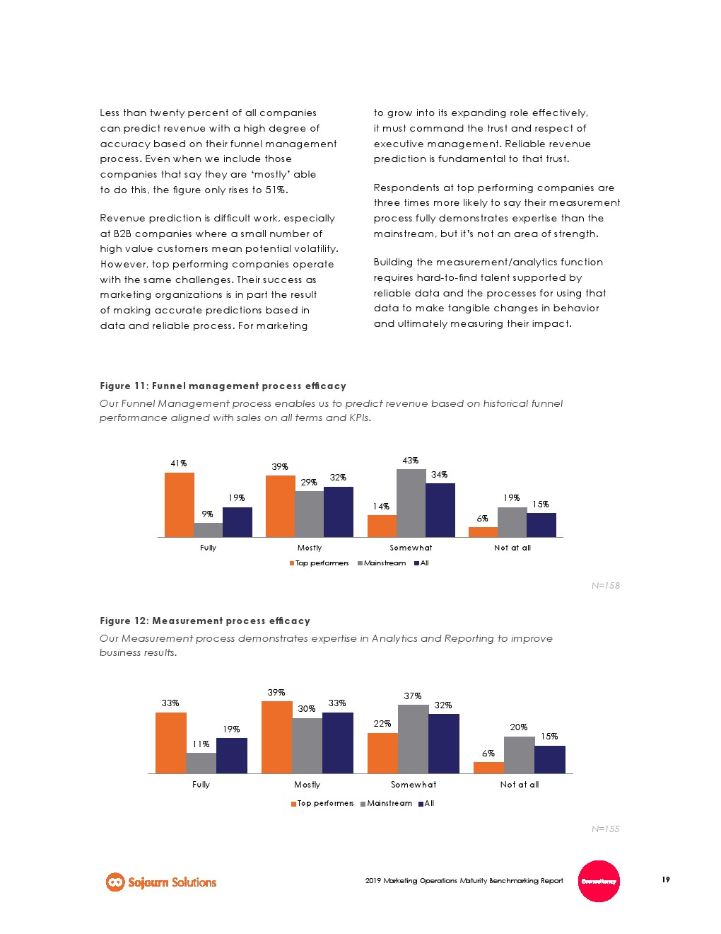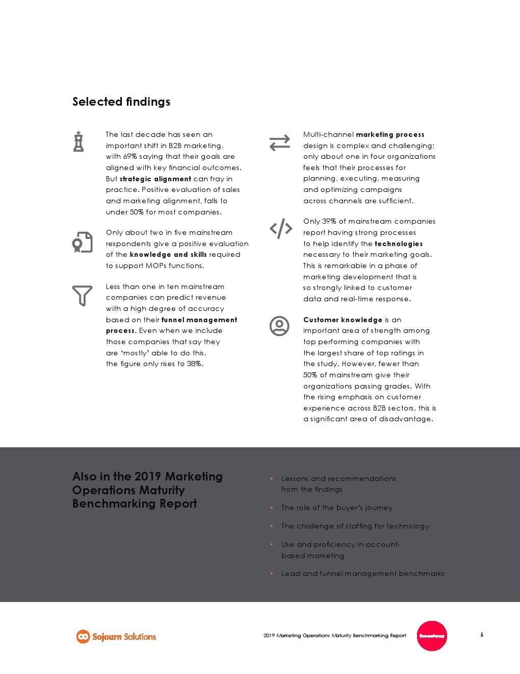 Econsultancy与Sojourn Solutions联合发布了2019年营销运营(MOPS)成熟度基准报告。该报告是基于对171名熟悉营销运营的高级管理人员的调查,这些受访者都来自2018年收入超过2.5亿美元的企业。