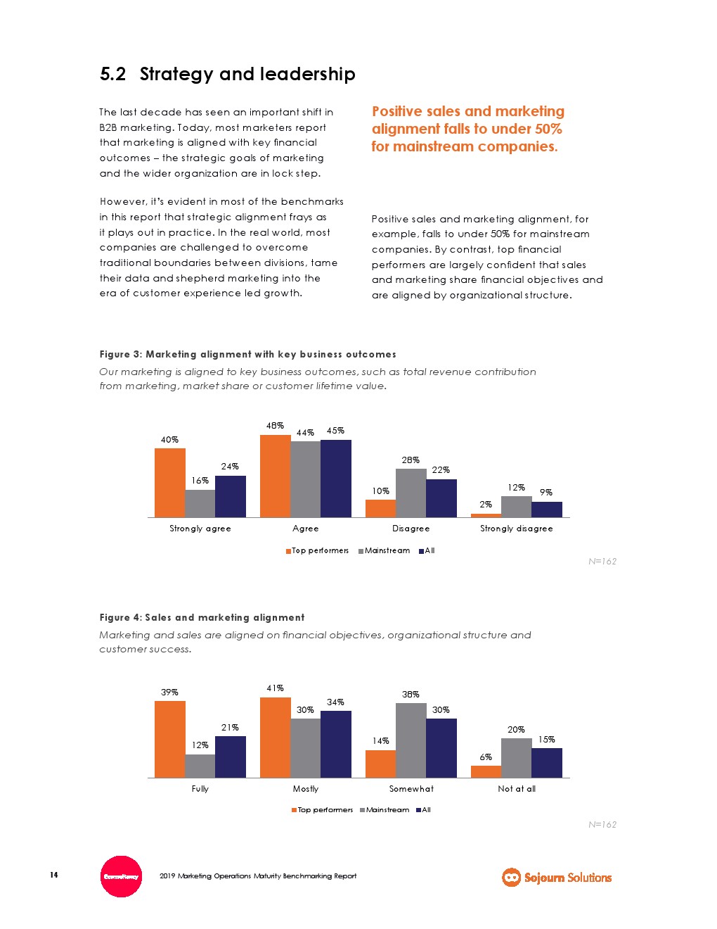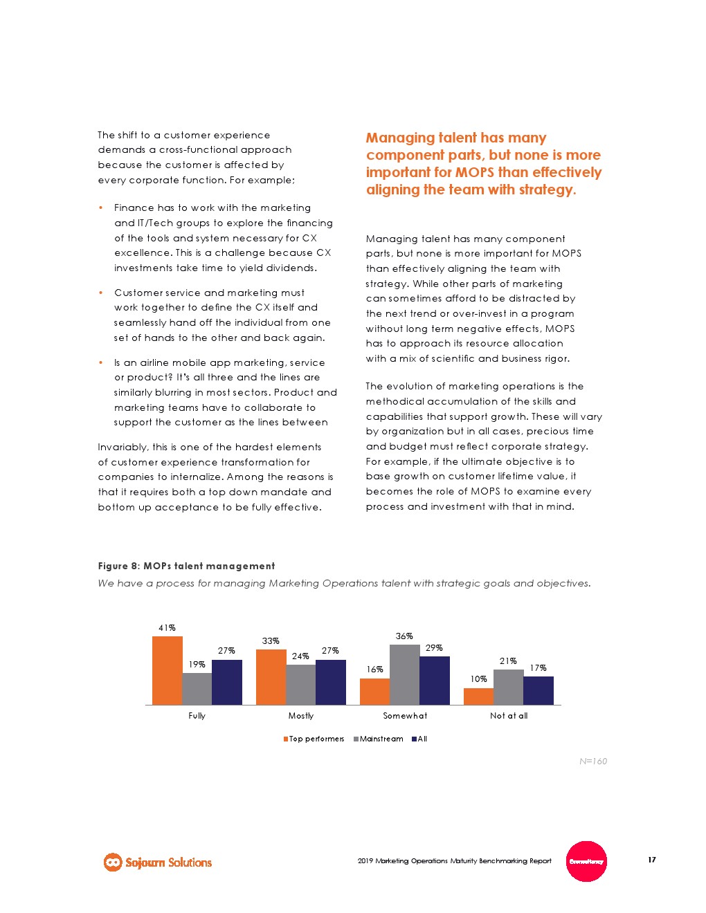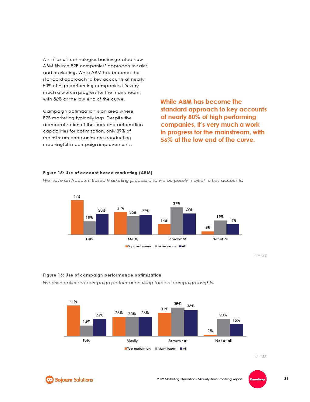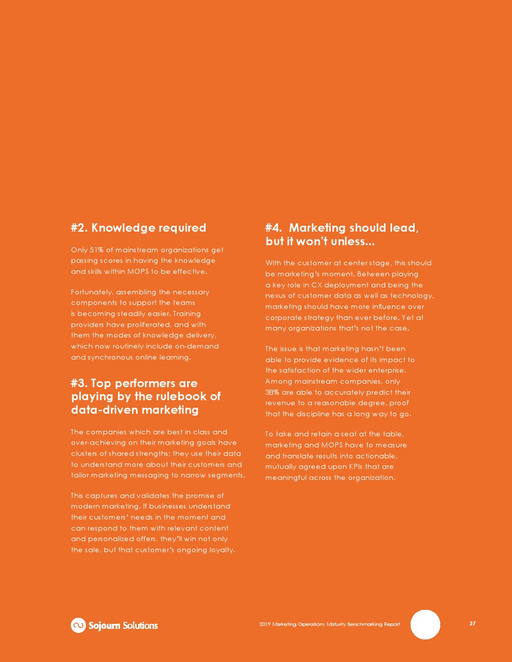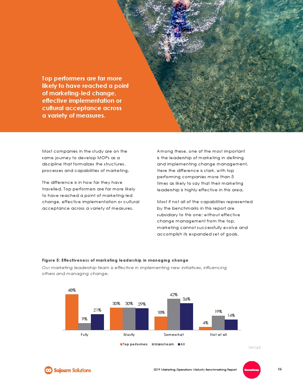 Econsultancy与Sojourn Solutions联合发布了2019年营销运营(MOPS)成熟度基准报告。该报告是基于对171名熟悉营销运营的高级管理人员的调查,这些受访者都来自2018年收入超过2.5亿美元的企业。