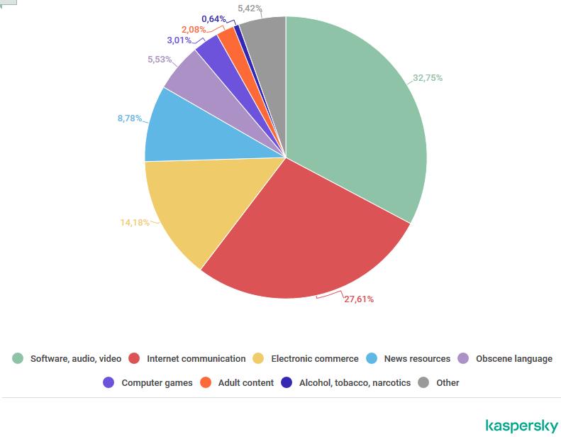 与电脑游戏有关的网站所占比例为3.01%。成人内容网站的份额攀升至2.08%,比去年(0.74%)增长了1.34个百分点。酒类、烟类、毒品类网站的份额大幅下降,达0.64%(去年为6.32%)。
