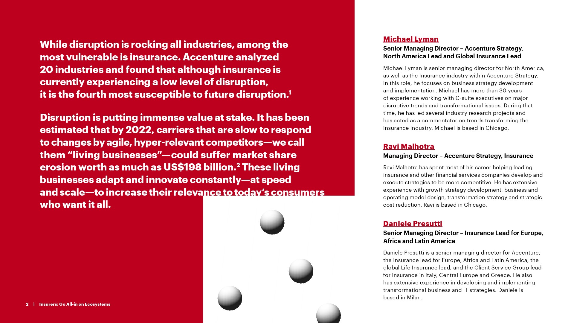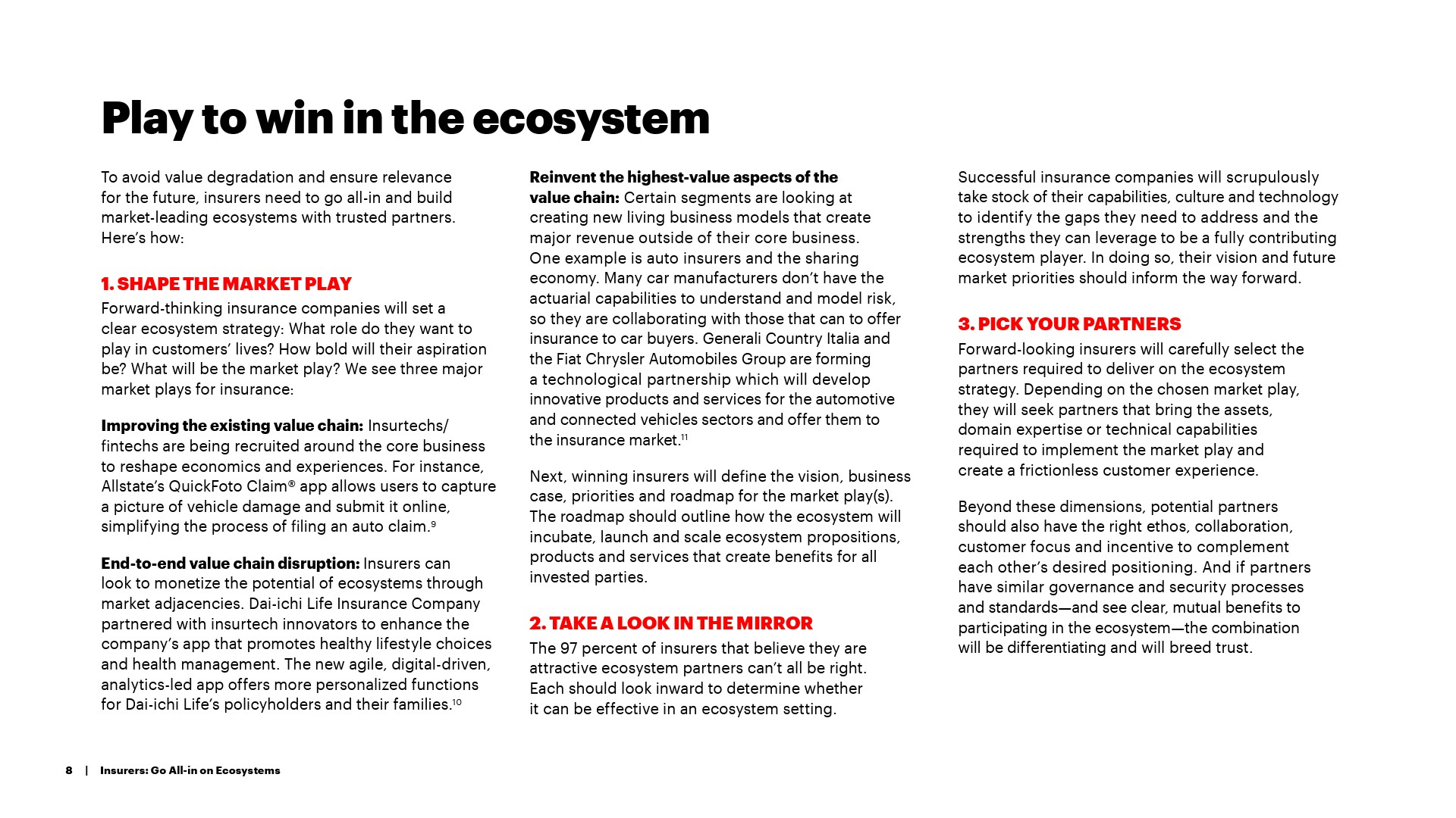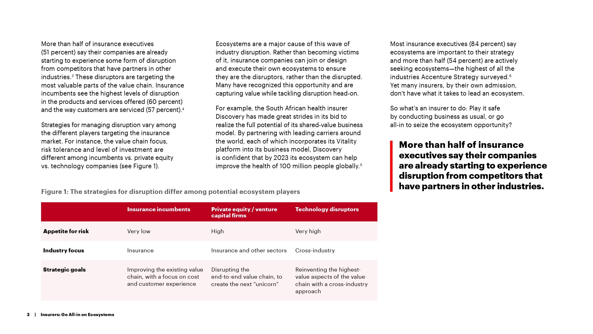 埃森哲对包括106名保险高管在内的1250多名企业领袖进行了调查。结果发现,大多数的保险业高管(84%)承认生态系统对他们的业务战略很重要,超过一半的保险高管(54%)正在积极寻求生态系统机会。但是,尽管有这种在生态系统中竞争的热情和愿望,保险公司仍然缺乏适当的能力、文化和技术来充分利用这些机会。