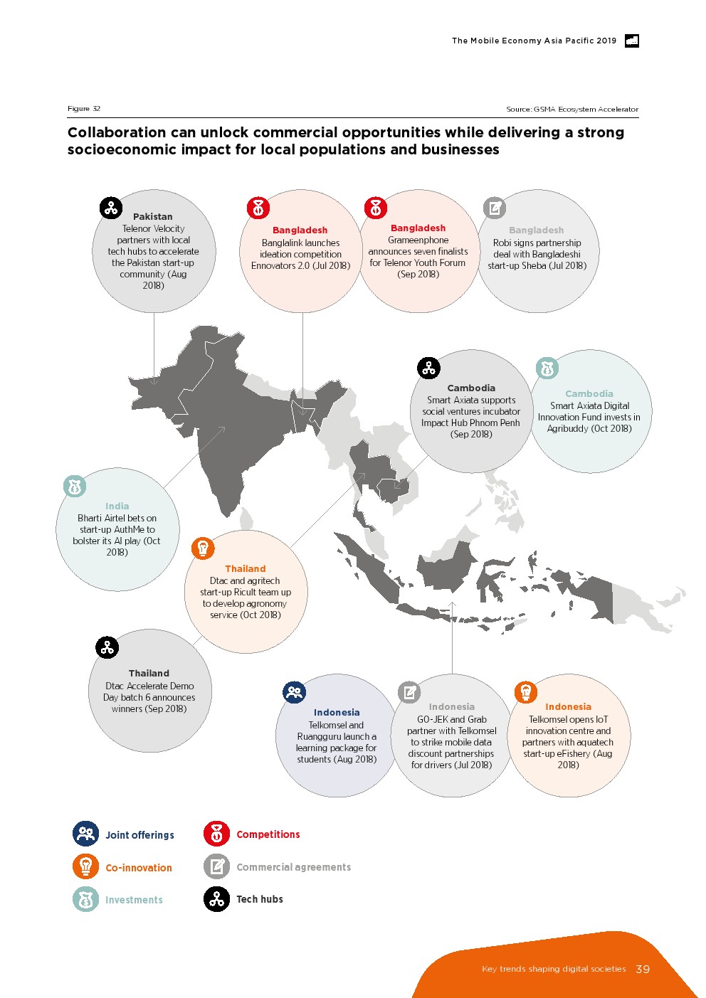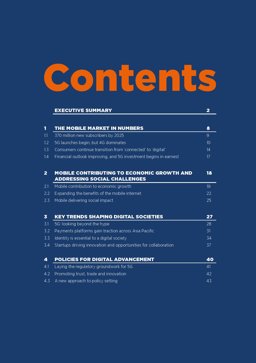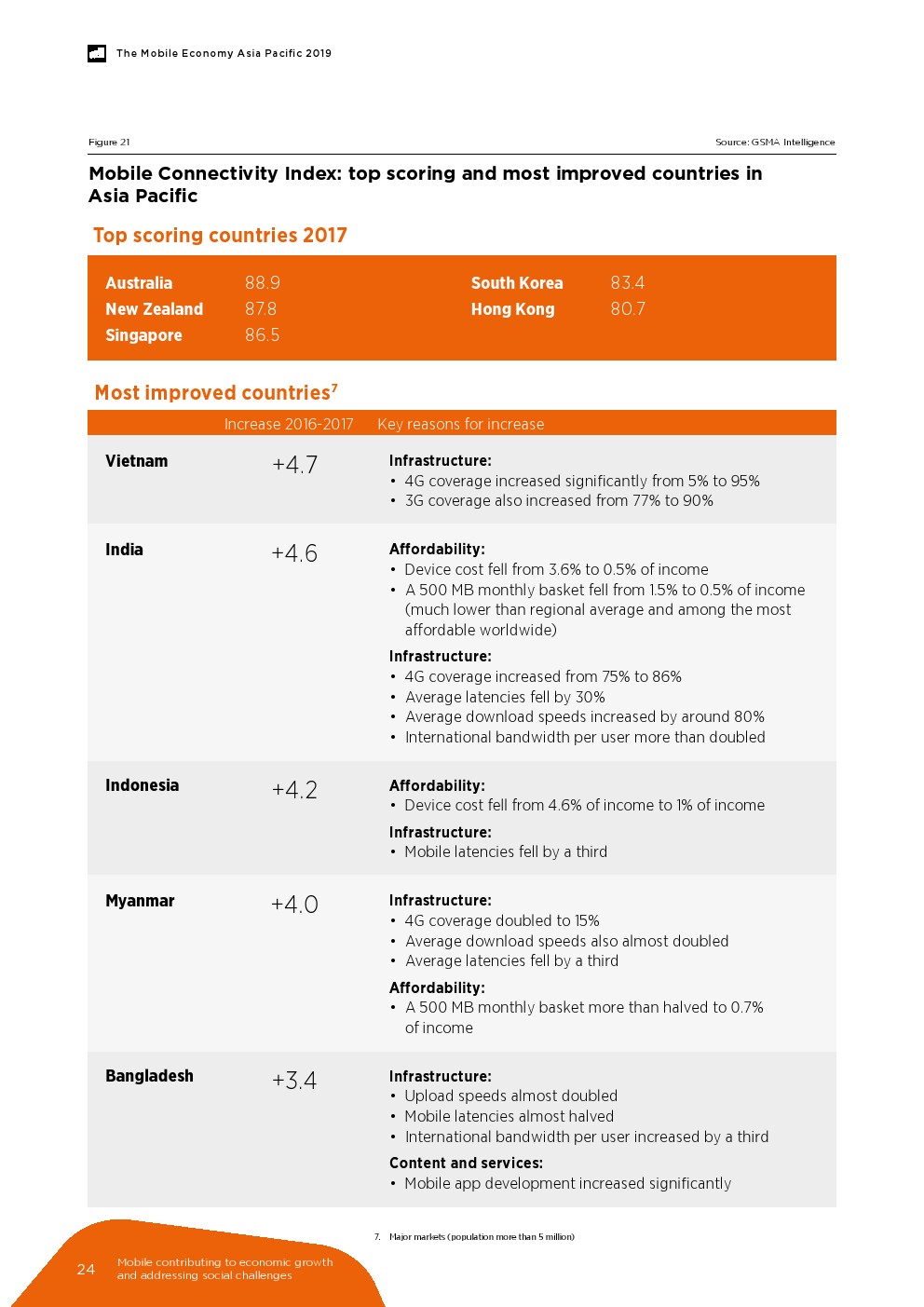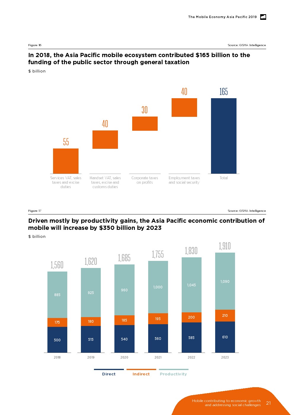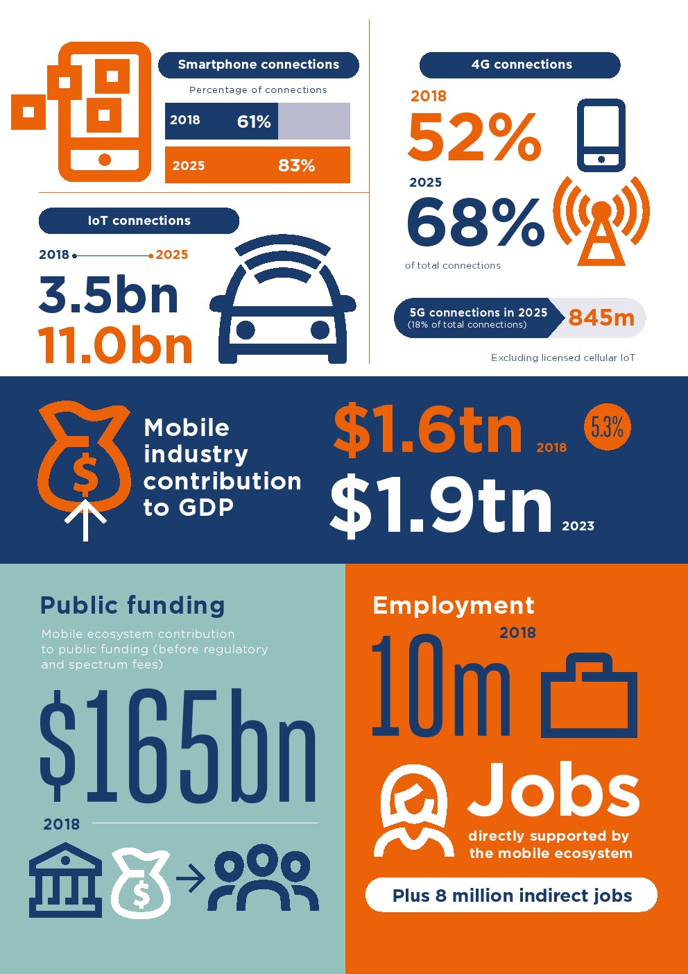 截至2018年底,亚太地区有28亿人订购了移动服务,占人口的67%。自2014年以来新增用户4.66亿(平均年增长率为4.7%)。全球超过一半的移动用户居住在亚太地区,主要是在中国和印度。到2025年,亚太地区将占全球新用户的一半以上。到目前为止,该地区将有3.7亿新用户,总数达到31亿,占人口的72%。这些新用户中约有90%来自六个国家:印度、中国、巴基斯坦、印度尼西亚、孟加拉国和菲律宾。