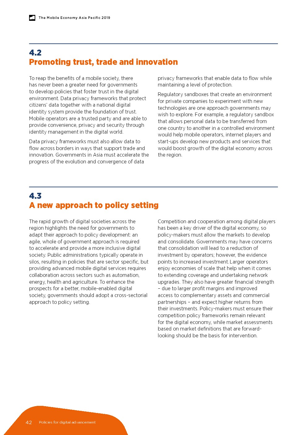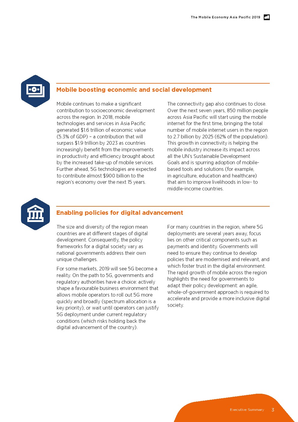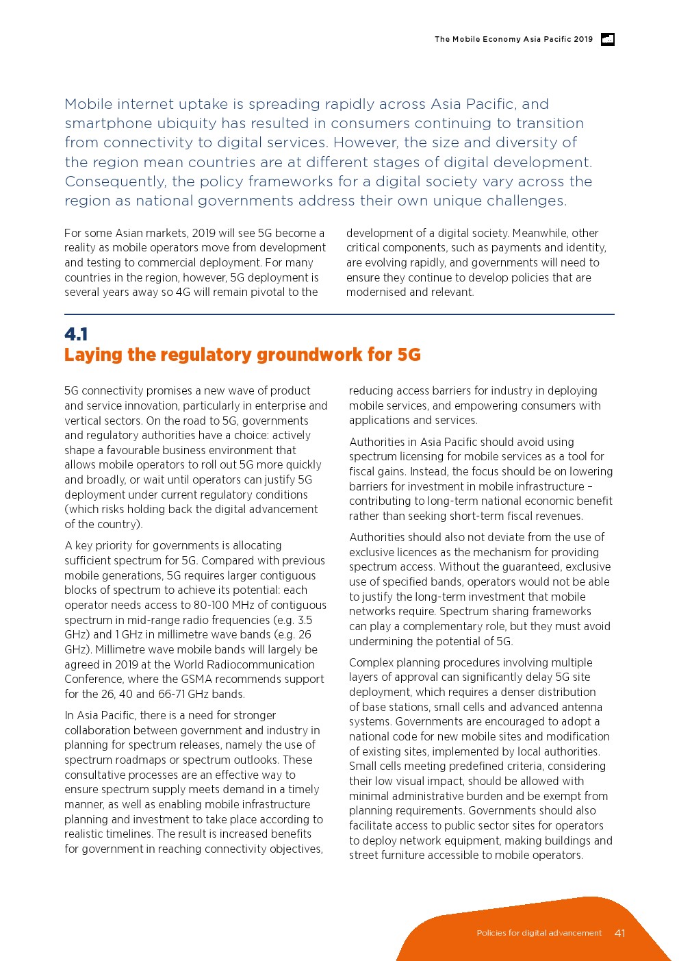 该地区的规模和多样性意味着各国处于数字发展的不同阶段。因此,各国政府应对自身独特的挑战、数字社会的政策框架也各不相同。在通向5G的道路上,政府和监管机构可以选择积极塑造有利的商业环境,使移动运营商能够更快、更广泛地推出5G;或等到运营商能够证明5G部署的合理性。