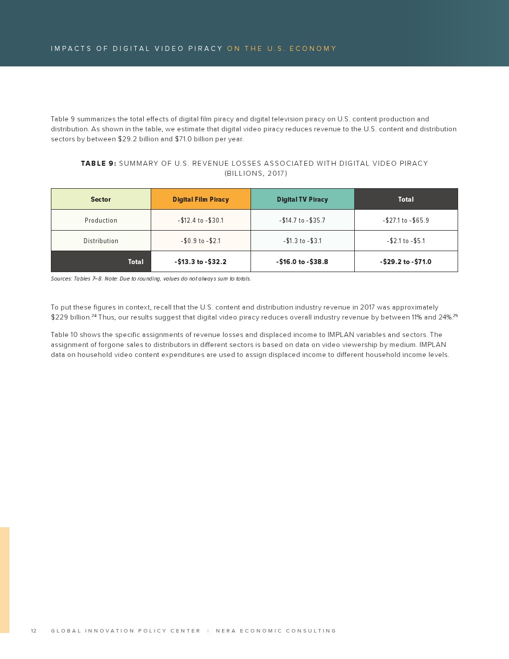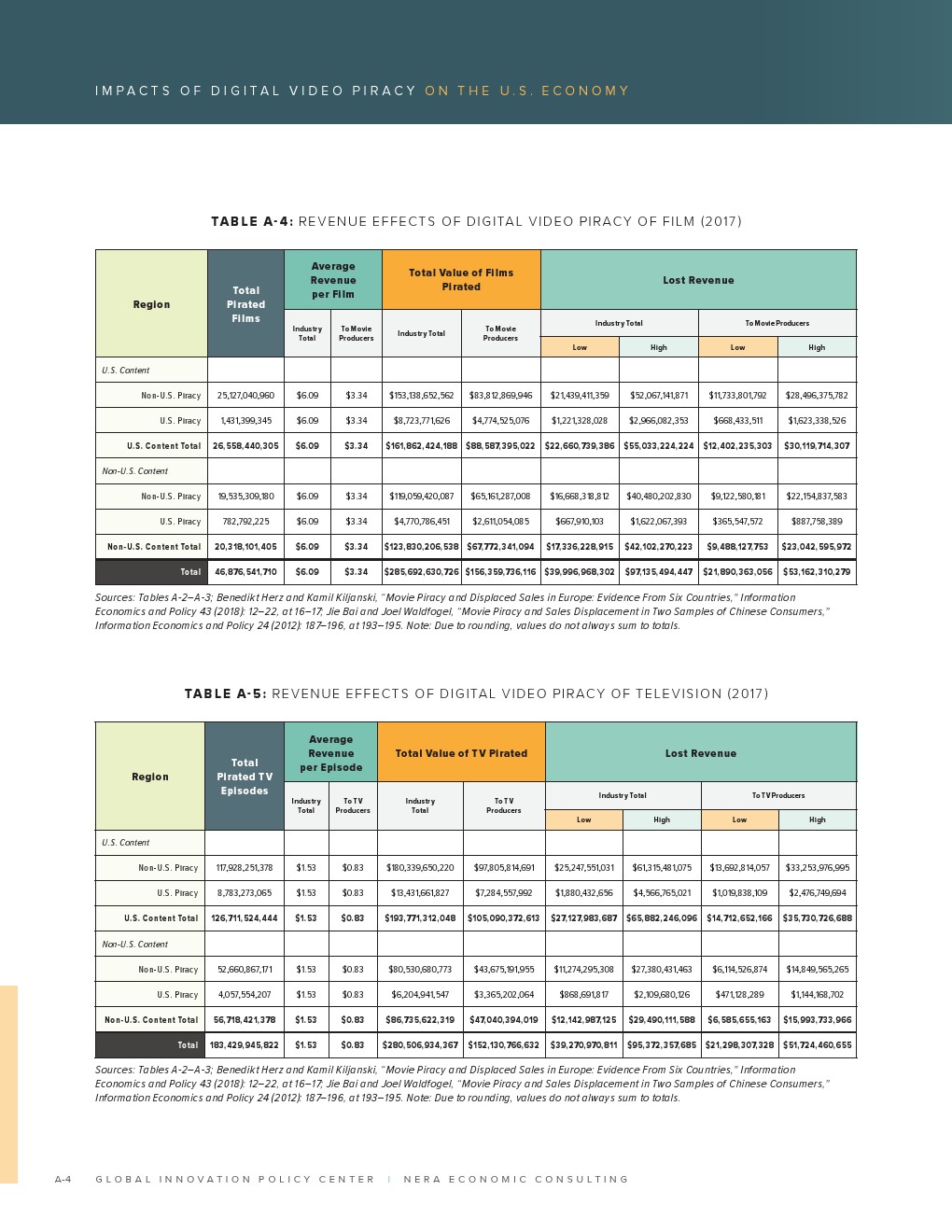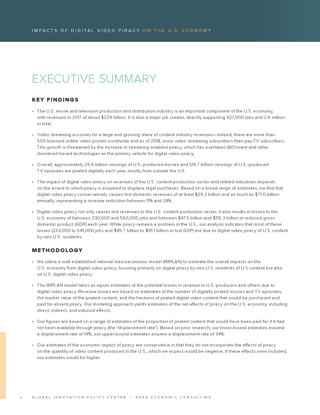 NERA发布了新报告“网络视频盗版对美国经济的影响”。