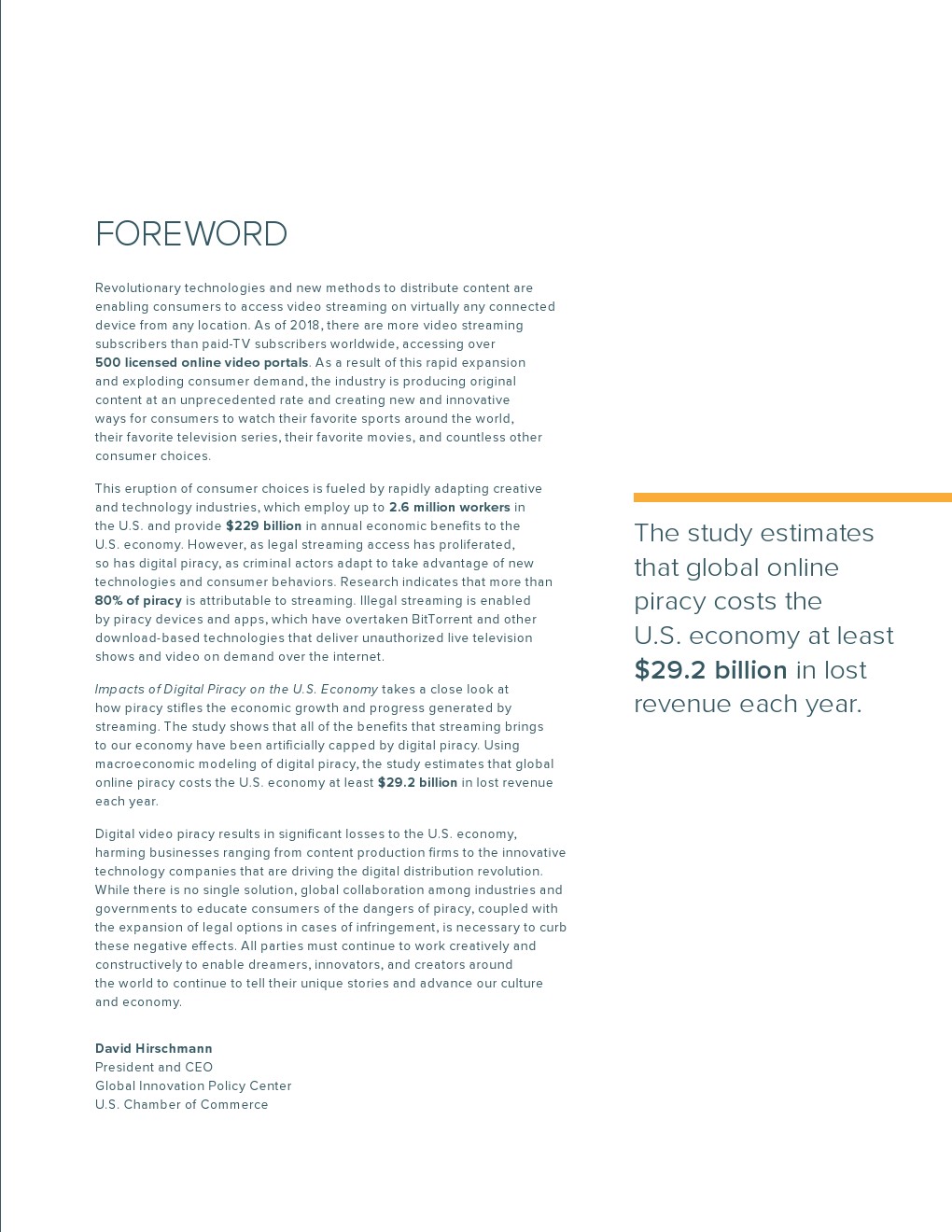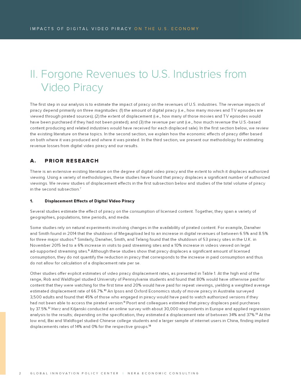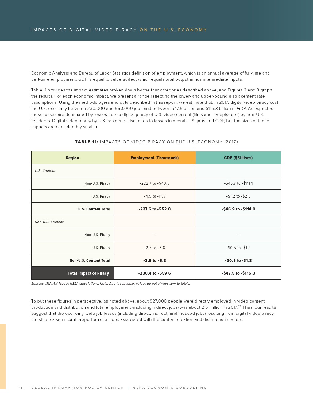 NERA发布了新报告“网络视频盗版对美国经济的影响”。