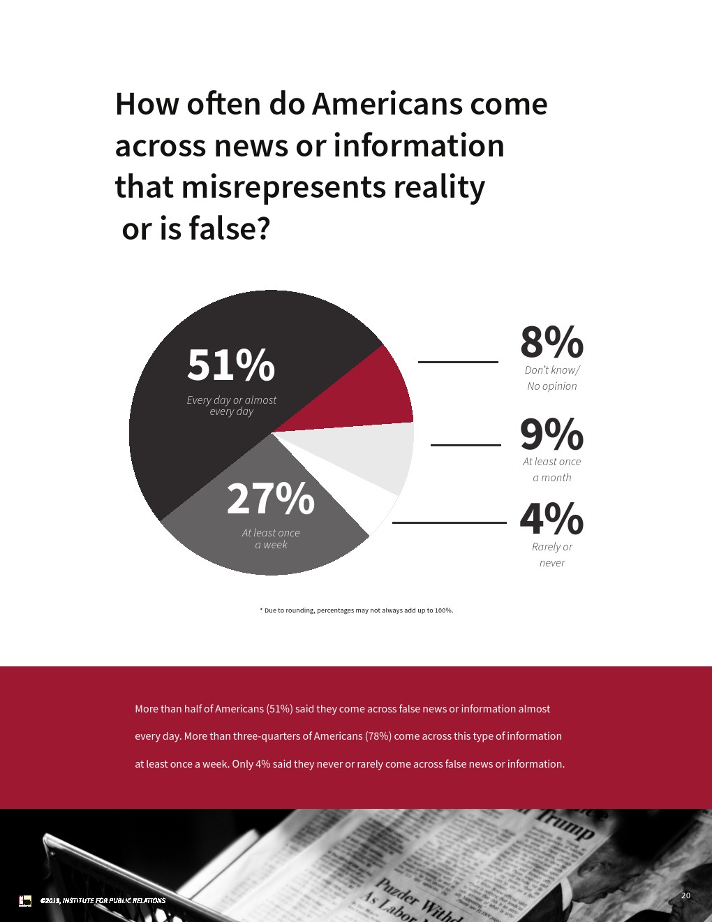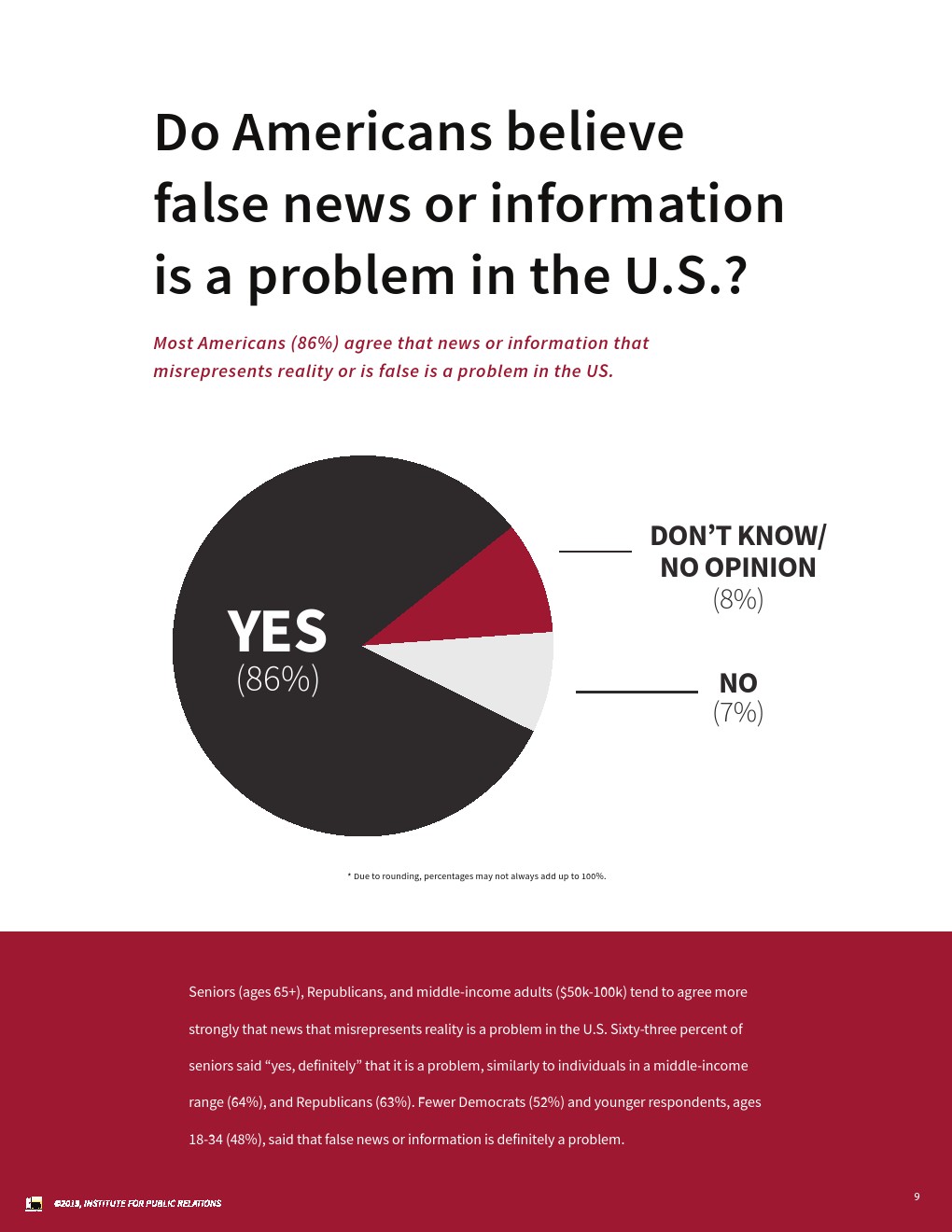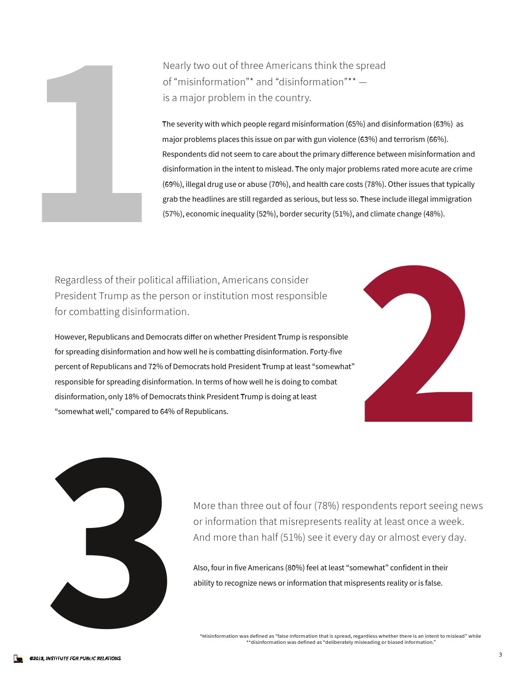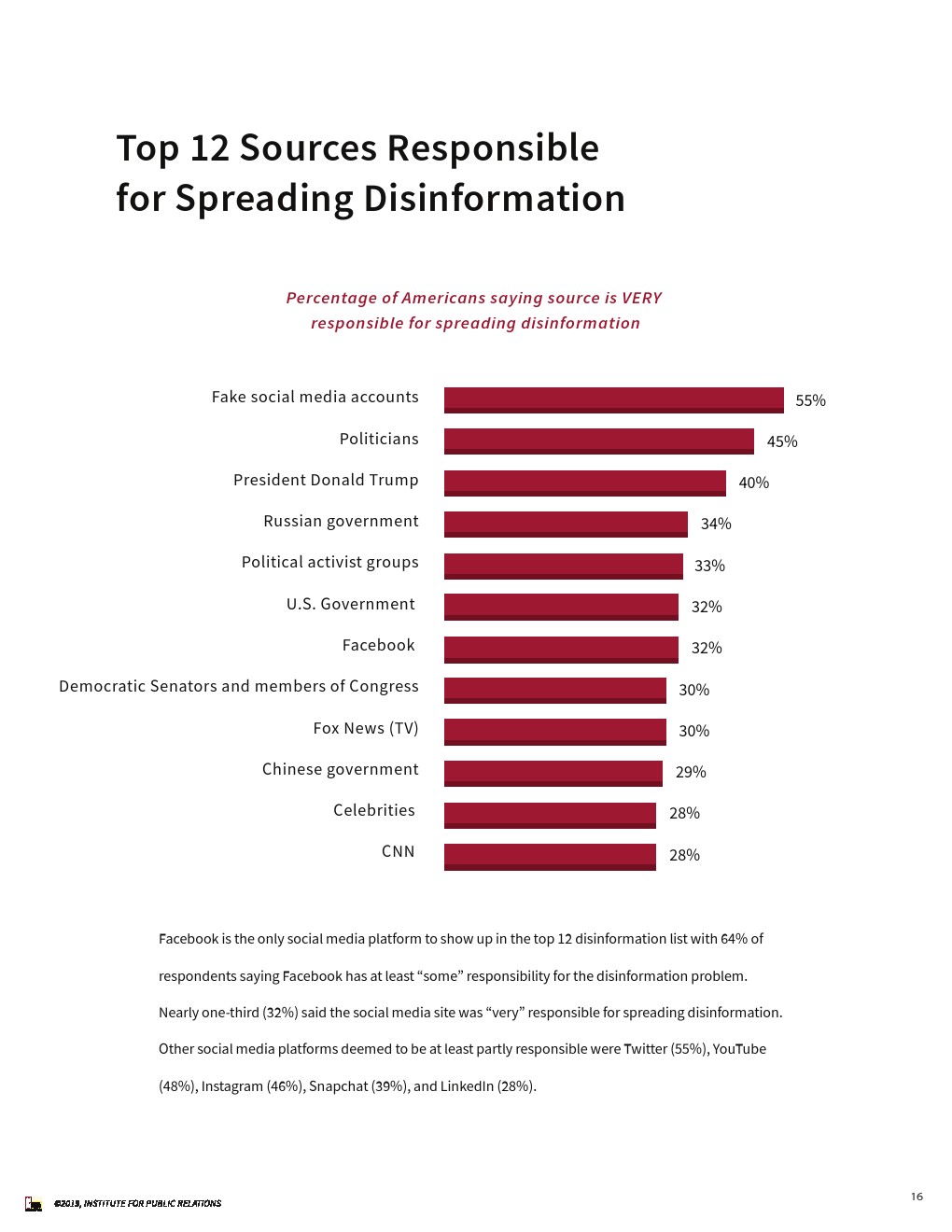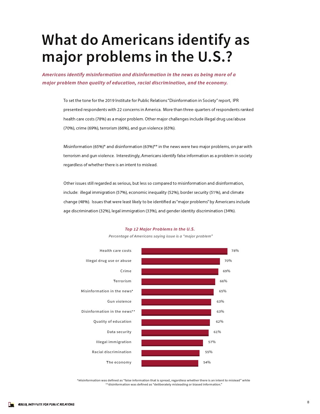 IPR发布了“2019年社会虚假信息报告”。63%的美国人认为虚假信息、故意误导或有偏见的信息是社会中的一个“重大”问题,与枪支暴力(63%)和恐怖主义(66%)不相上下。