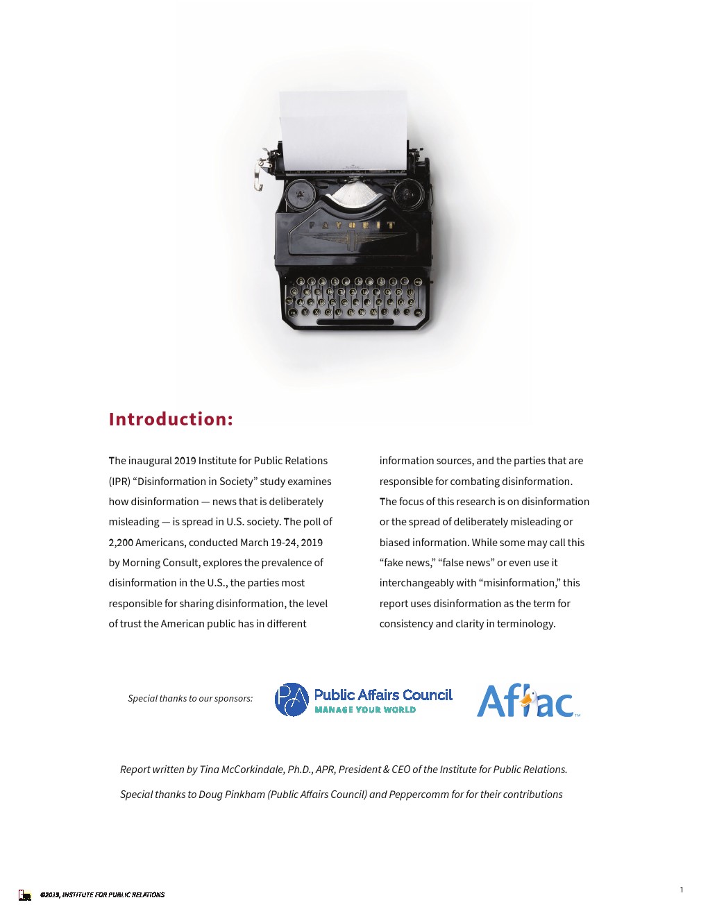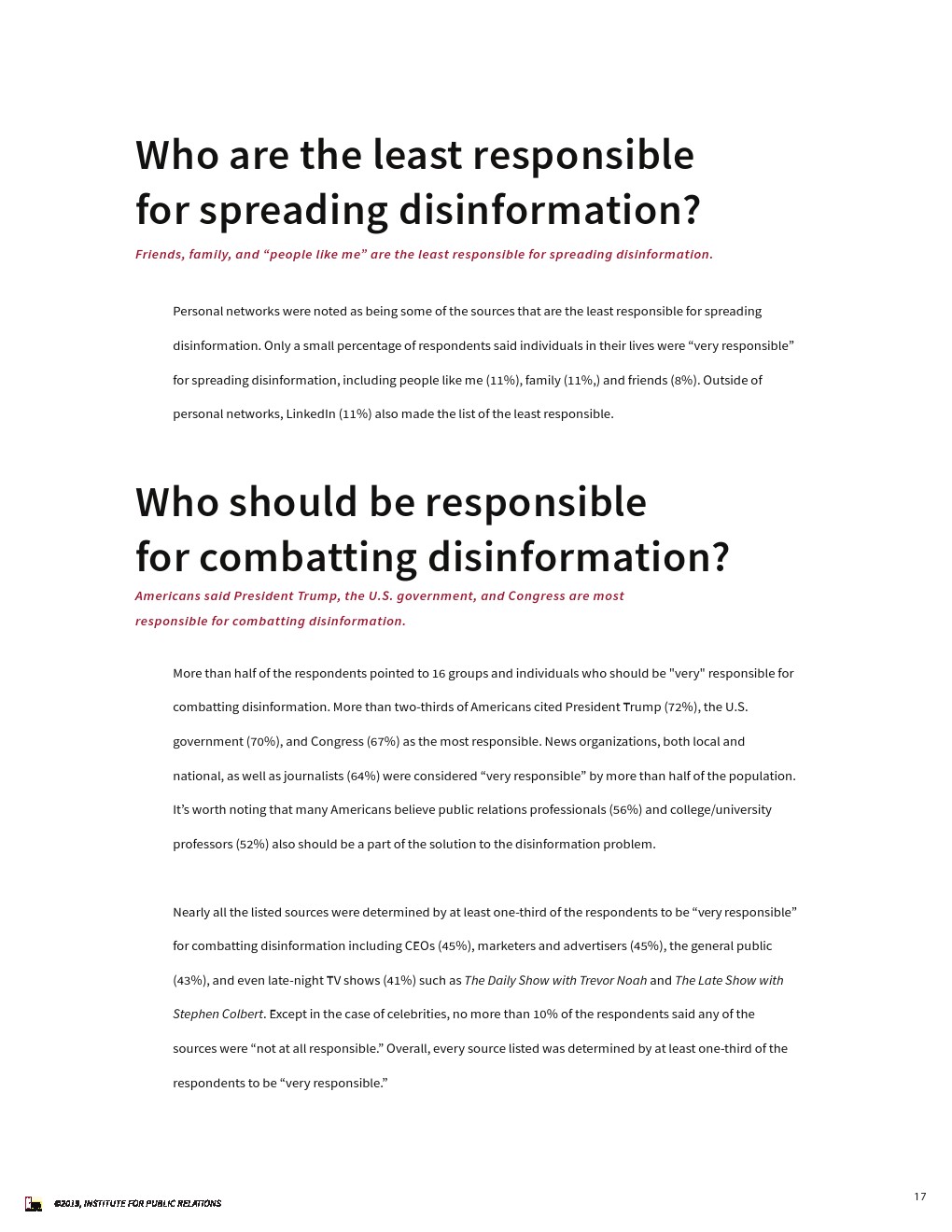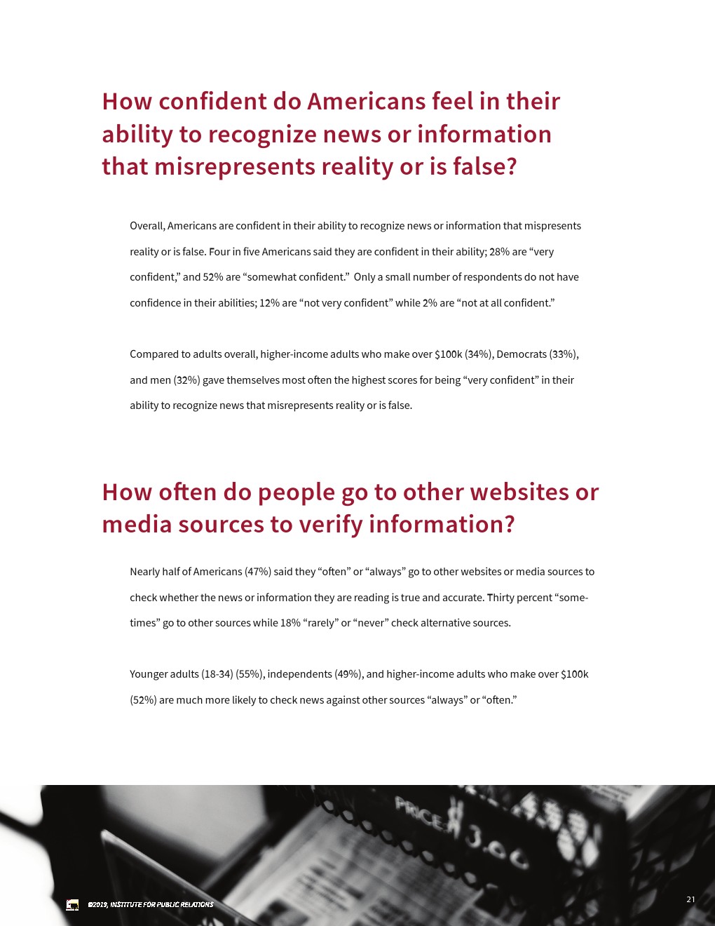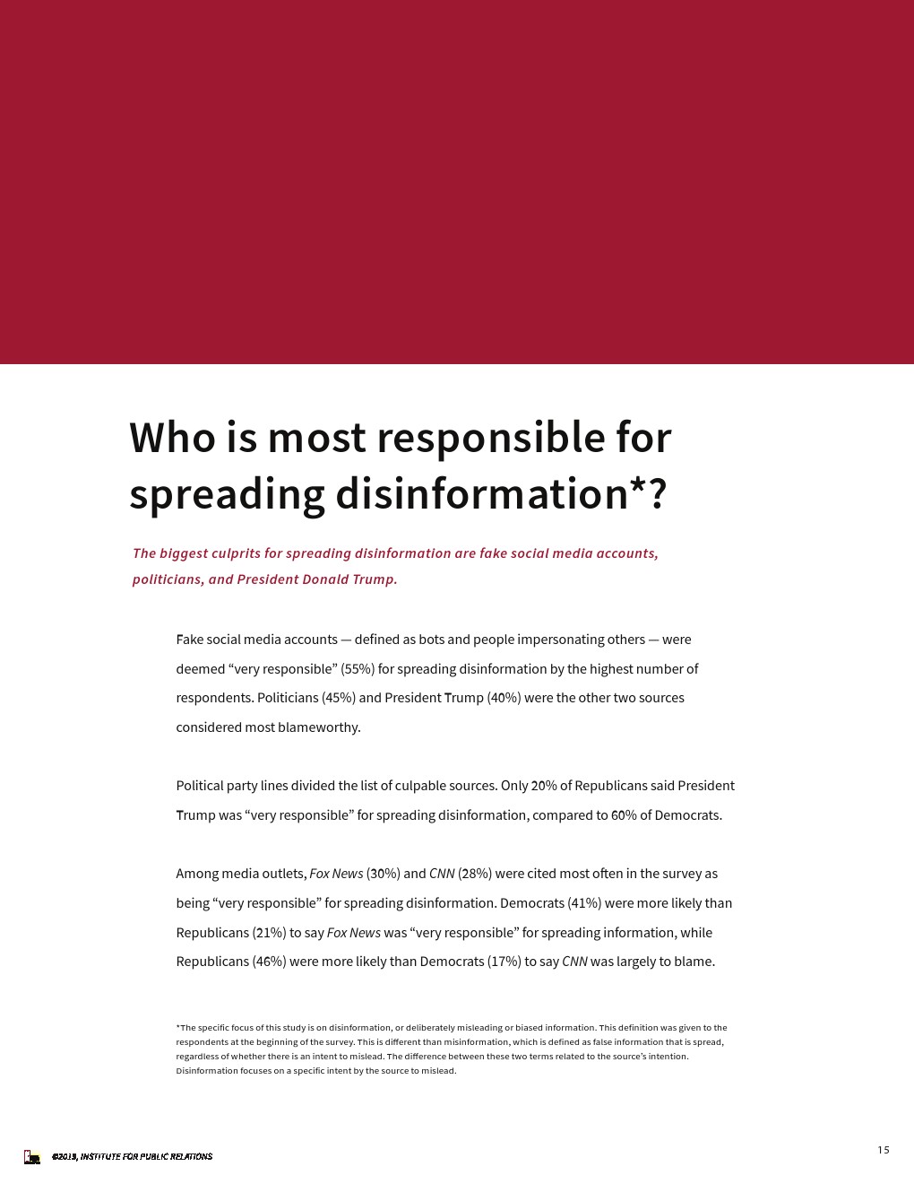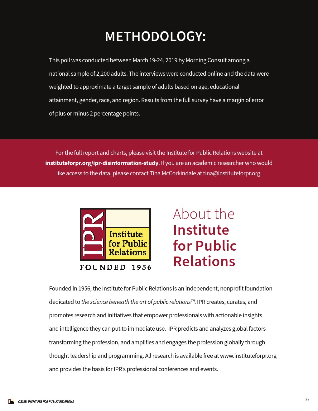 IPR发布了“2019年社会虚假信息报告”。63%的美国人认为虚假信息、故意误导或有偏见的信息是社会中的一个“重大”问题,与枪支暴力(63%)和恐怖主义(66%)不相上下。