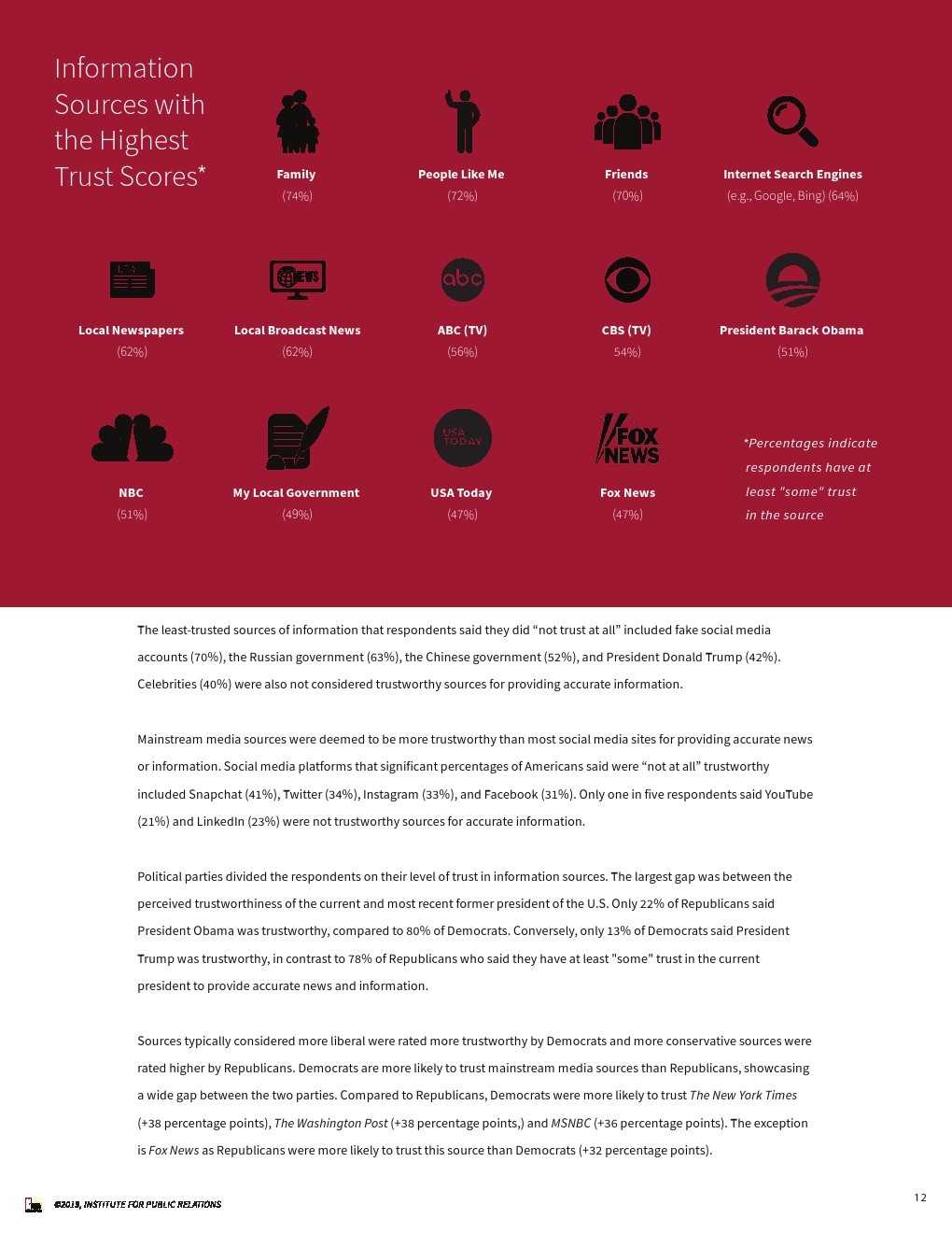 最值得信赖的信息来源包括:家人(74%)、像我这样的人(72%)和朋友(70%)。