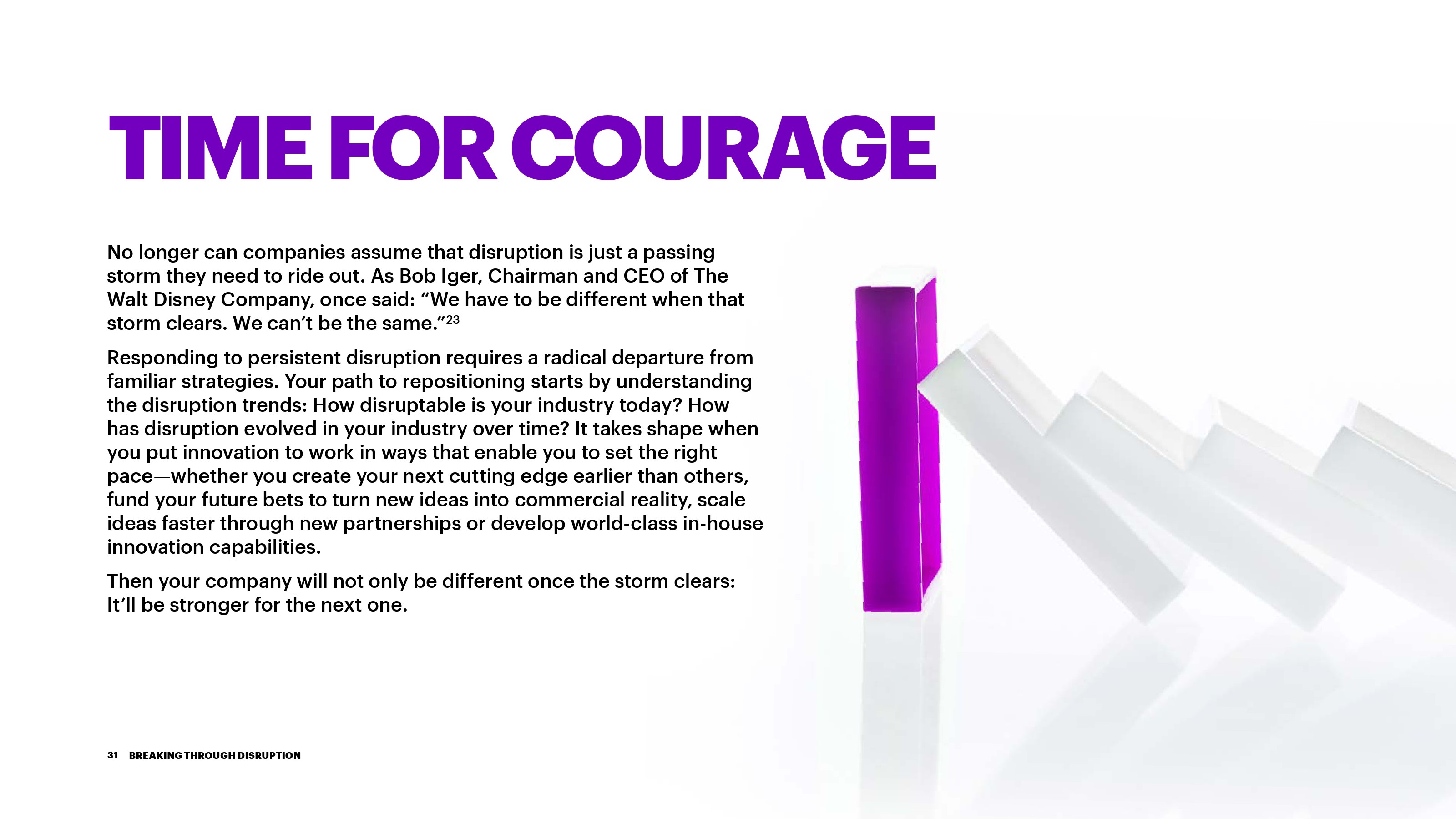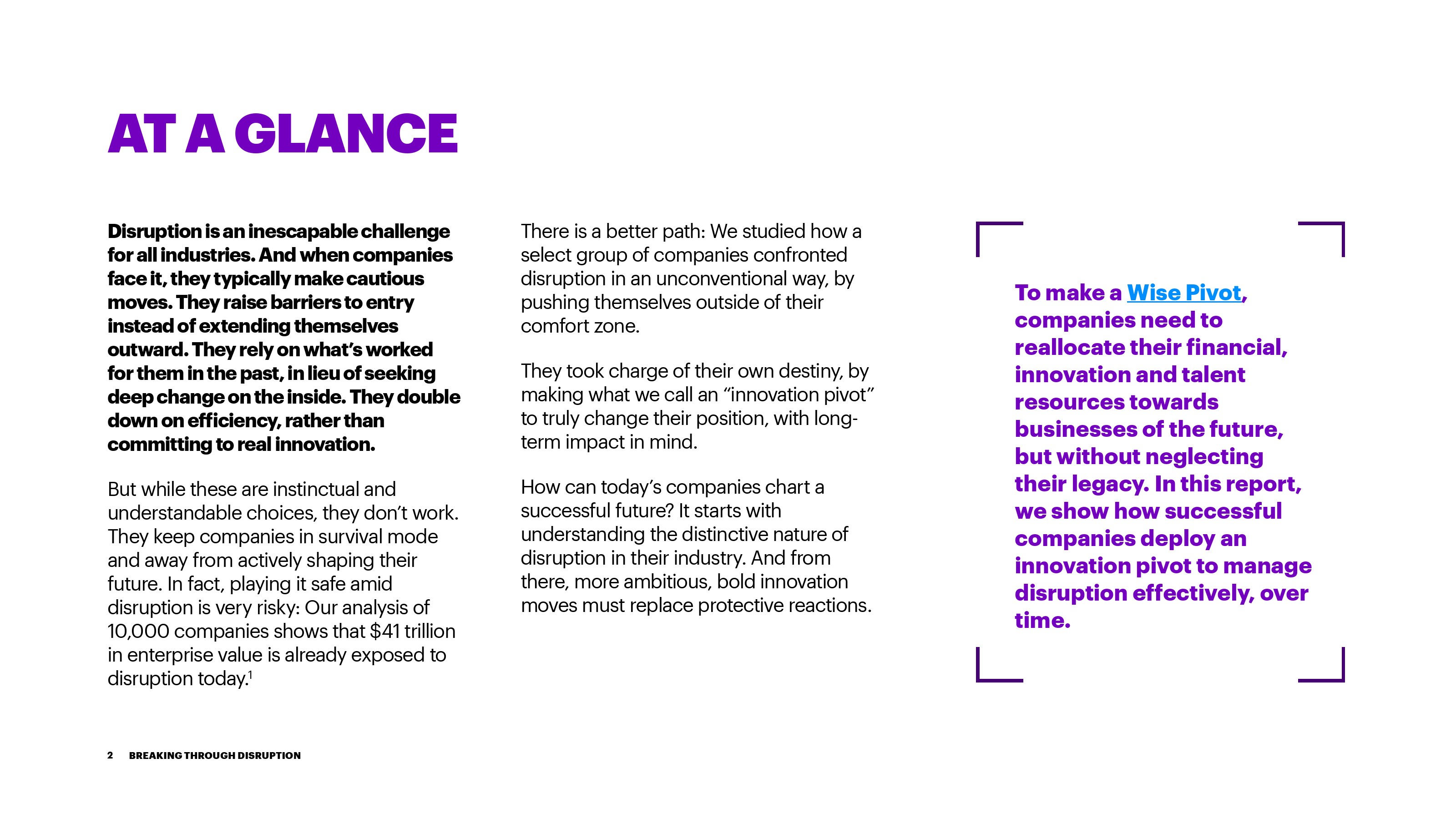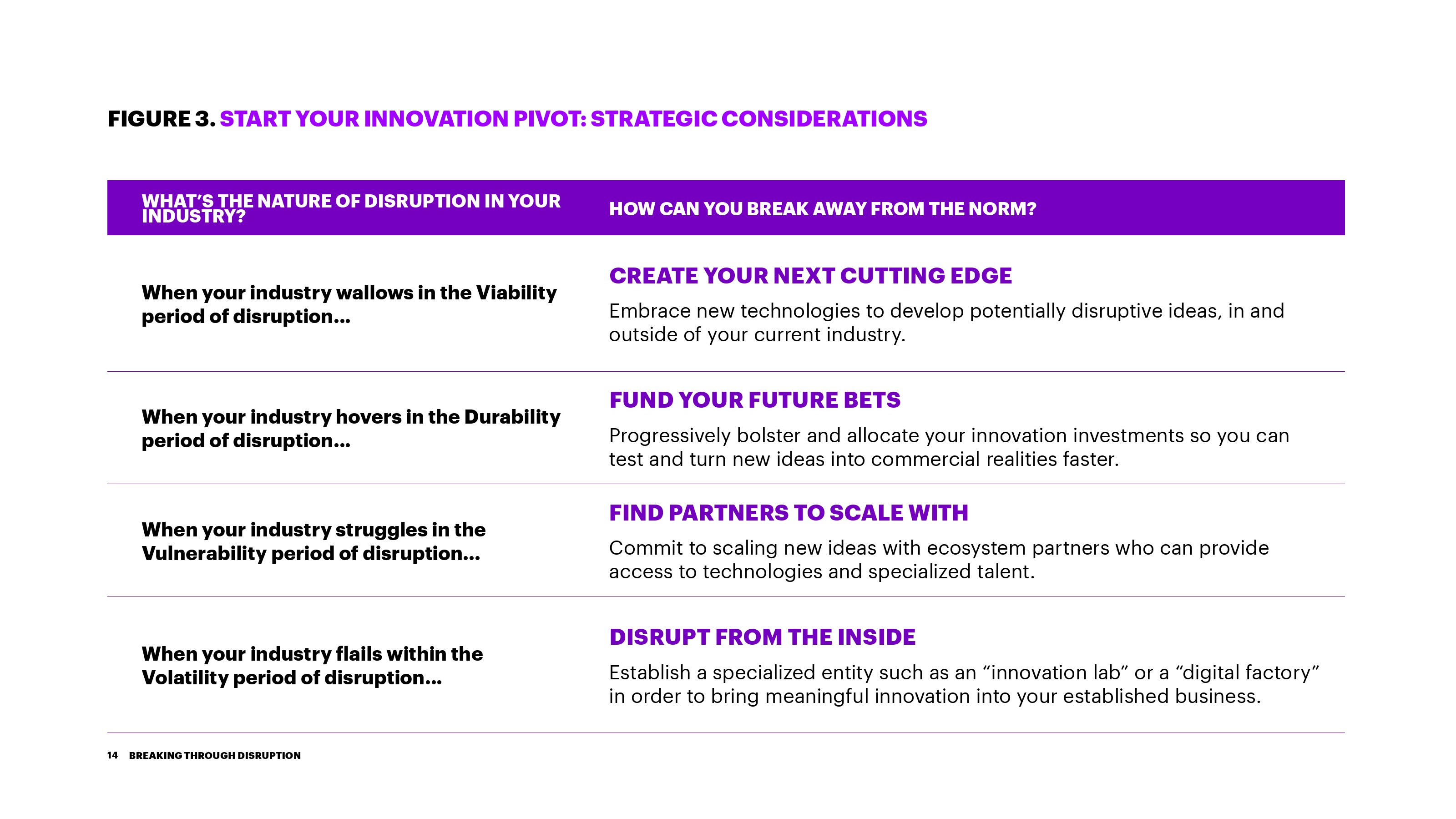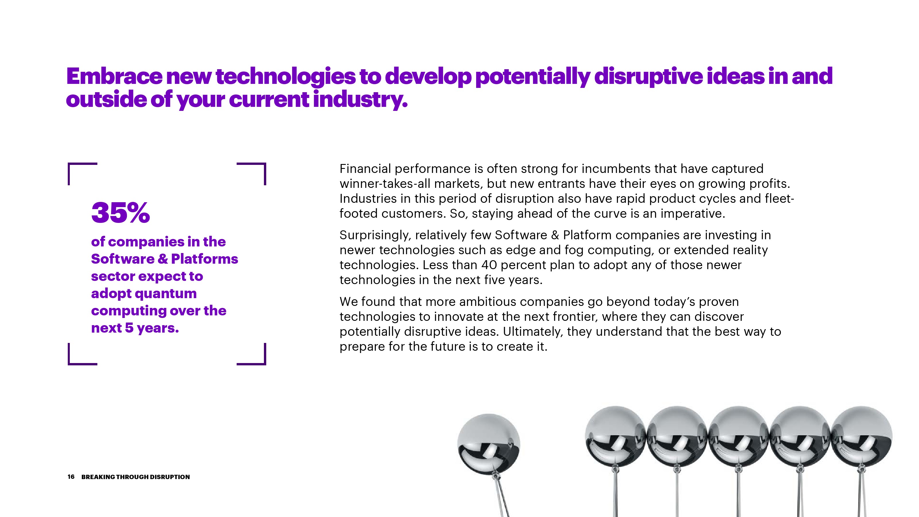 - 创建下一个前沿。拥抱新技术,开发潜在的颠覆性想法,无论是在当前的行业内还是在当前的行业之外。
