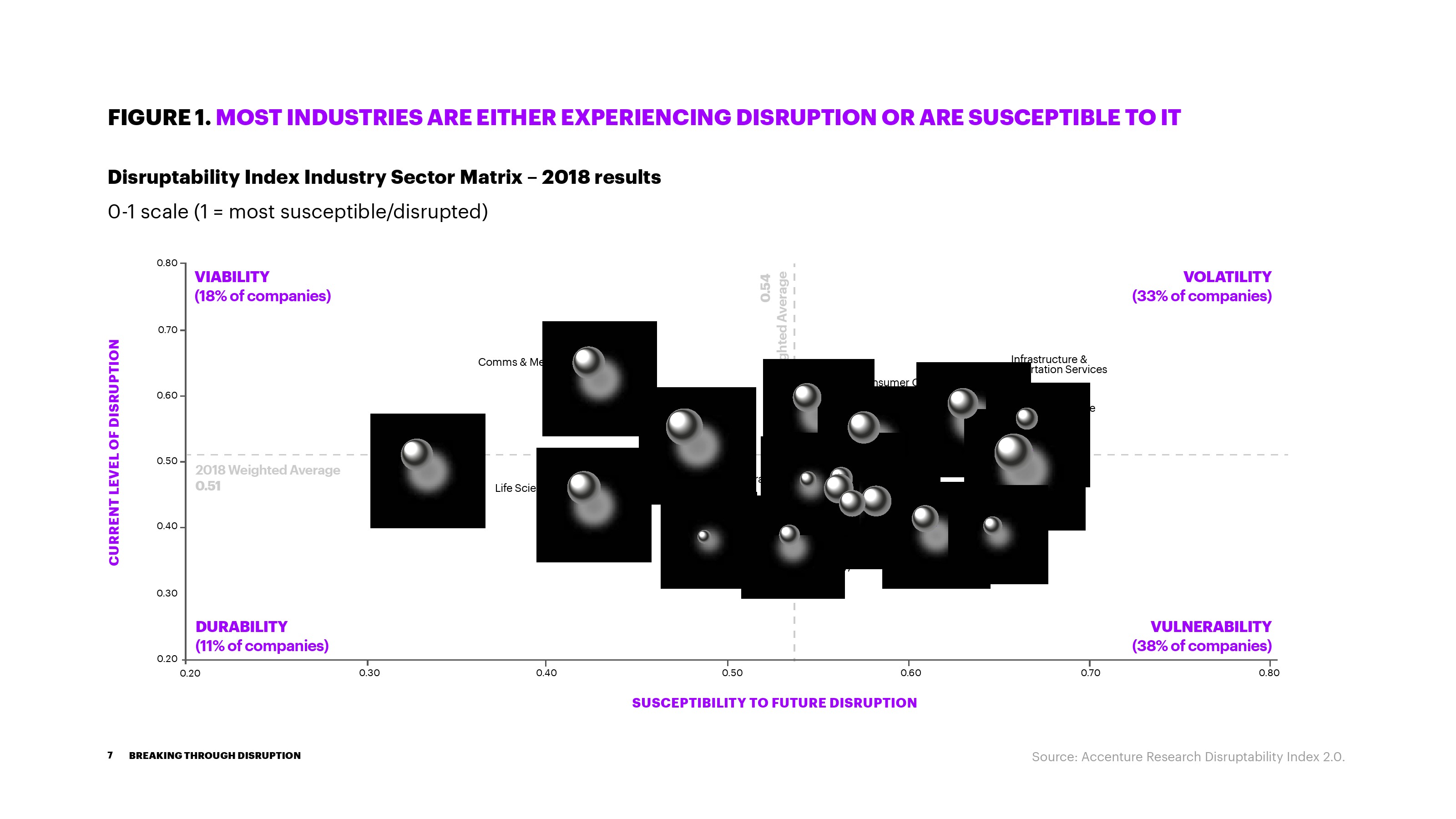 埃森哲发布了新报告“突破颠覆”。近3/4的行业(72%)在过去八年里经历了更多的混乱,使41万亿美元的价值面临颠覆的风险。