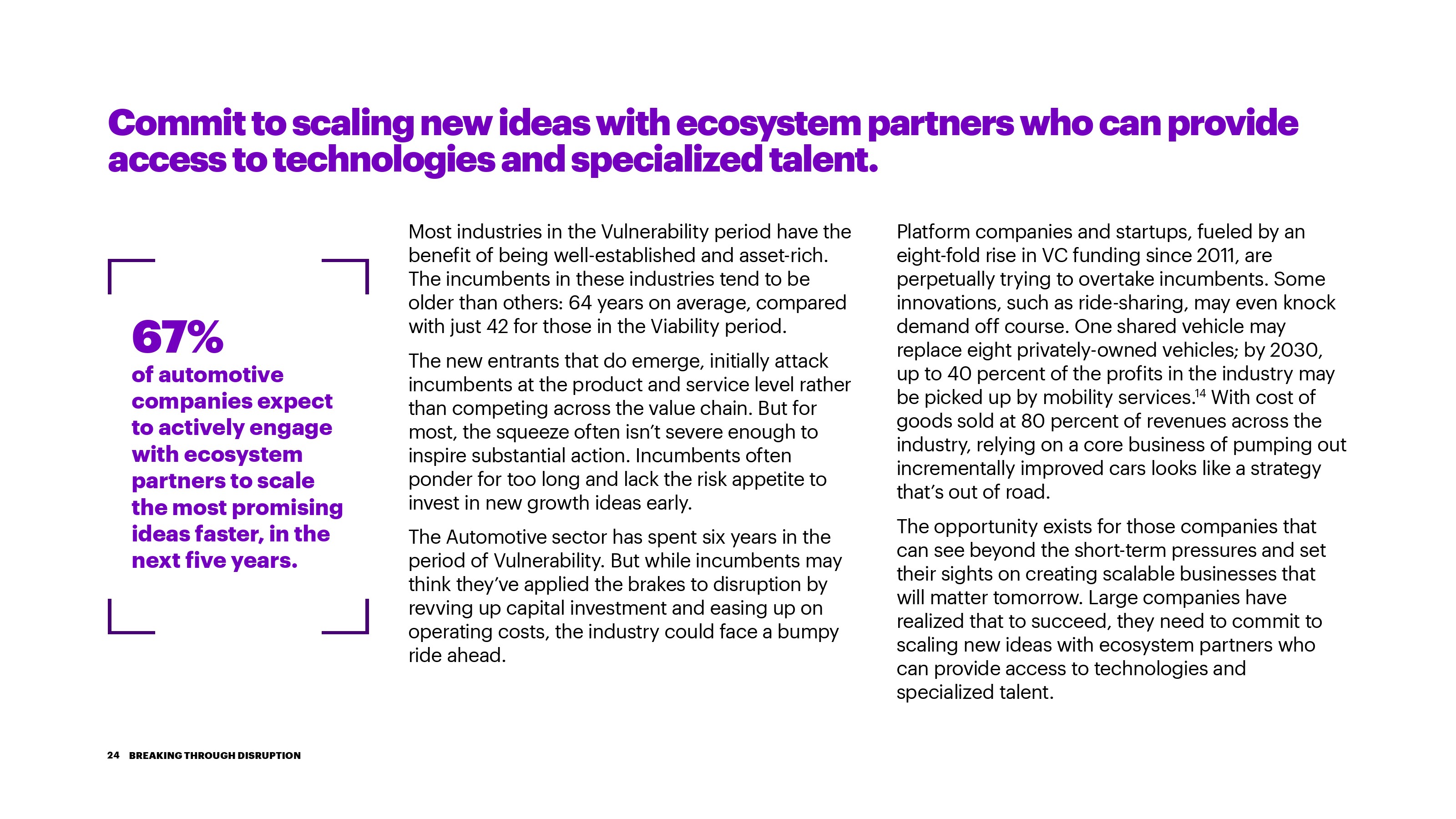 - 寻找可扩展的合作伙伴。致力于与生态系统合作伙伴一起扩展新的想法,通过这些合作伙伴可以获得技术和专业人才。