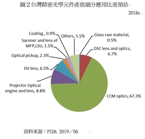 PIDA预测,2019年台湾精密光学元件产业未来发展仍能稳健成长。更进一步解释,全球智能手机出货量虽处于微幅衰退,但手机相机采用多镜头、高 画质、大光圈、光学防手震、多倍变焦等功能性需求仍持续提升,整体手机镜头产值仍有机会成长。随着汽车科技走向智能化、安全性、高效率、舒适度的需求提升,搭载先进驾驶辅助系统比重持续提升,车用光学镜头的数量也会同步攀升。目前台湾主要光学厂商在手机相机、车用镜头产能仍稳健扩充,预估2019年产值将有个位数成长空间。