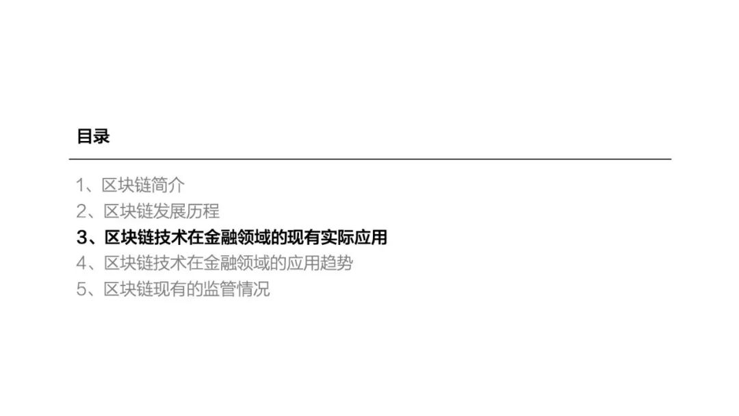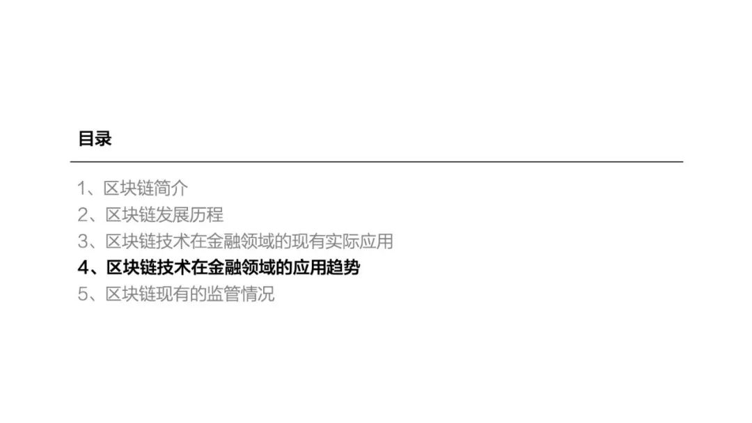 区块链技术可以低成本的解决金融活动的信任难题;同时由于区块链技术加密算法的特性,将加快推动金融业进入算法金融时代。比特币是区块链技术在金融领域的一个典型应用,虽然它不能当作法定货币,但却为区块链技术的推广以及数字货币时代的到来创造了必要的条件。目前,区块链技术在我国金融领域的应用场景主要为:跨境支付、供应链金融、票据、资产证券化和公益捐款。