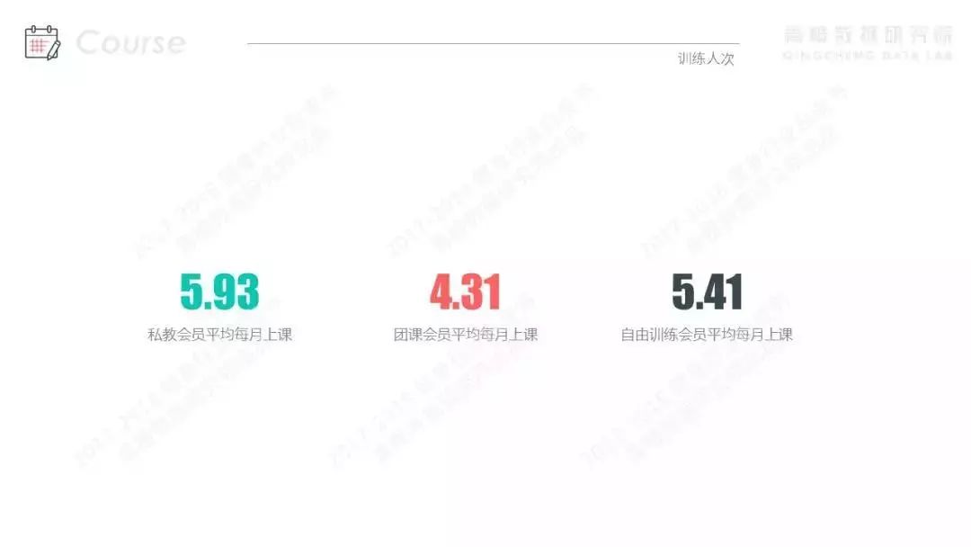 我们从《白皮书》公布的数据可以看到,在2018年-2019年,私教会员平均每月上课4.48节,通过对比2017年-2018年的数据发现,上一年度的数据为5.93节,同比下降了24.45%,但团课会员平均每月上课时长由上一年度的4.31节增长至5.64节,同比上涨30.86%。越来越多的健身爱好者会选择到健身房或工作室上团课。