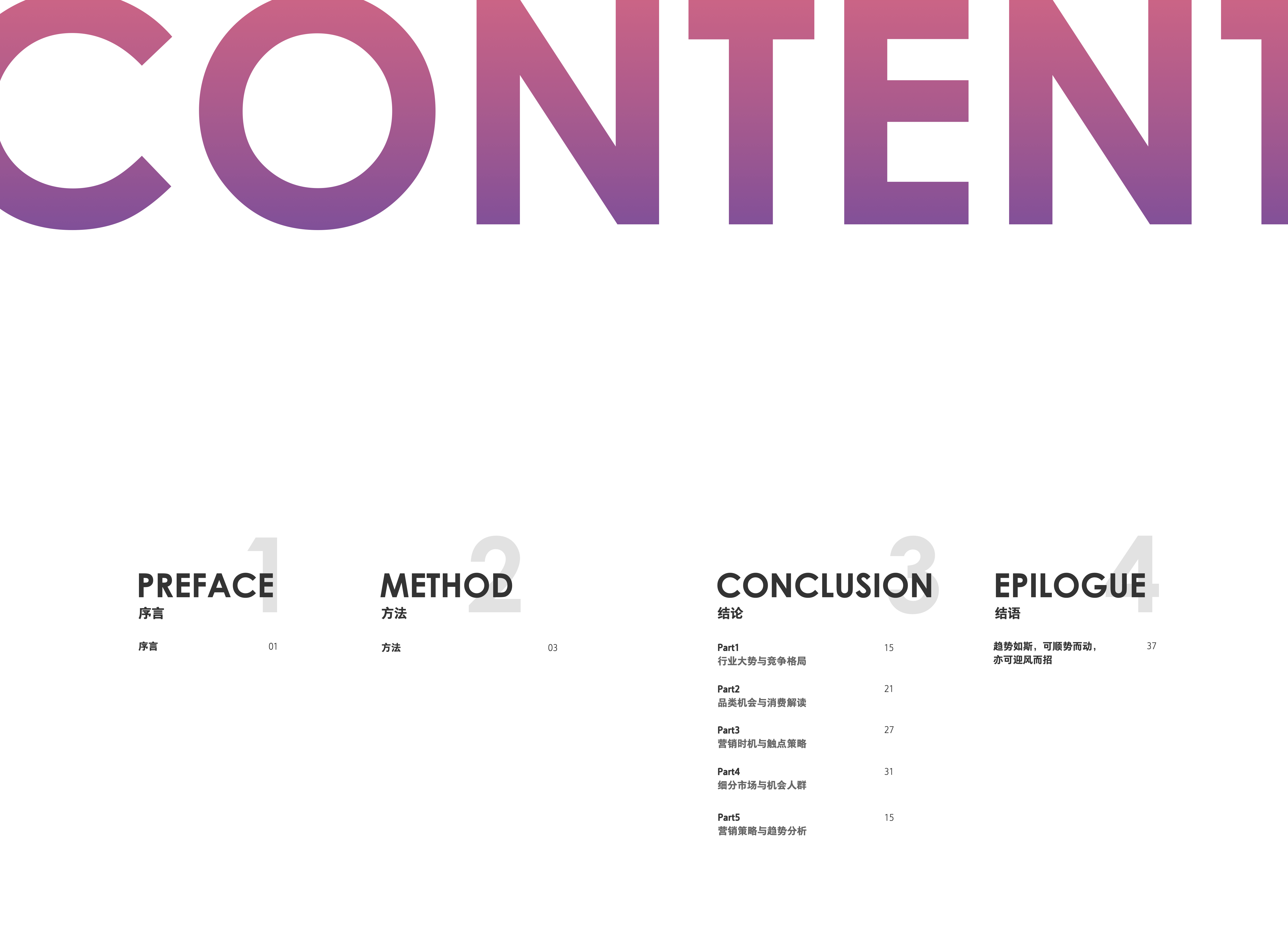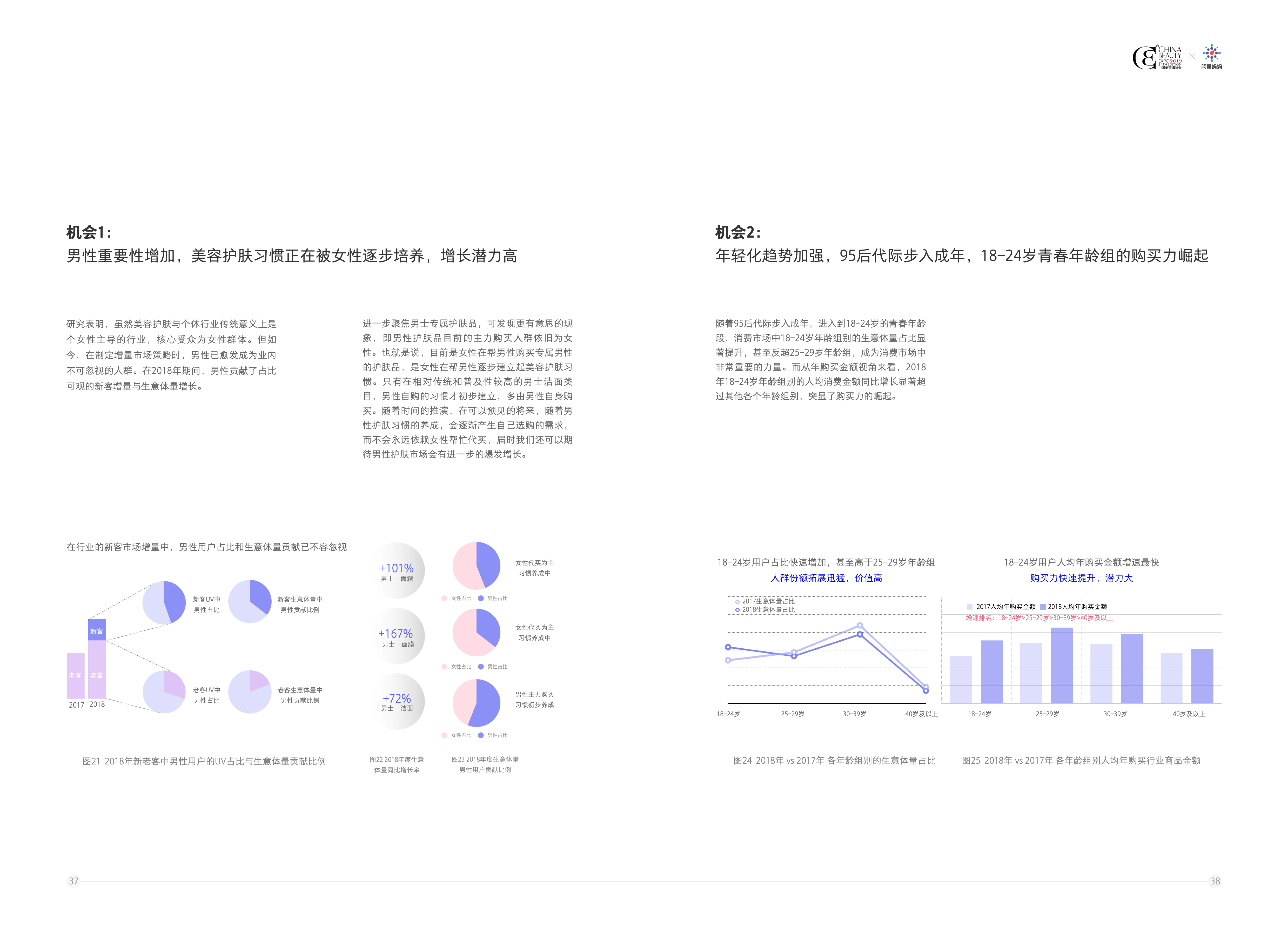 阿里妈妈:美容护肤及个体护理行业消费信号与营销趋势 在机会人群及市场方面,阿里妈妈营销研究中心认为,男性、95后及低线城市人群的消费潜力已被唤醒,未来将成为生意增长、拉动行业新客增量的机会点。 报告最后给出了三大营销洞察:首先,新品与新客,仍是新年度营销的重要发力点。新品与新客是当前行业营销的重要抓手,也是生意增长的发力点所在;其次,场景与IP,内容营销依旧是爆款诞生抗把子;再次,试用与平销,数据技术赋能营销获得新效能。 PDF版本将分享到199IT交流群,支持我们发展可加入! 更多阅读:消费者品牌报告:寻找真相Nosto:美容护肤电子商务的未来德勤:2023年全球营销趋势报告DCMN:2022年营销趋势报告德勤:2020年全球营销趋势百度数据研究:2011年Q2中国化妆品牌等级用户搜索行为分析广大大&Flat Ads:《2023年全球移动应用(非游戏)营销趋势白皮书》Smartinsight:4大趋势将重塑2016年营销传播StrongView:2015年不同渠道营销趋势报告你需要了解的四大营销趋势百度数据研究:2011年Q2中国化妆品行业搜索整体概况阿里妈妈:2025快消行业营销白皮书DT研究院:2024汽车行业用户洞察与营销趋势白皮书(附下载)2025《阿里妈妈产品能力实操手册》618营销特辑来了!火热下载抢占先机!阿里妈妈向新趋势白皮书已上线