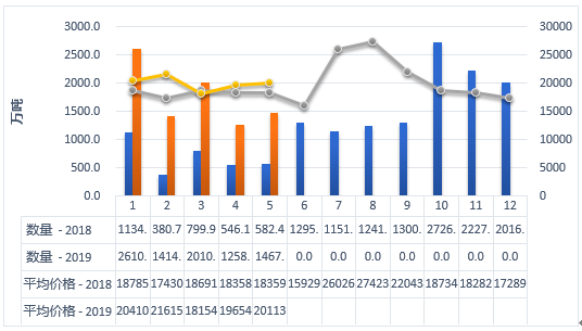 单位:万吨、亿美元、美元/吨