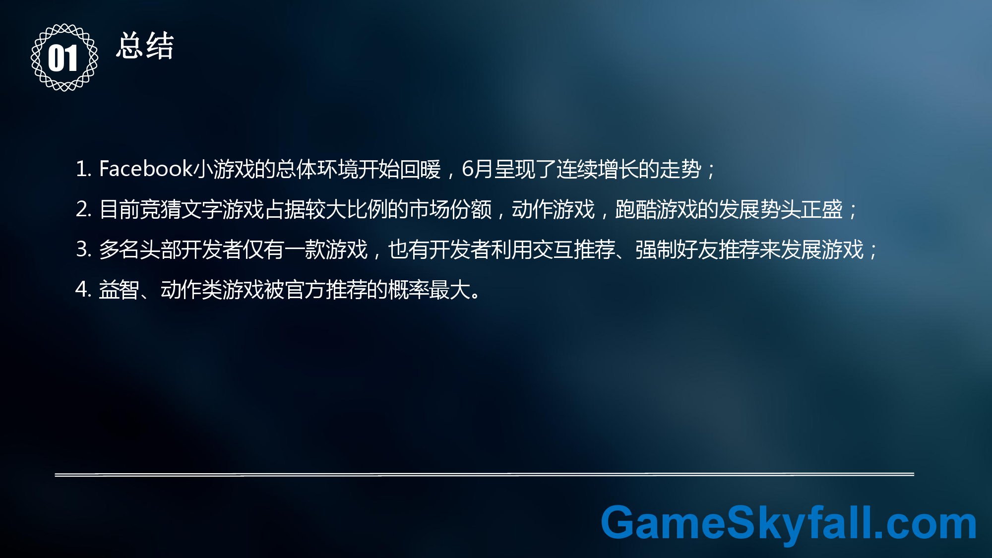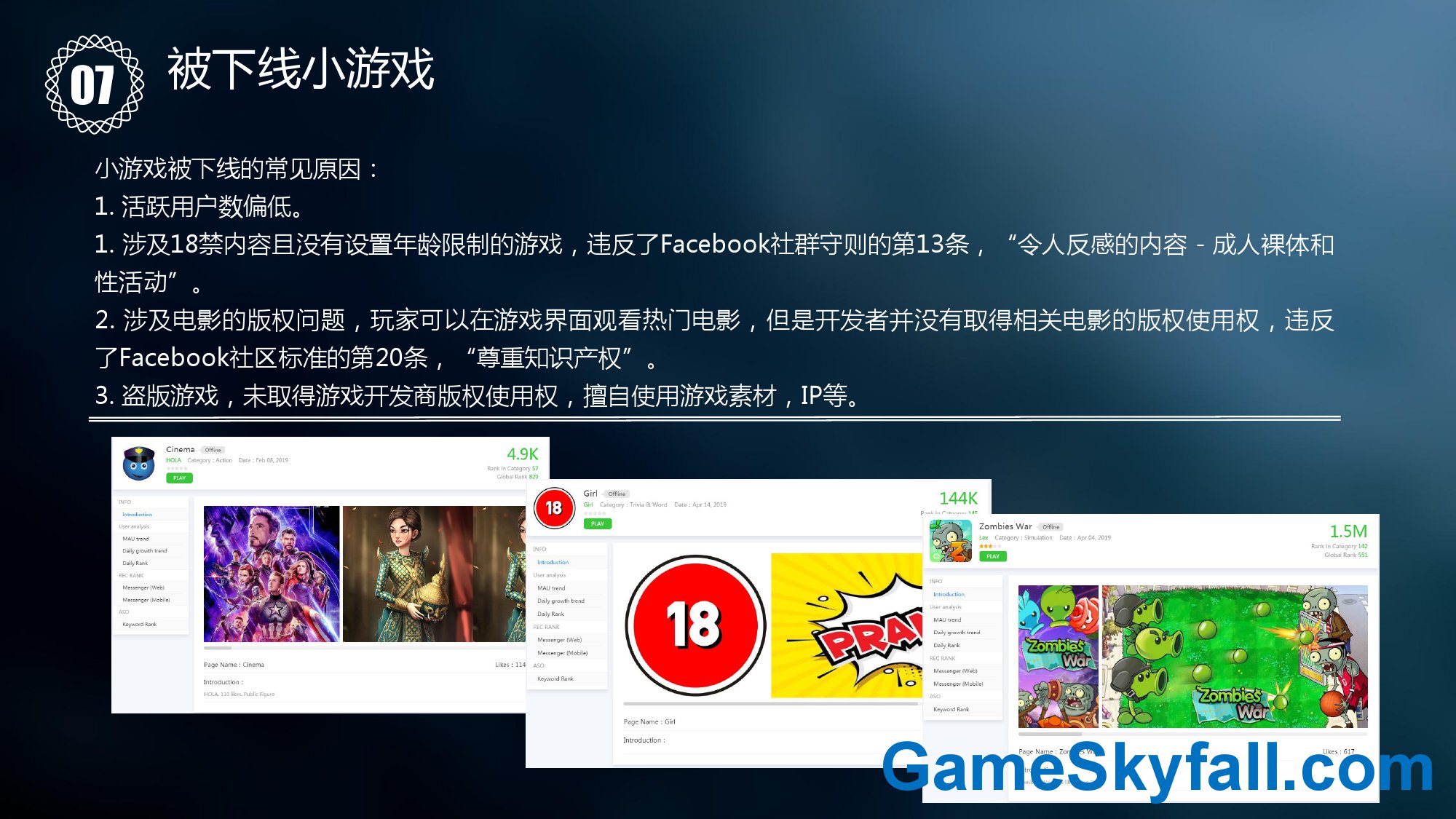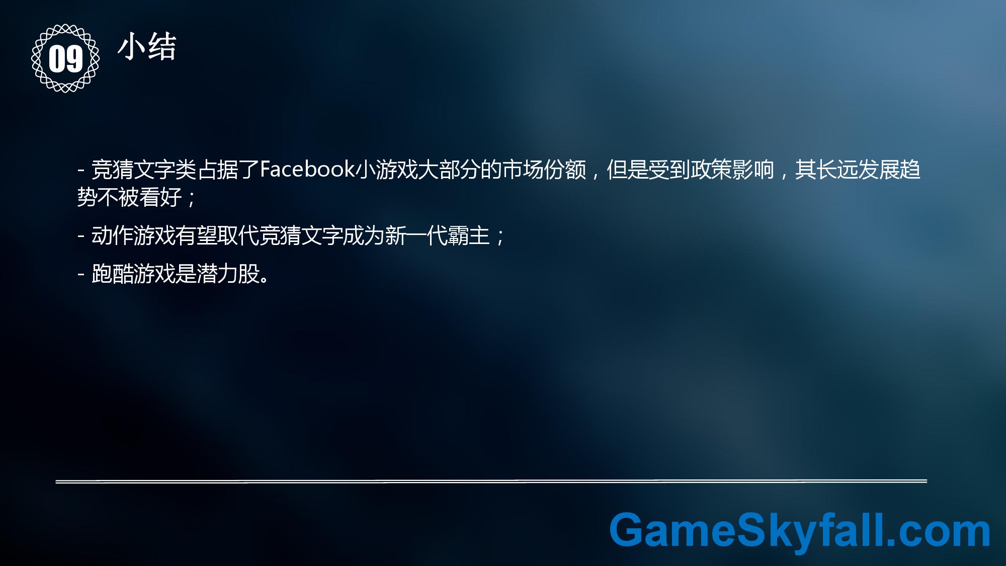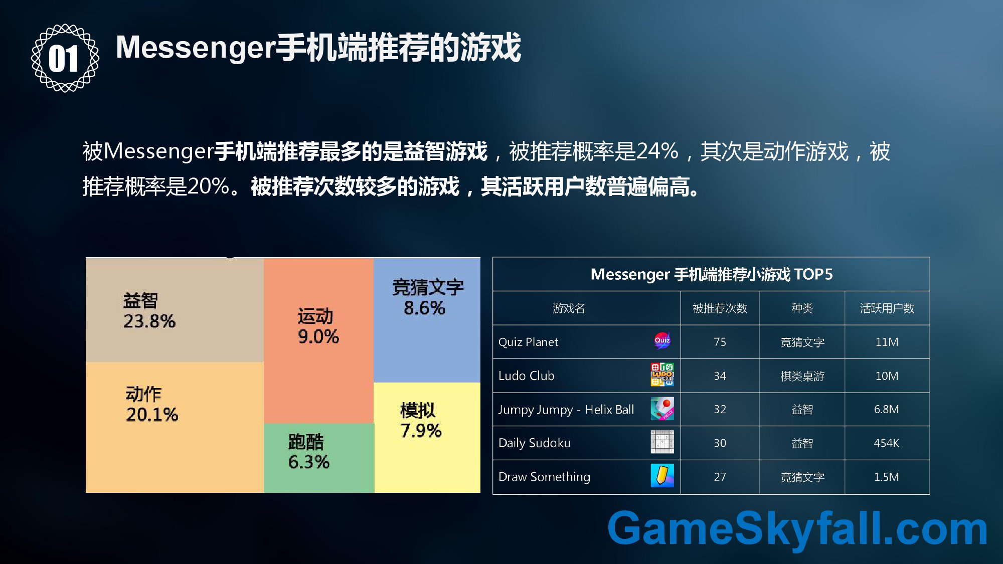 GameSkyfall:Facebook小游戏年中报告 PDF版本将分享到199IT交流群,支持我们发展可加入! 更多阅读:GameSkyfall:2019年第一季度Facebook小游戏的活跃用户超过9亿Facebook:2021年游戏营销洞察资讯Christian Fager:阐述在Facebook展开游戏广告推广的要点AppData:2012年6月前25名Facebook游戏排行榜Facebook:2011年度Facebook最受欢迎社交游戏排行榜AppData:2012年2月Facebook TOP25社交游戏排行榜田中良和谈GREE发展历程及日本手机社交游戏Appdata:2012年9月Facebook游戏榜单Mashable:【社交游戏经济】数据信息视图socialgamesobserver:调查结果显示Facebook社交游戏玩家多为女性年龄介于19-25岁Facebook游戏团队:数据显示月均3.75亿人在Faceboook上玩游戏Facebook社交游戏会就此衰亡吗?Facebook:每月有2.35亿用户在平台上玩游戏PocketGamer:社交游戏发行商在社交网络上的粉丝数据Facebook月游戏玩家达2亿3千5百万