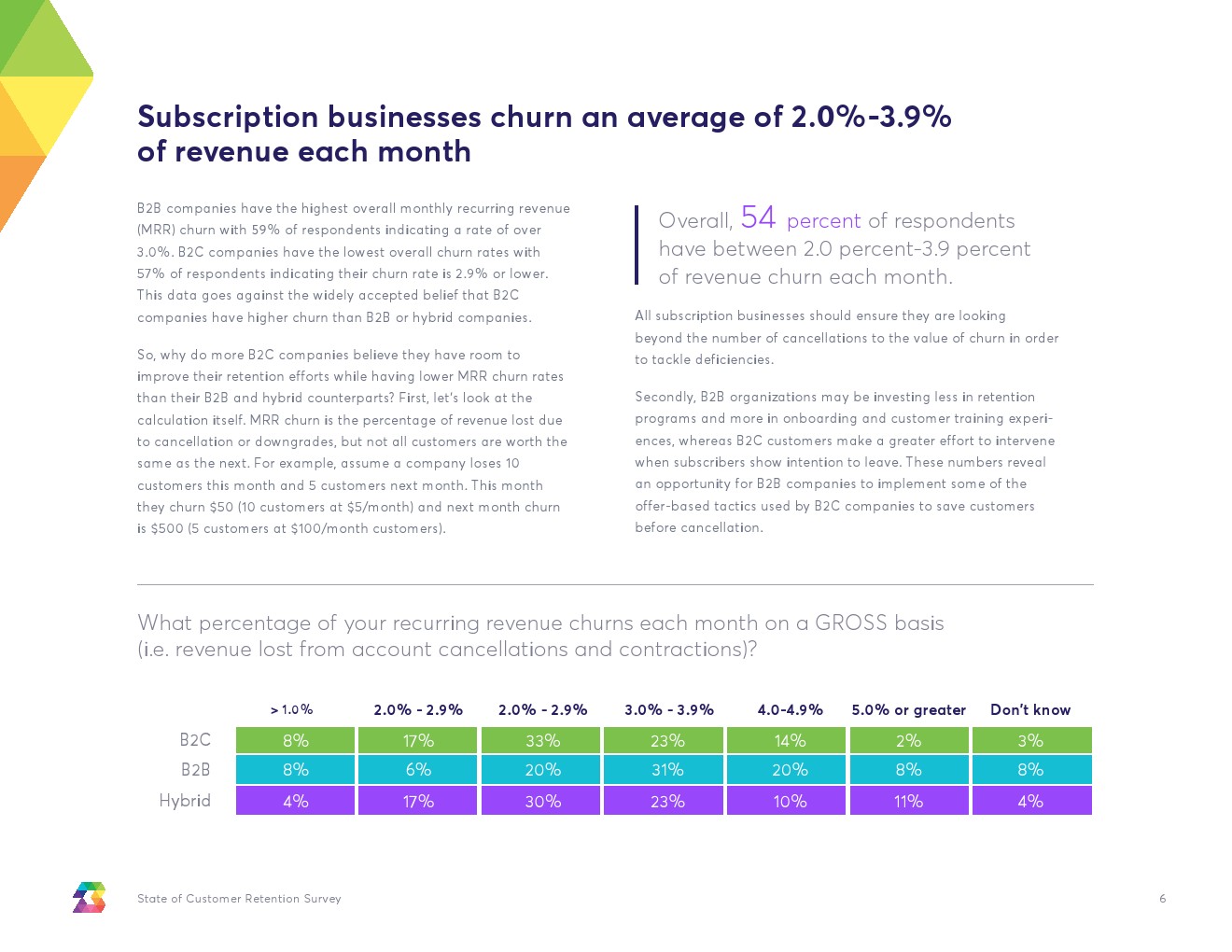 为客户提供暂停订阅的能力对B2B(39%)和混合公司(38%)最有效地减少客户流失的策略之一。此外,所有部门(41%的B2C,35%的B2B,44%的混合)都发现,在高风险客户流失并提供激励之前先发制人的策略也是有效的努力之一。