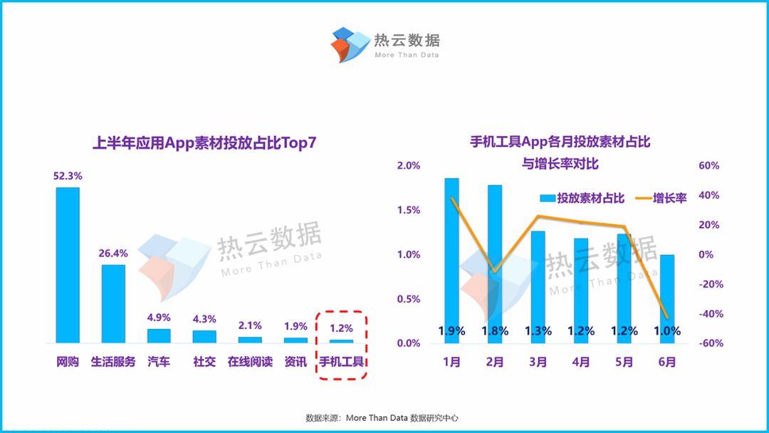(扫描报告结尾热云小助手二维码并添加好友,获取完整版报告,即可了解“上半年手机工具App投放素材Top50”)