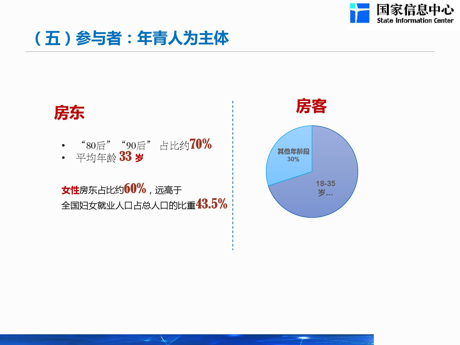共享住宿成为年轻人创业的重要选择,主要平台上“80后”和“90后”房东数占比约70%。女性房东数量逐年升高,占比接近60%,女性房东收入也在不断提高。